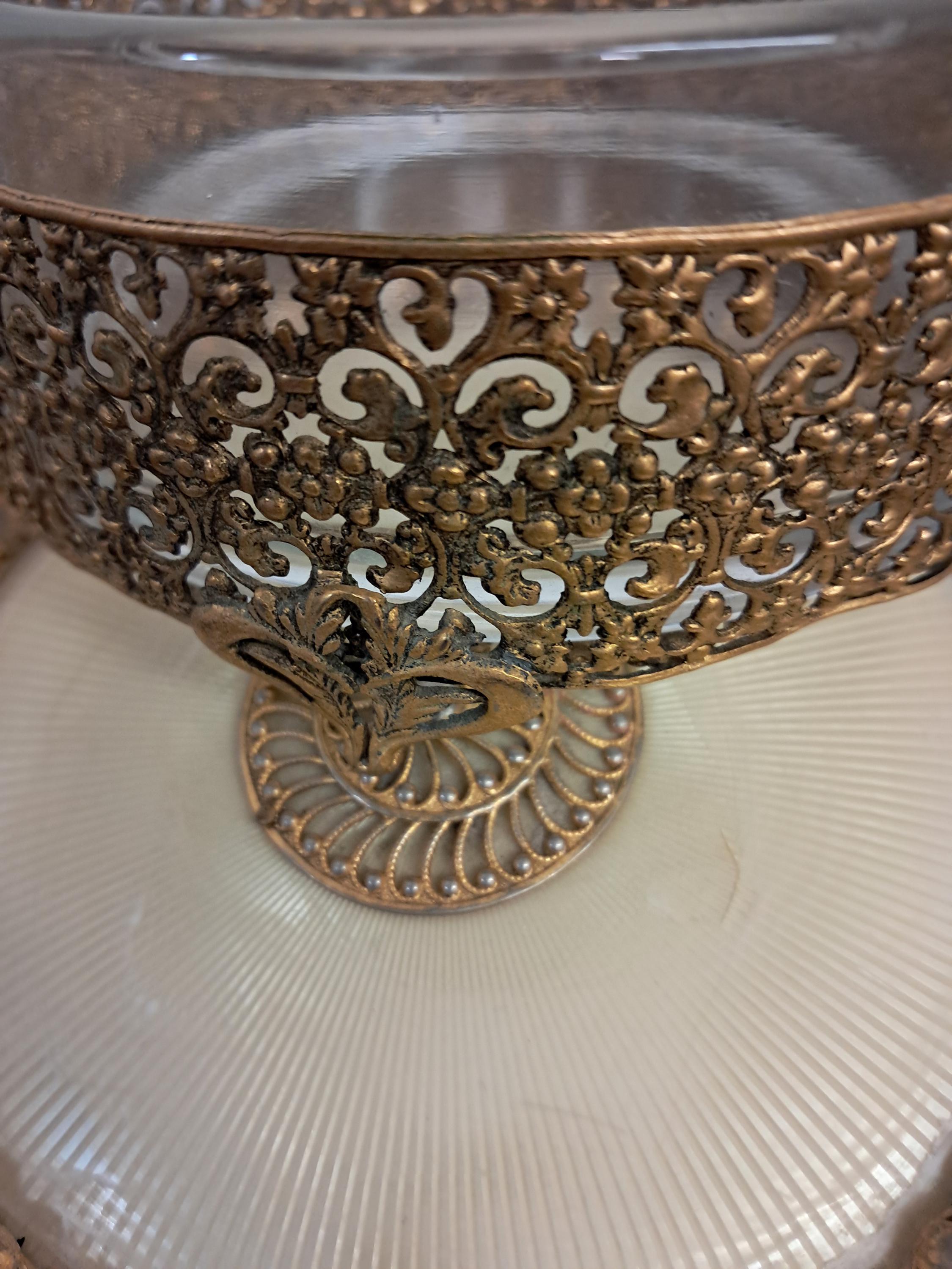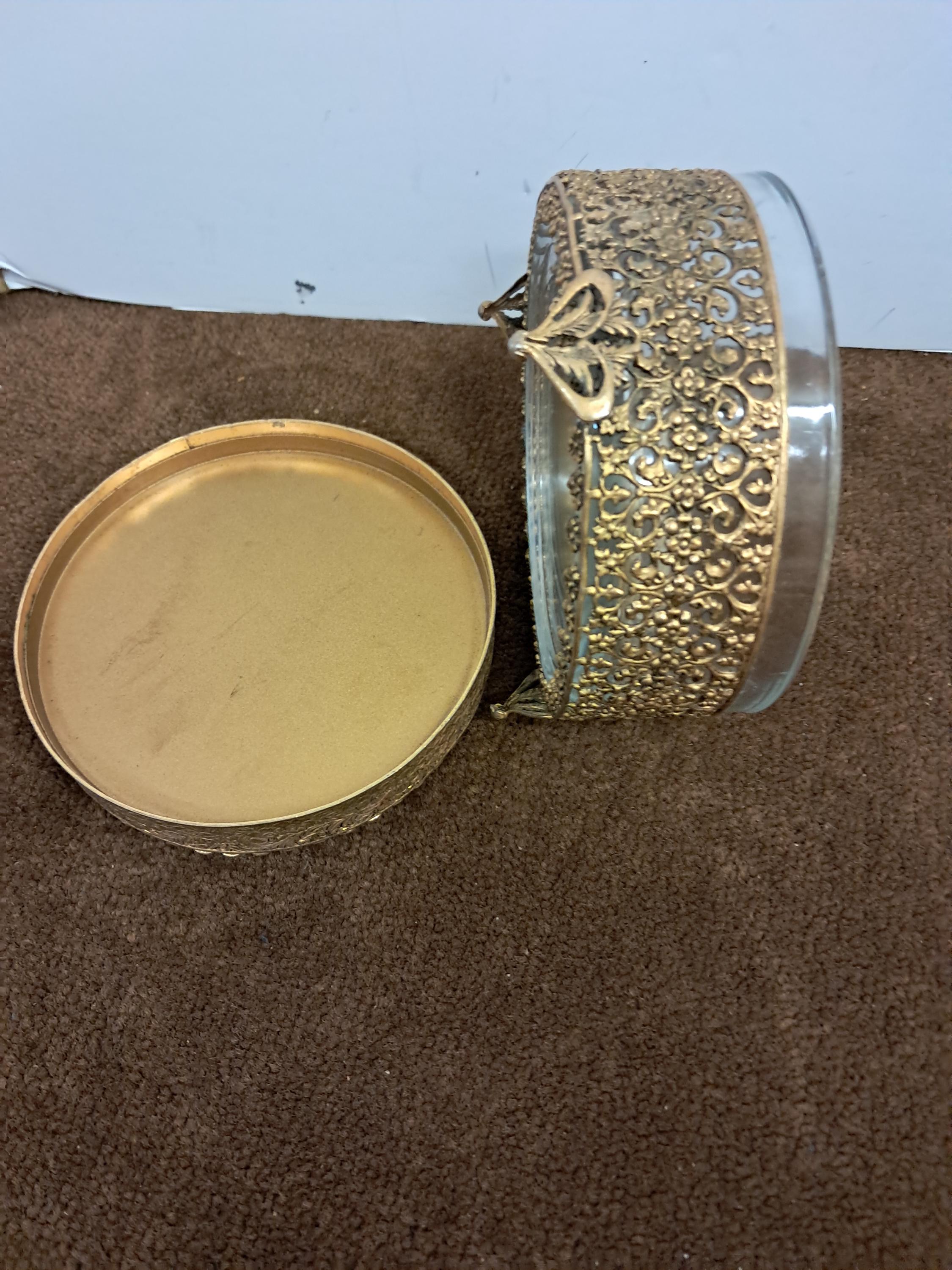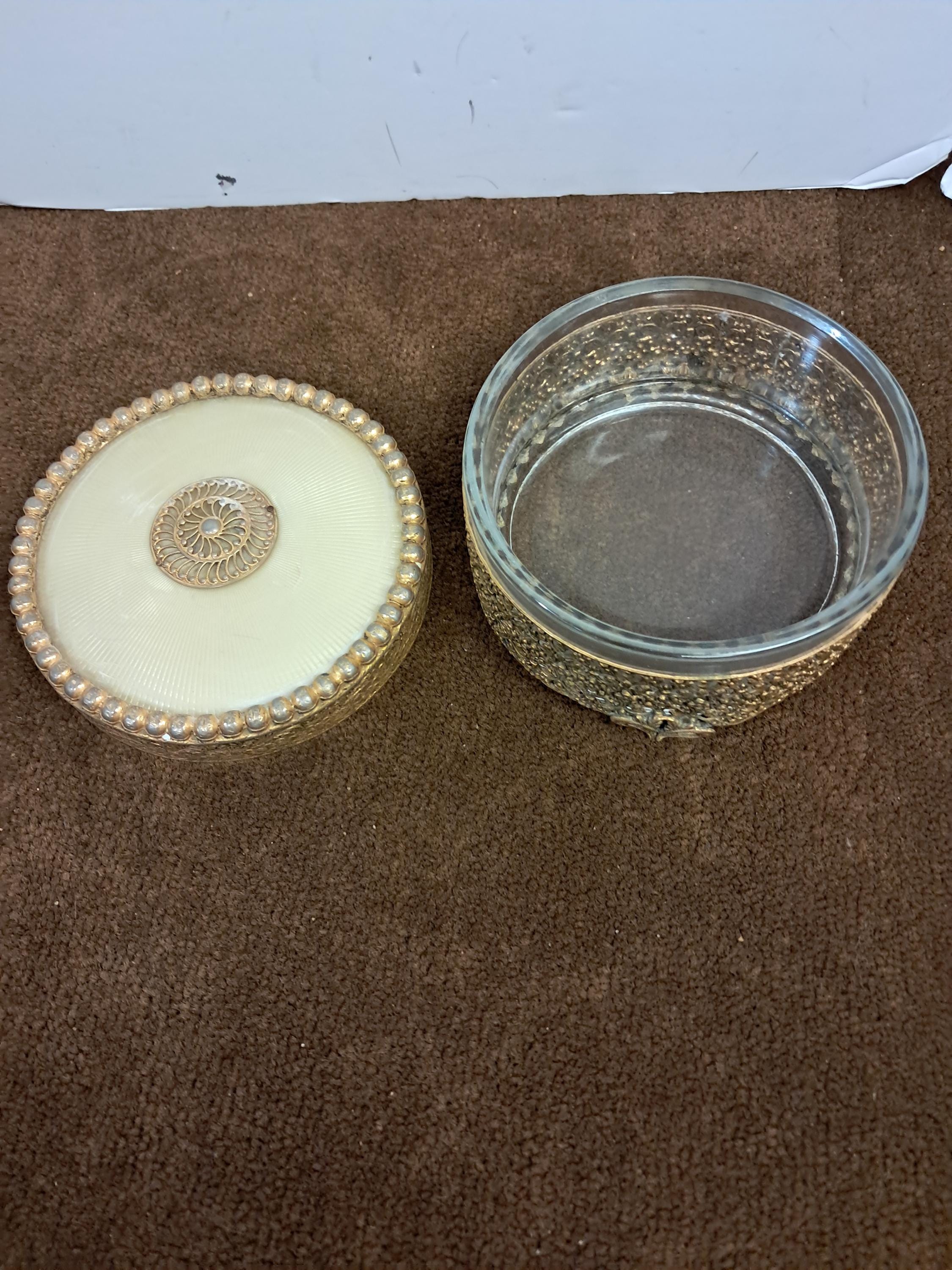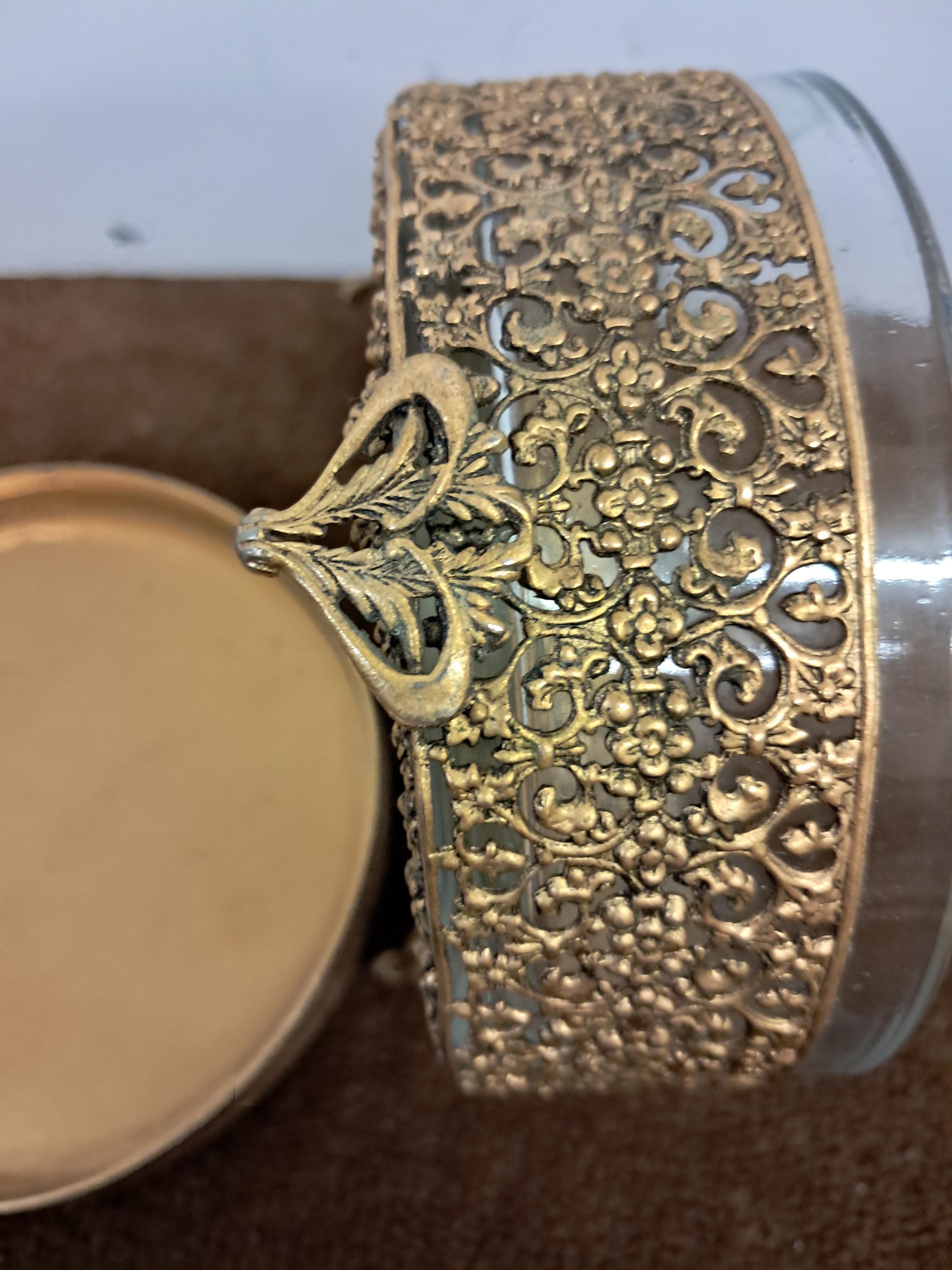 Added with Matching 3 footed Powder Glass case . Very beautiful grooming accessory, to keep as a collectible or to use as part of a display on a wall. Would make a fantastic gift for someone who loves the Art Deco early century time.