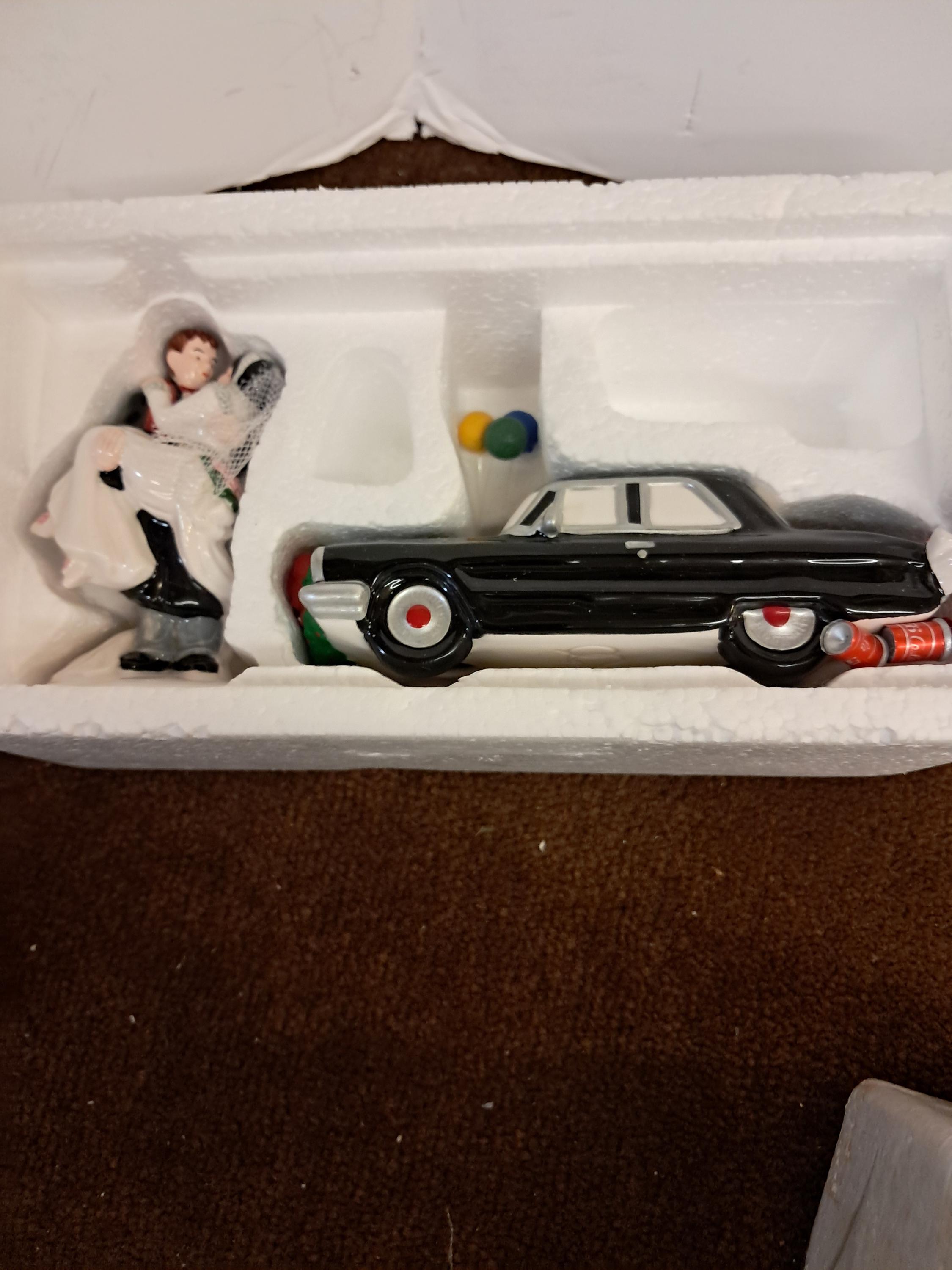 Hand painted with a multicolor finish, this American-themed set captures the essence of a the occasions. Manufactured in 1995, this original and retired piece comes boxed and ready to add a touch of seasonal warmth to any room in your home. Celebrate the joy of newlyweds with this nostalgic and beautifully crafted addition to your holiday decor.