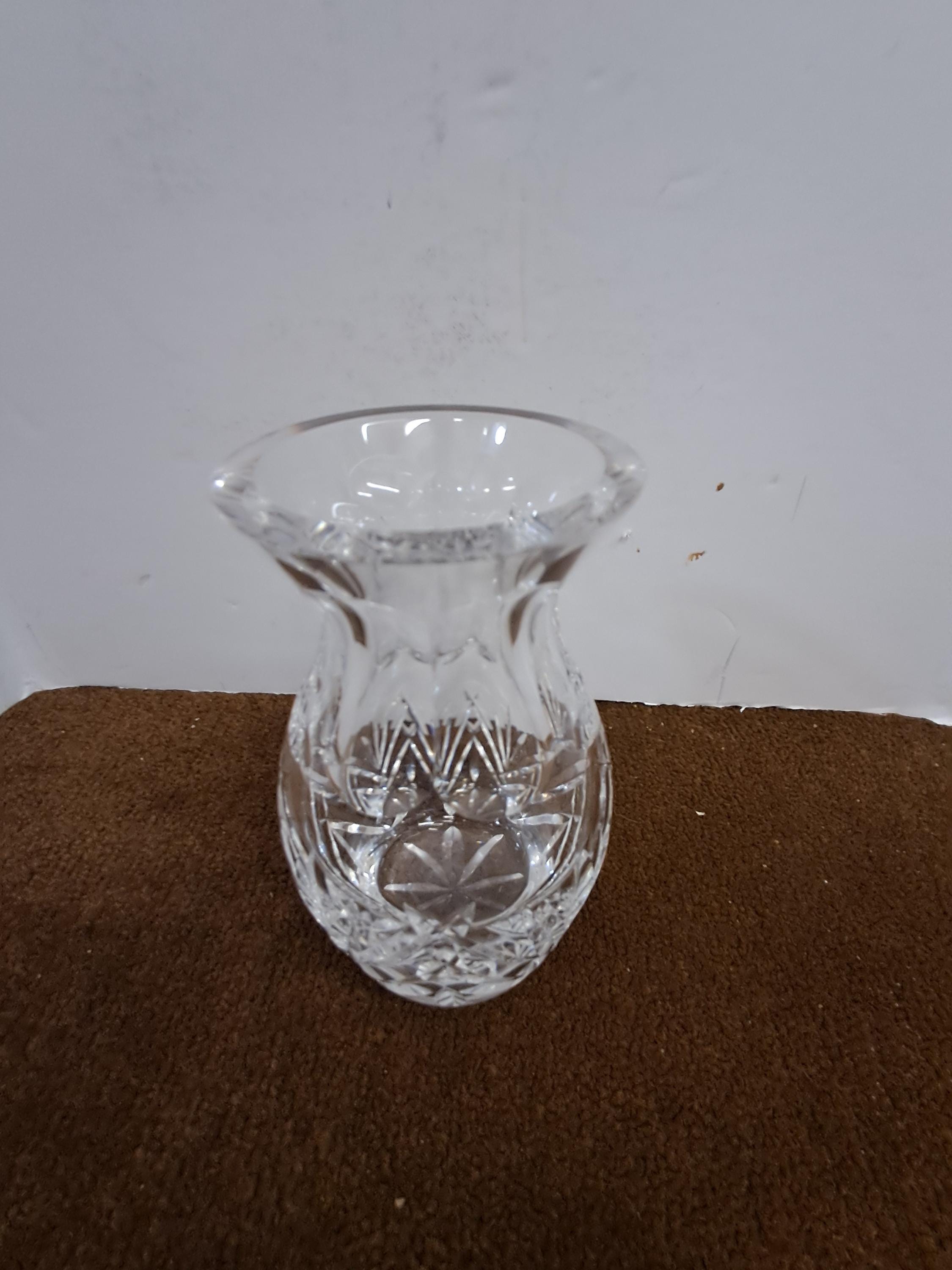 Vase : 5" tall x 2.75" in diameter. Waterford Irish cut Glass Posy Vase