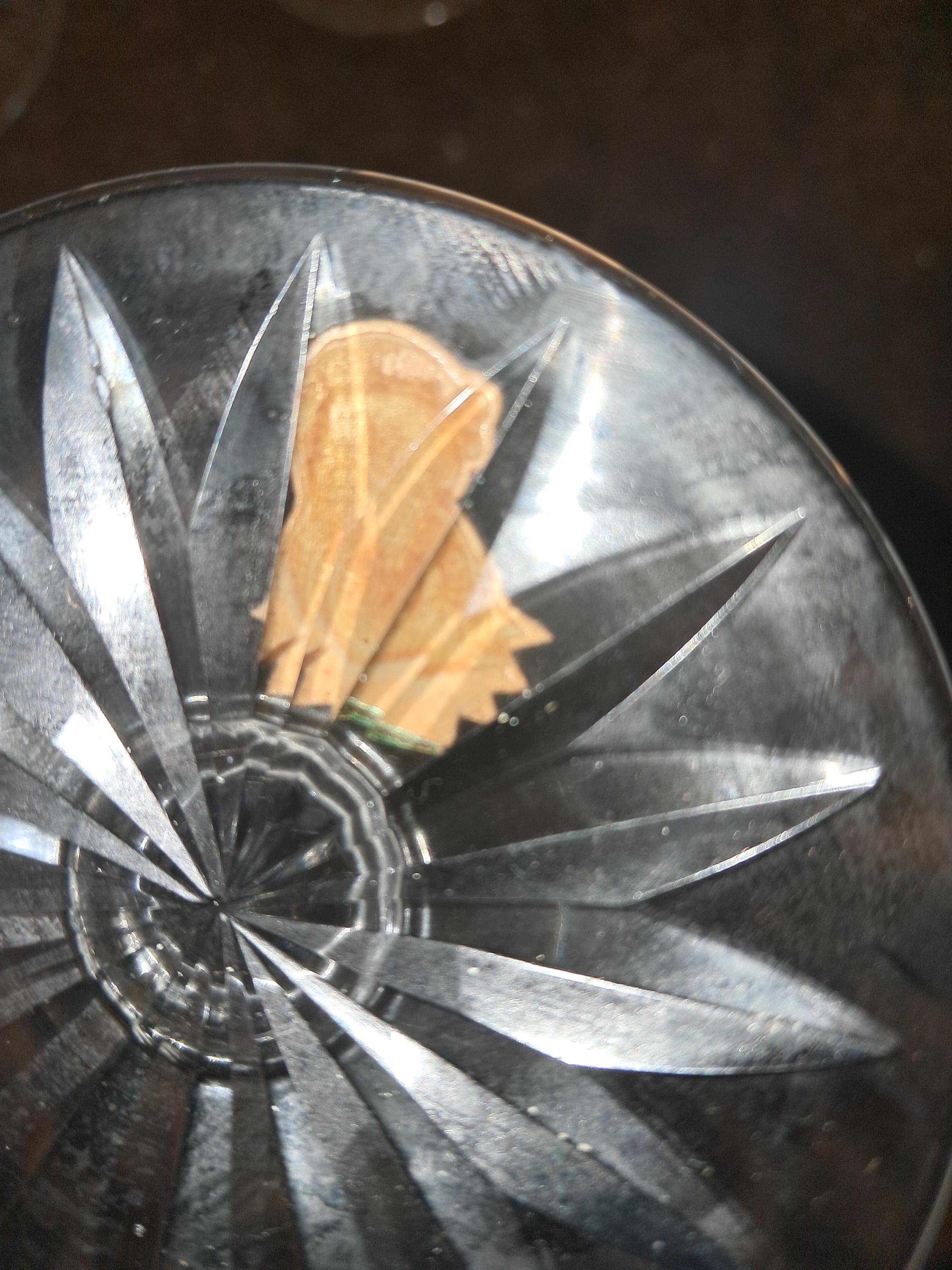 Cut Crystal band with diamond pattern an fanning floral pattern at the base