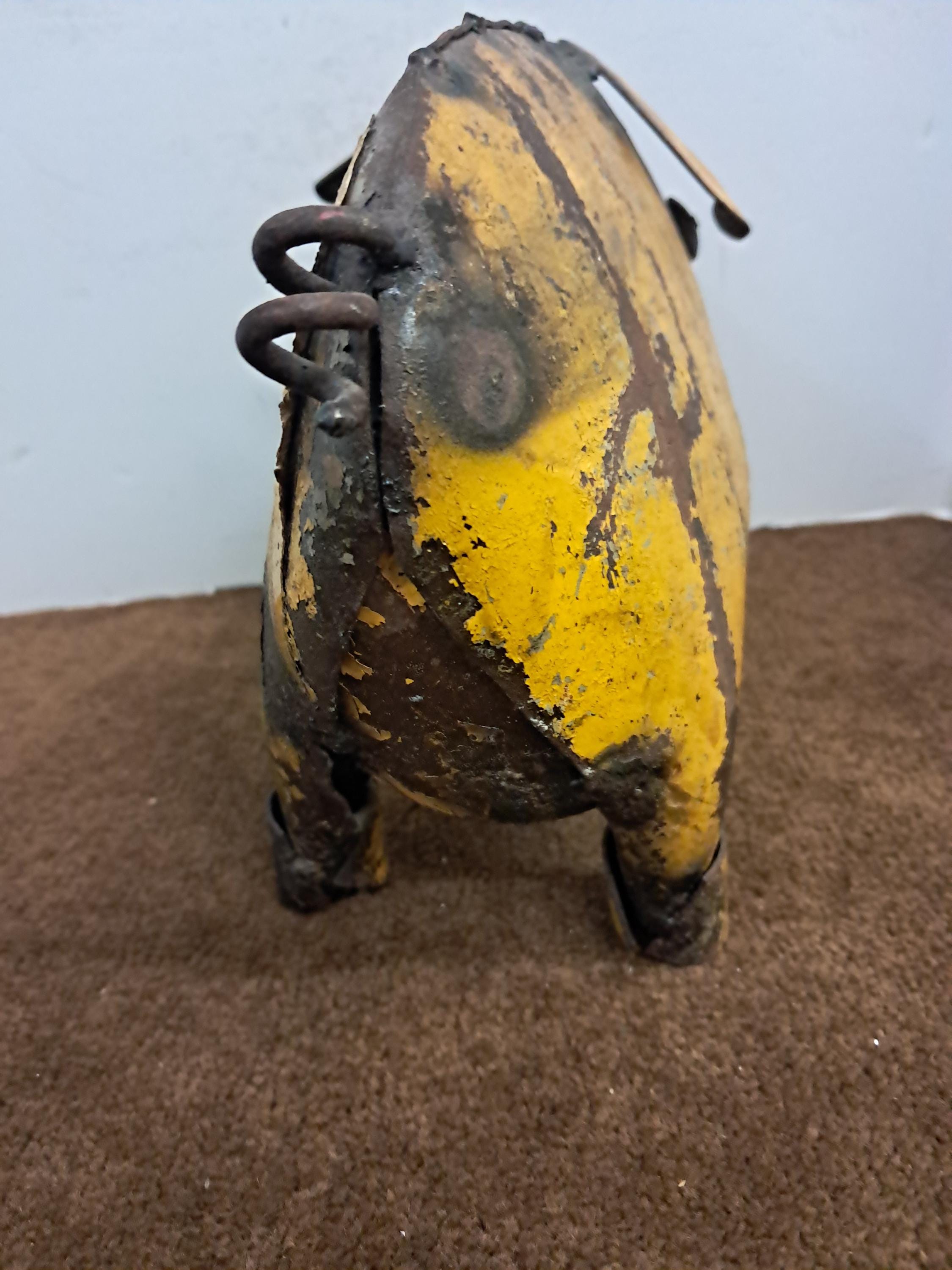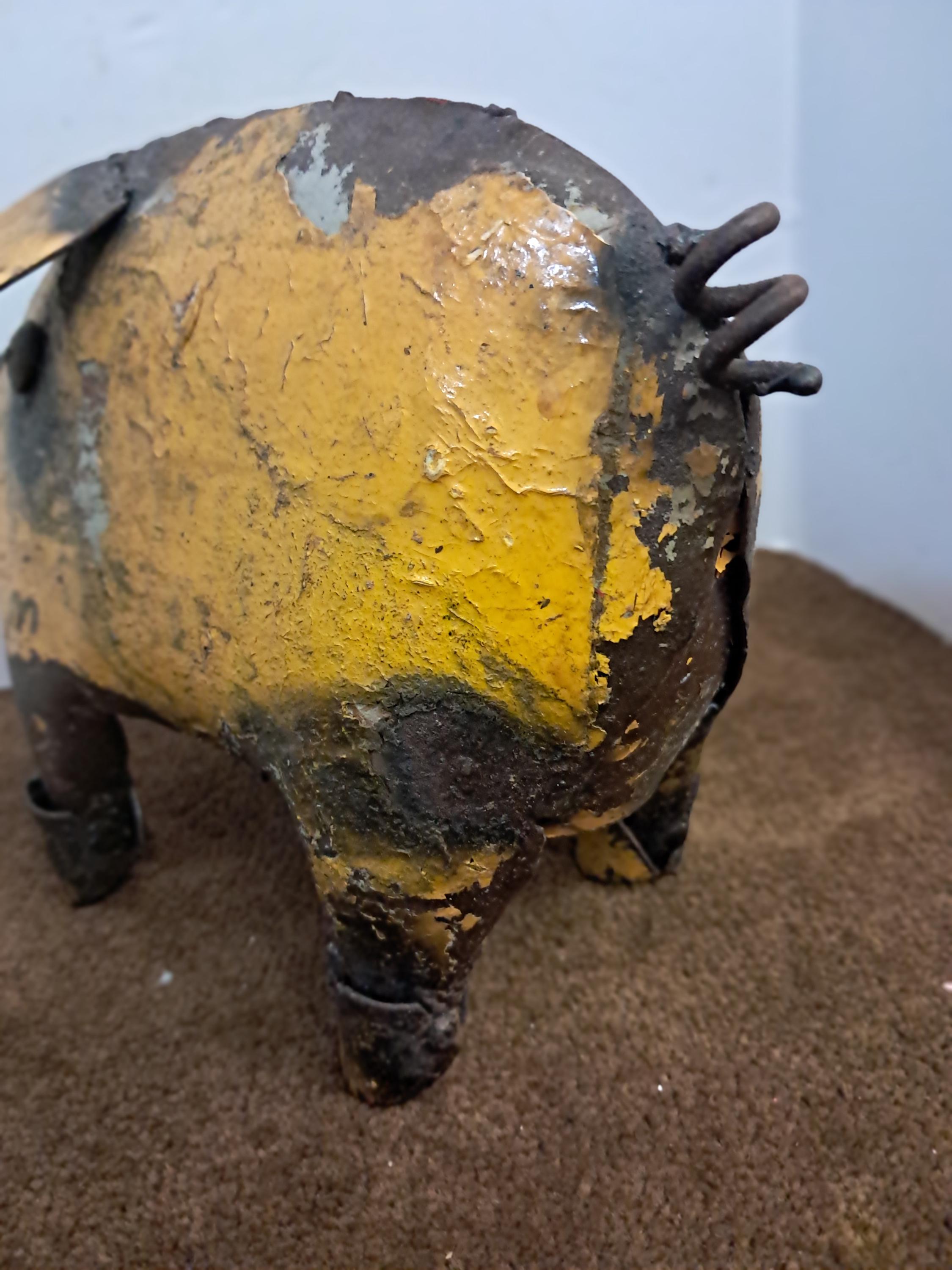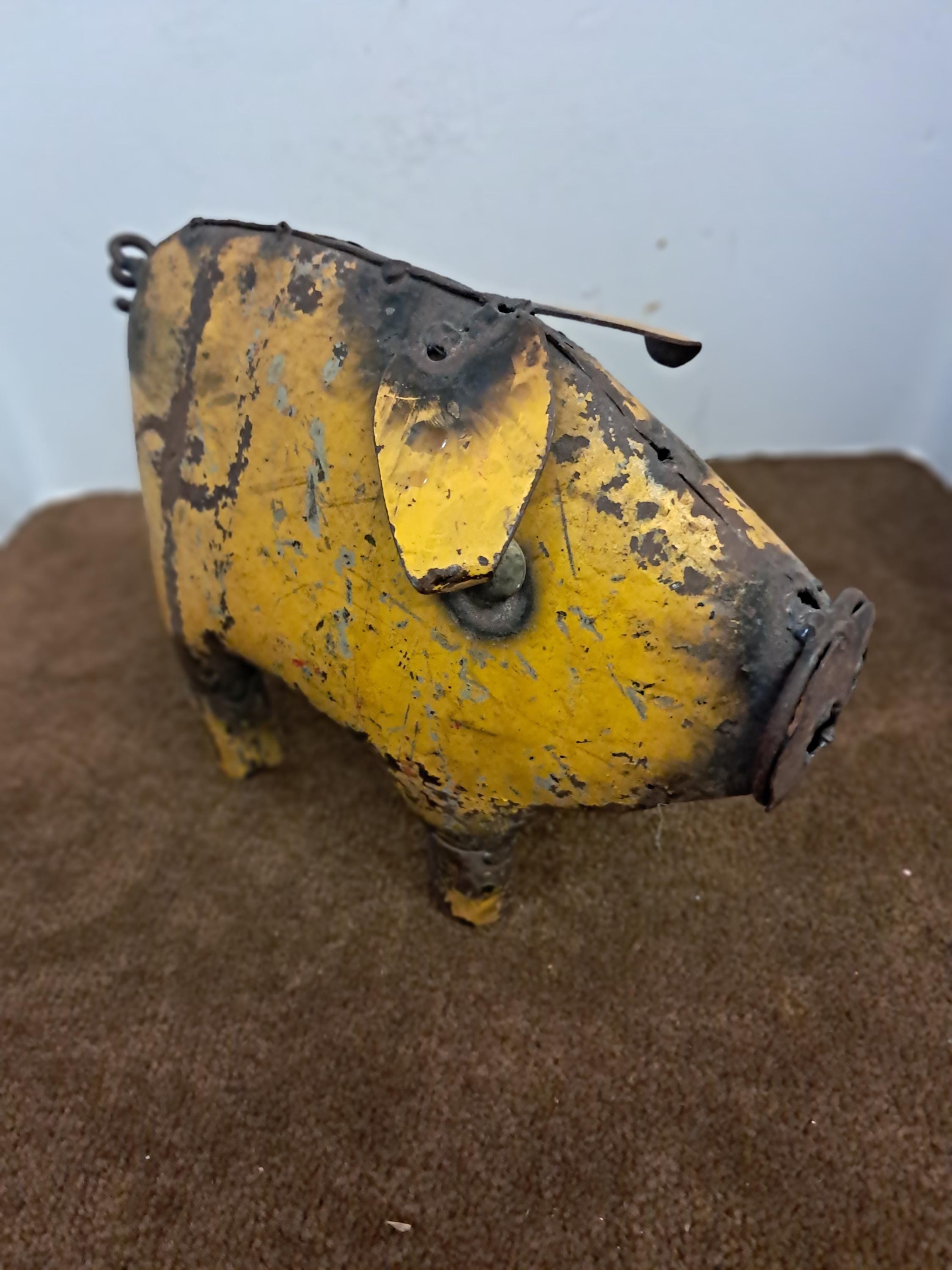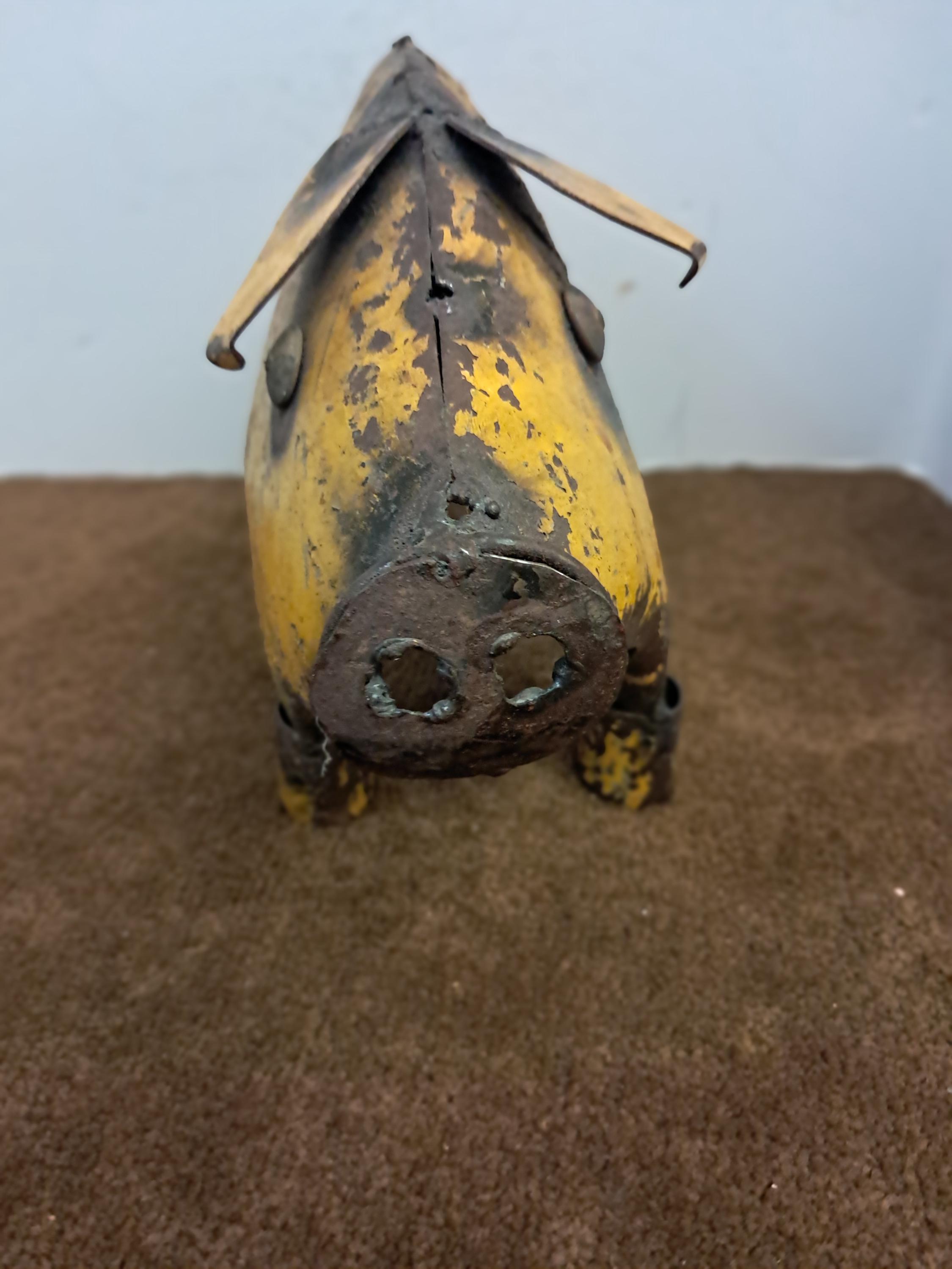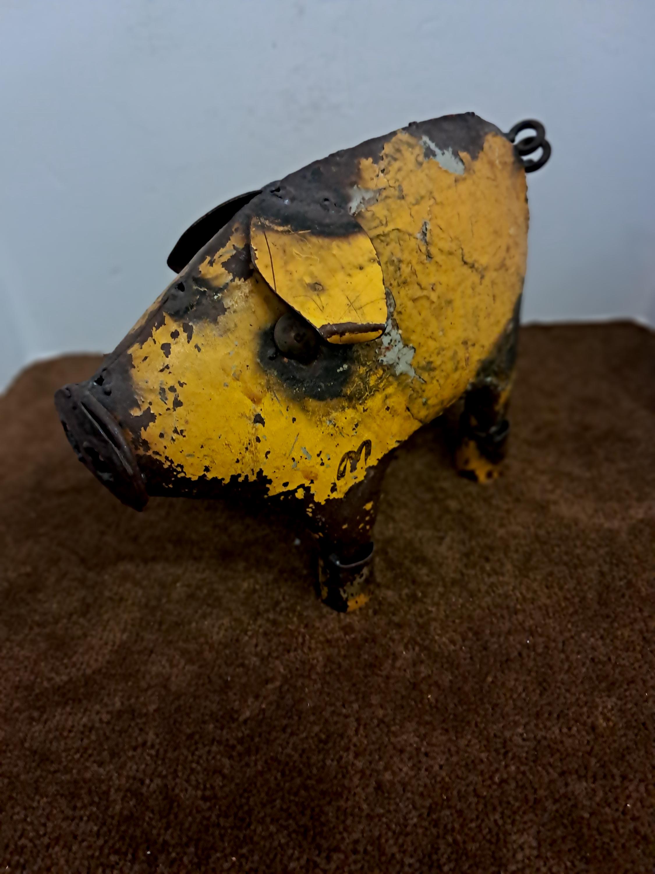 Beautifully and painstakingly handmade, these super cute yellow colored metal pig is just A perfect gift.