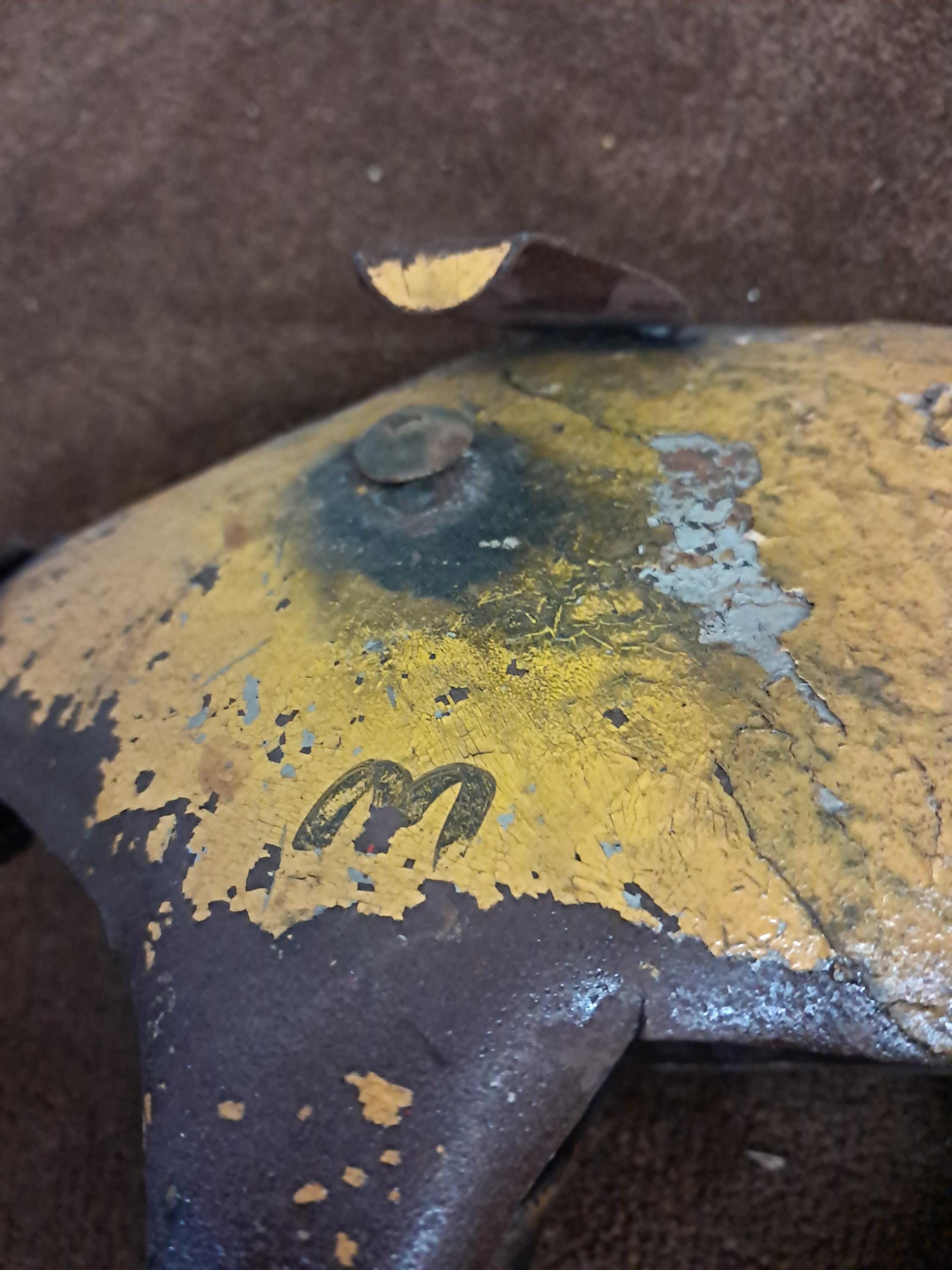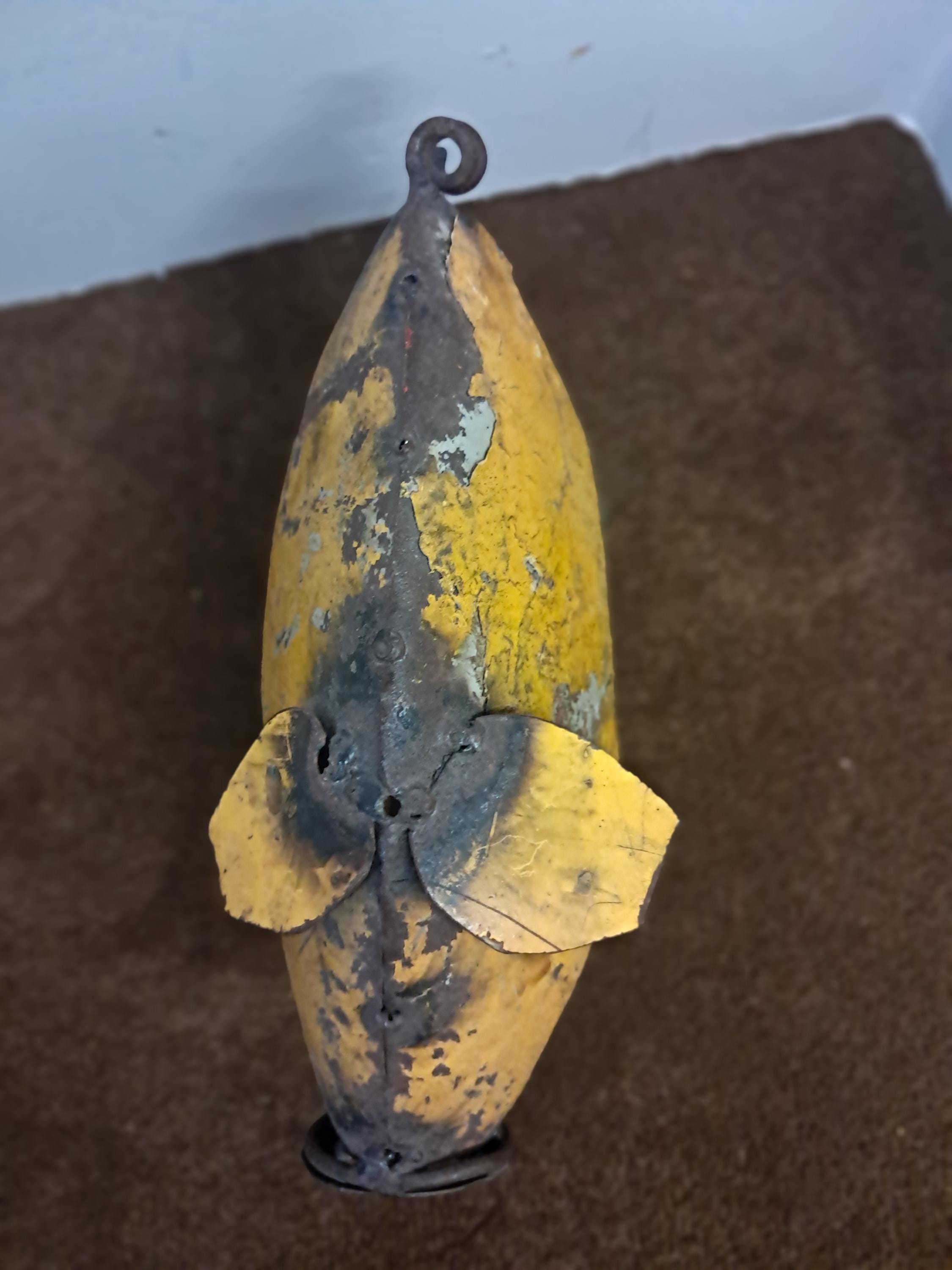 The combination of chipped Yellow colors and Rust make this item of particular collectors interest.