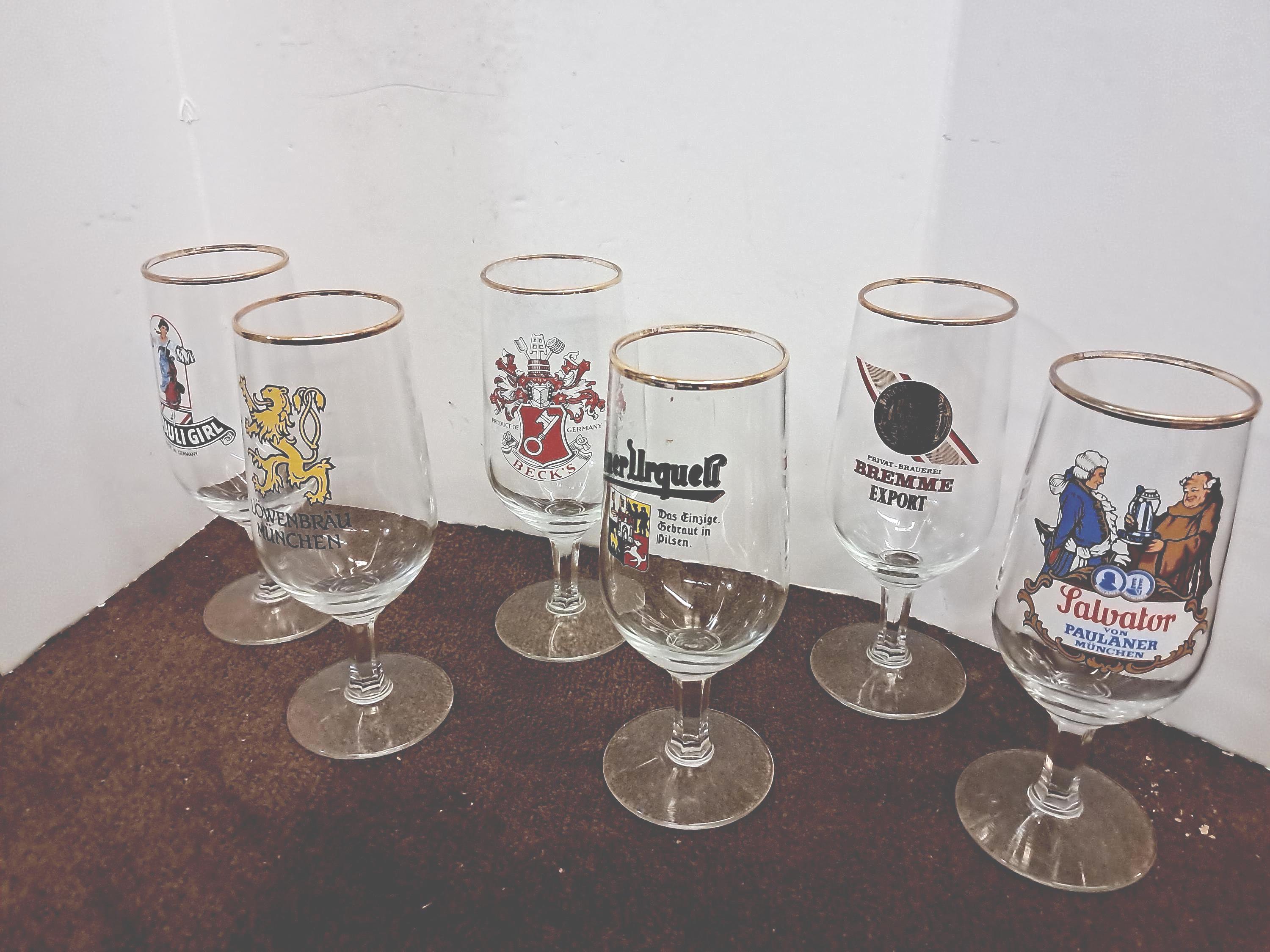 Vintage Set of 6 Various Stemmed Beer Glases, West Germany