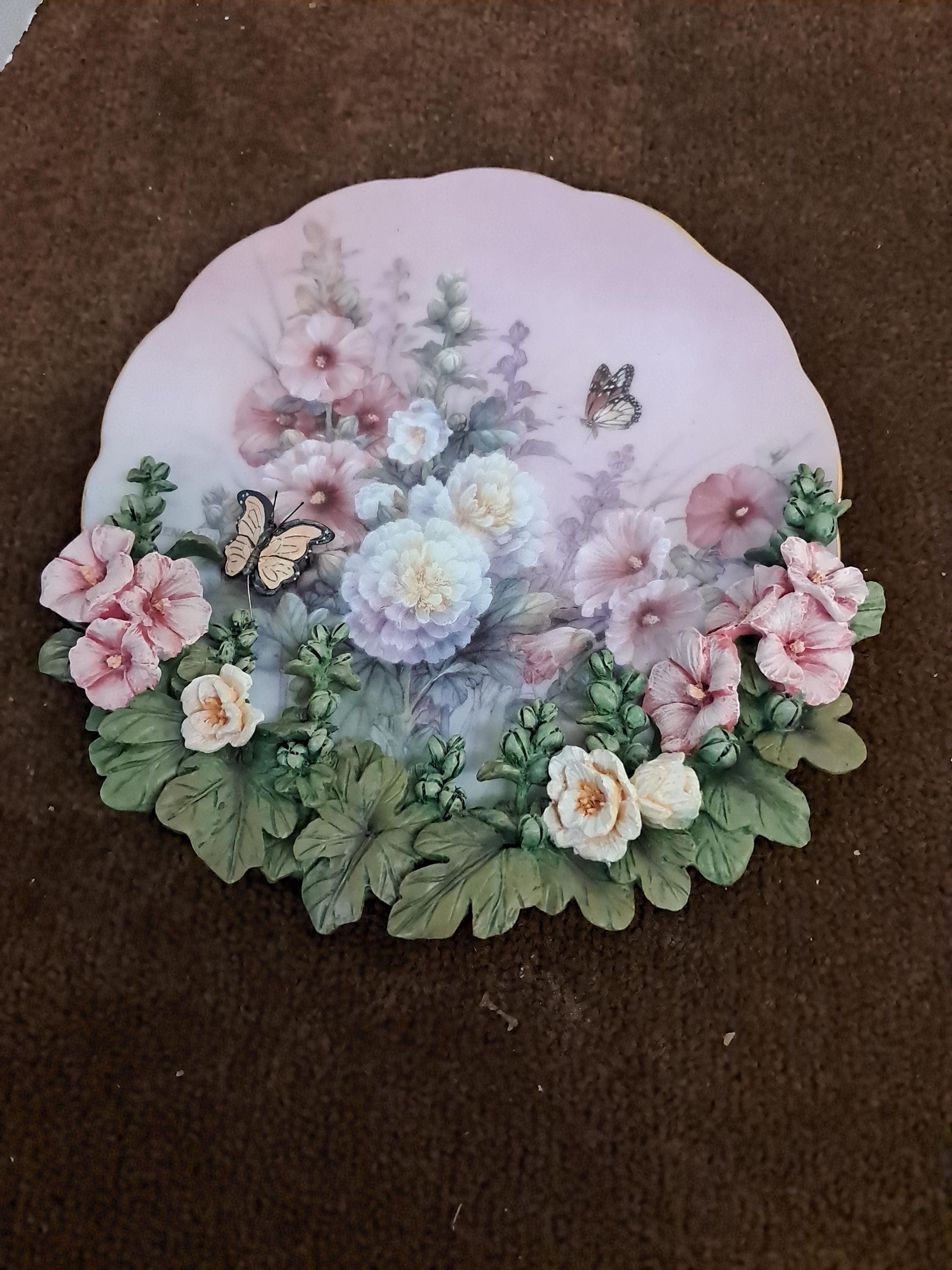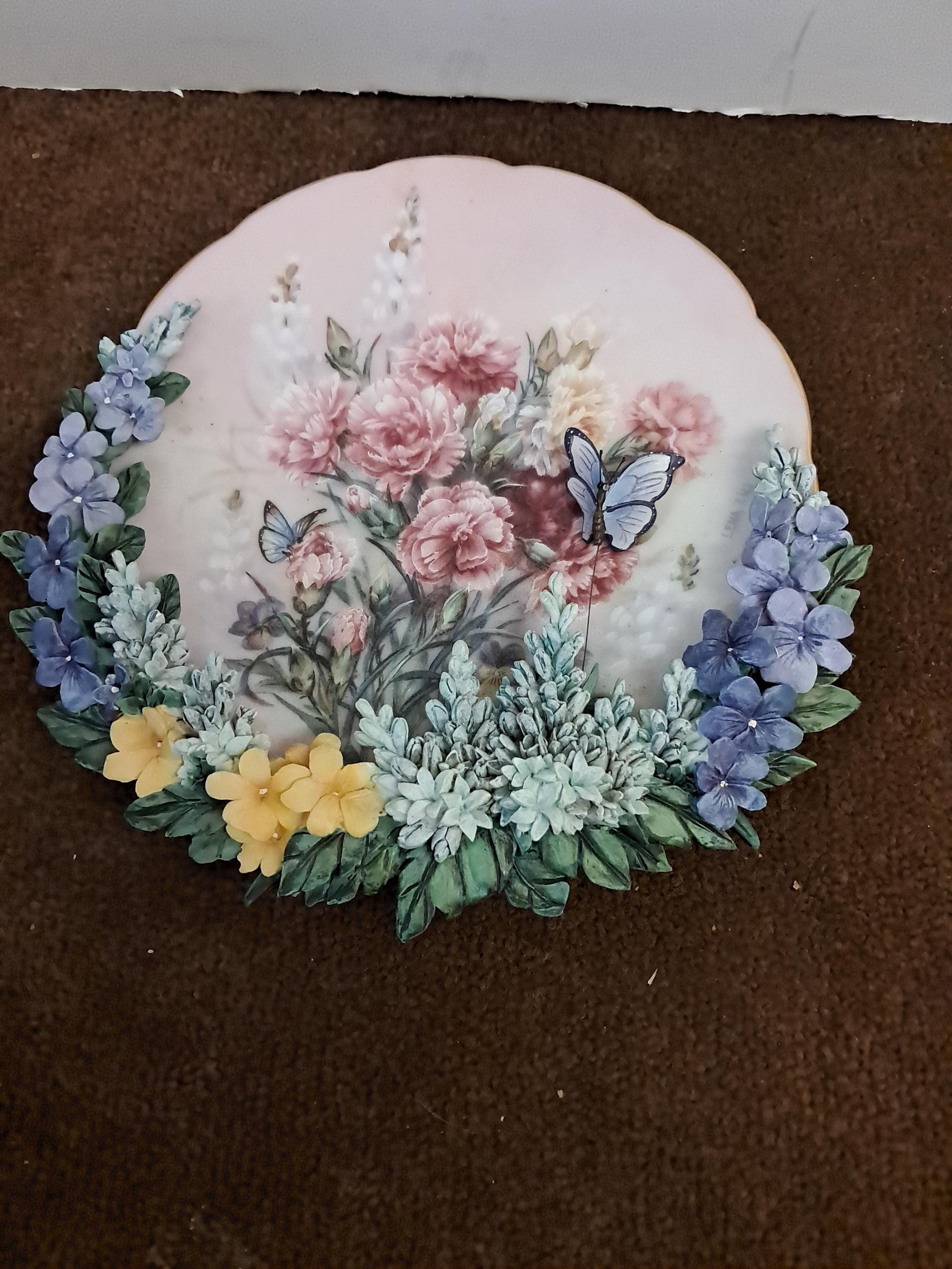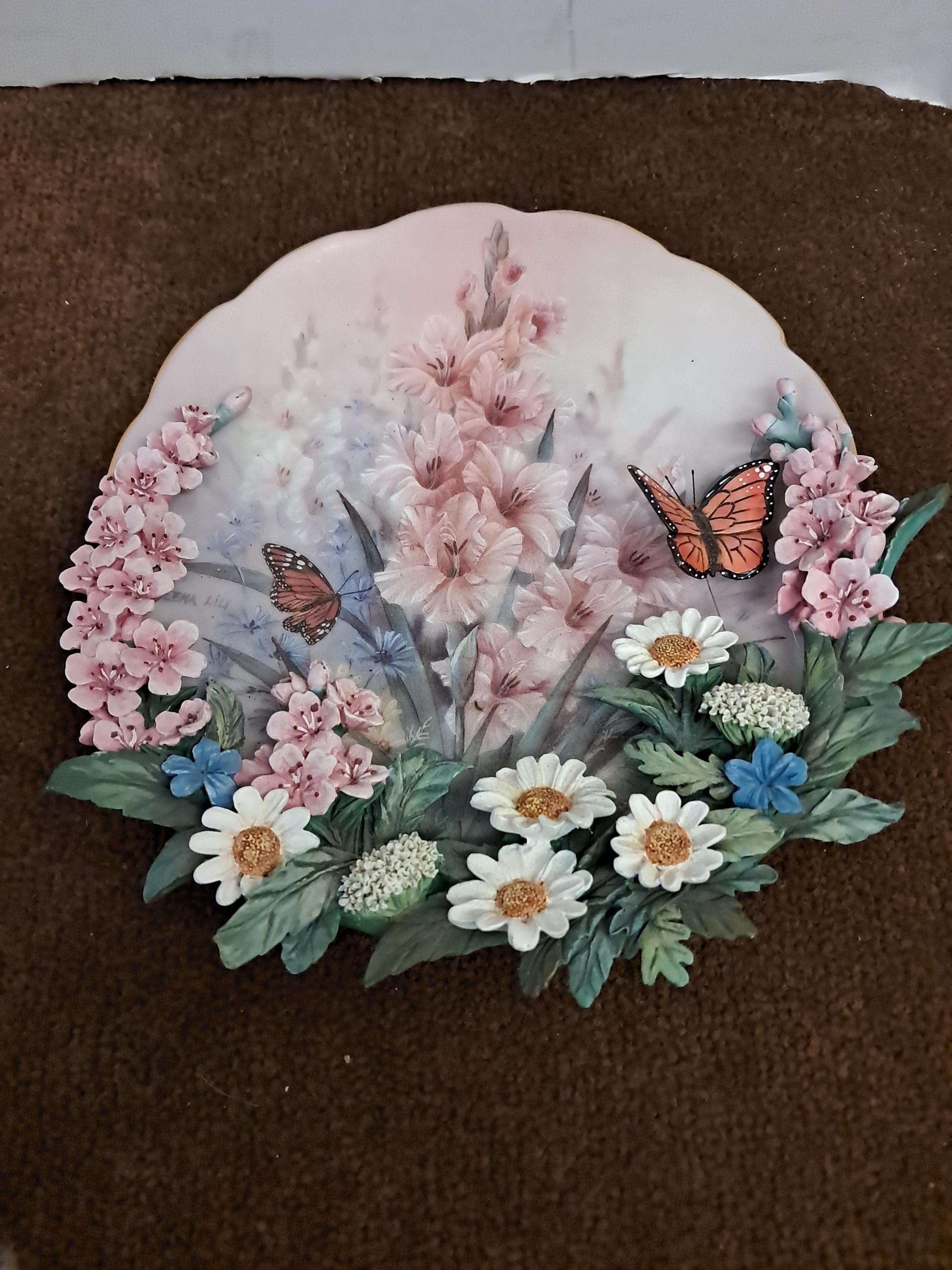 Raised 3-d design of flowers with butterfly. Intricate designed plate.