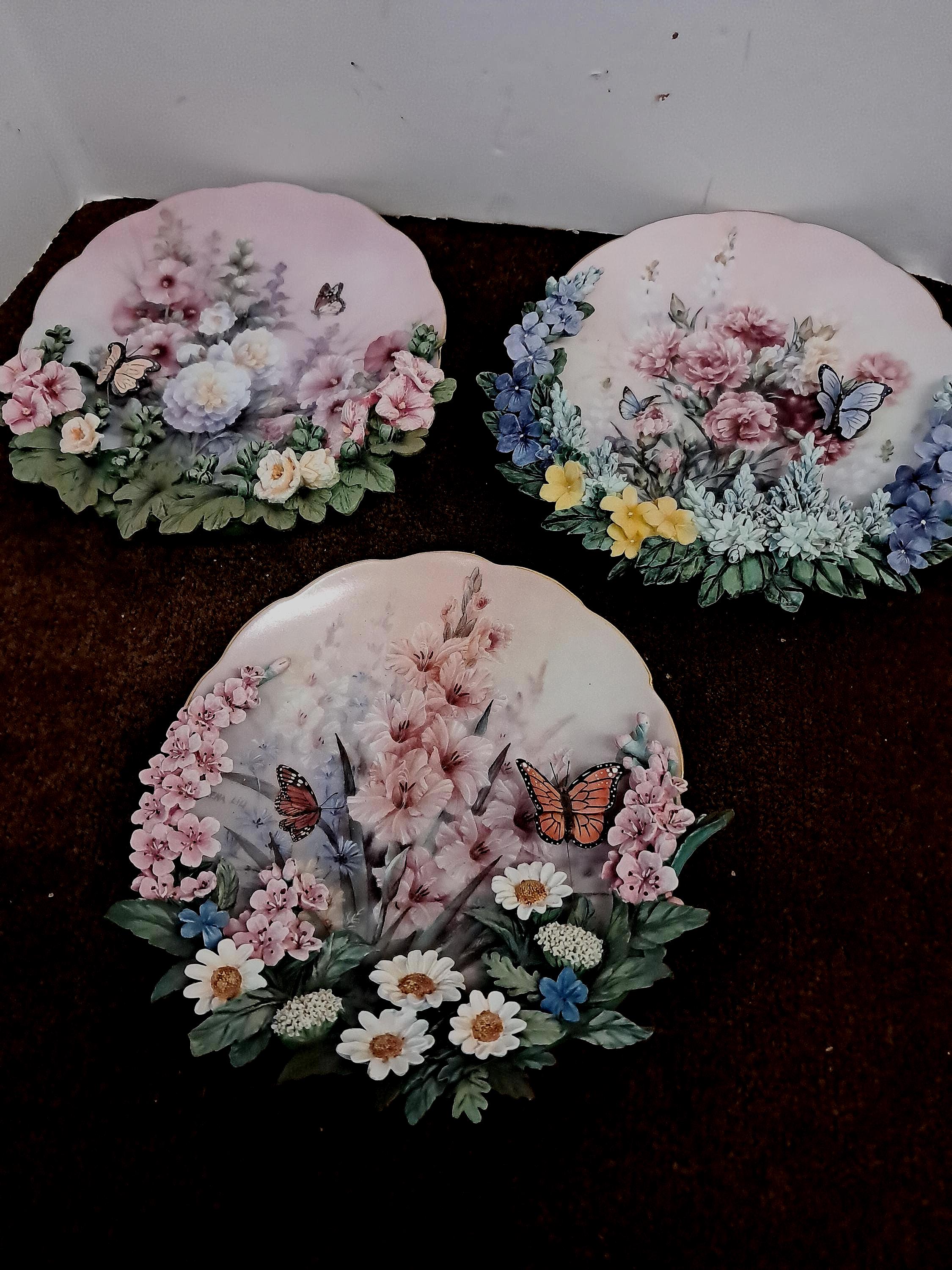 3 Bradford Exchange Lena Liu's Garden Treasures 3D Garden /Butterfly Plates