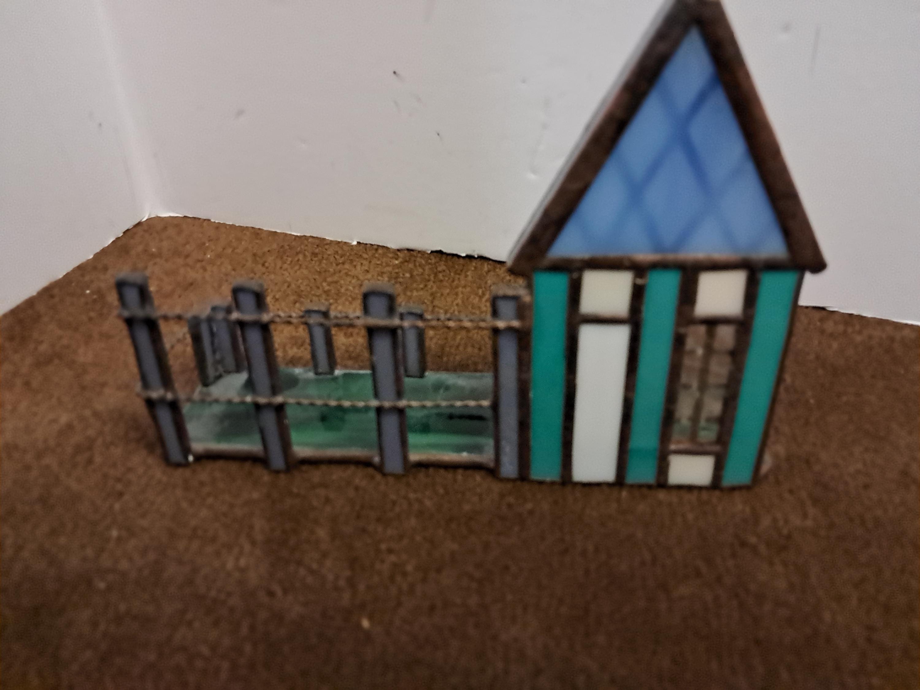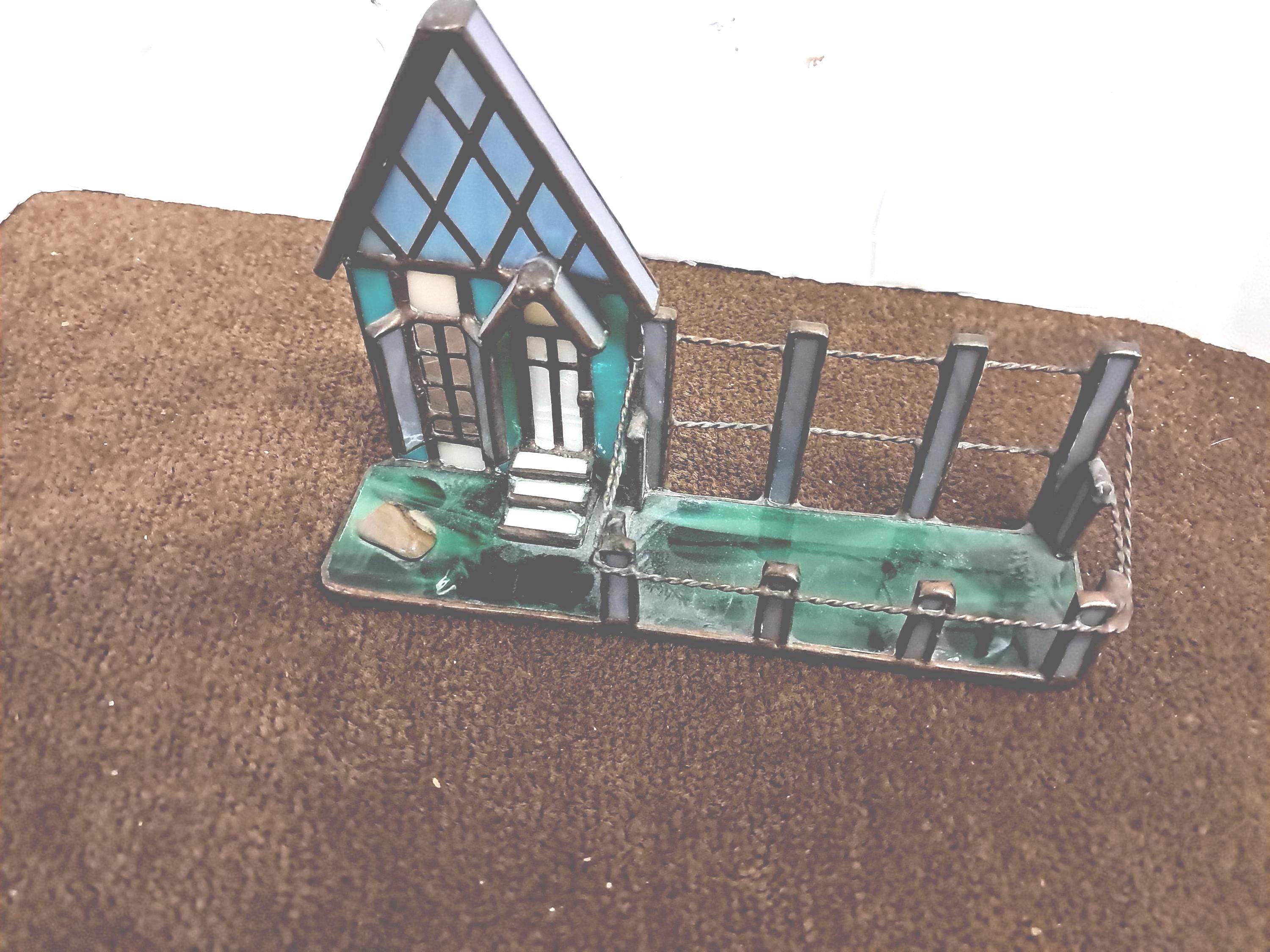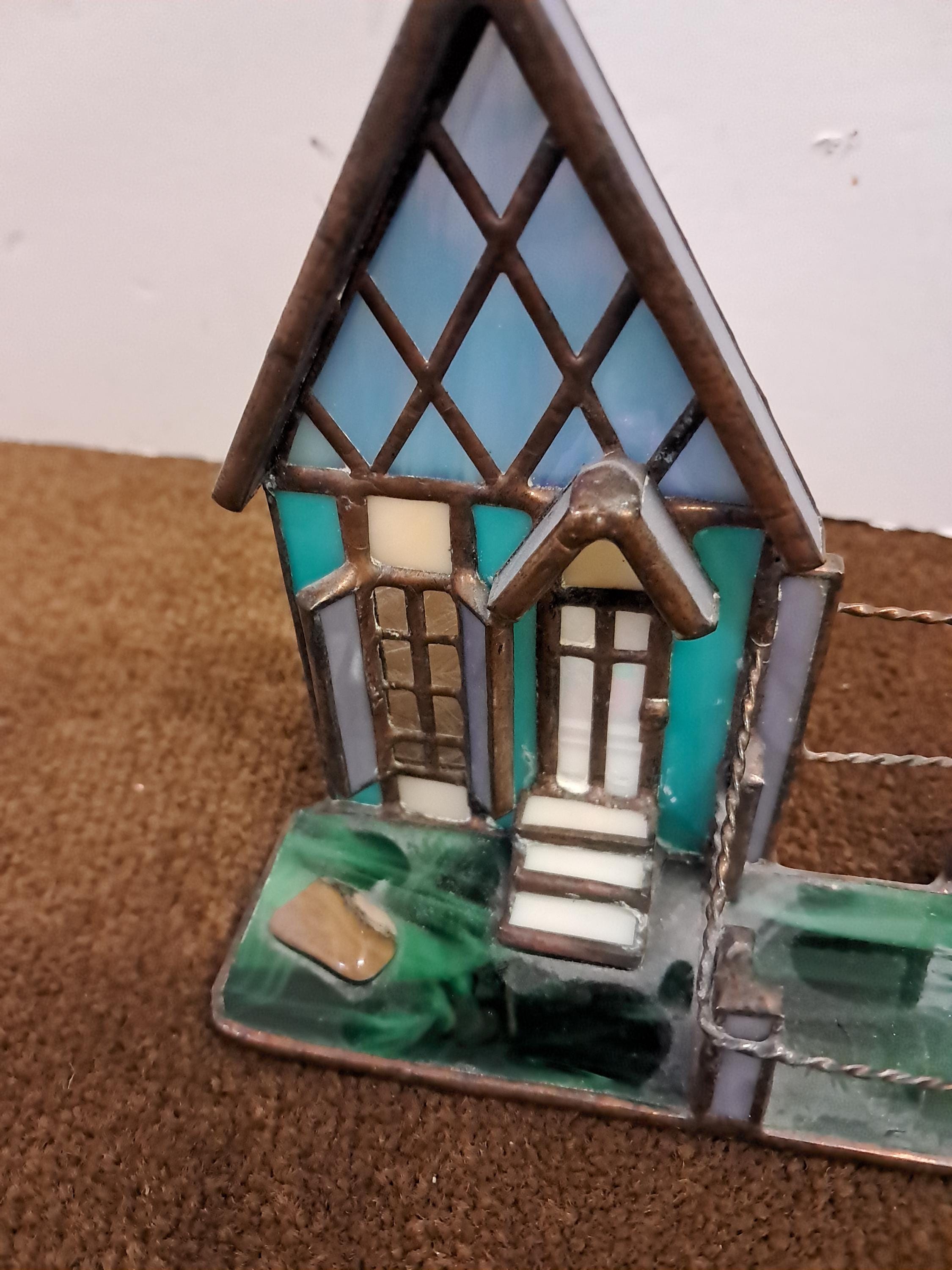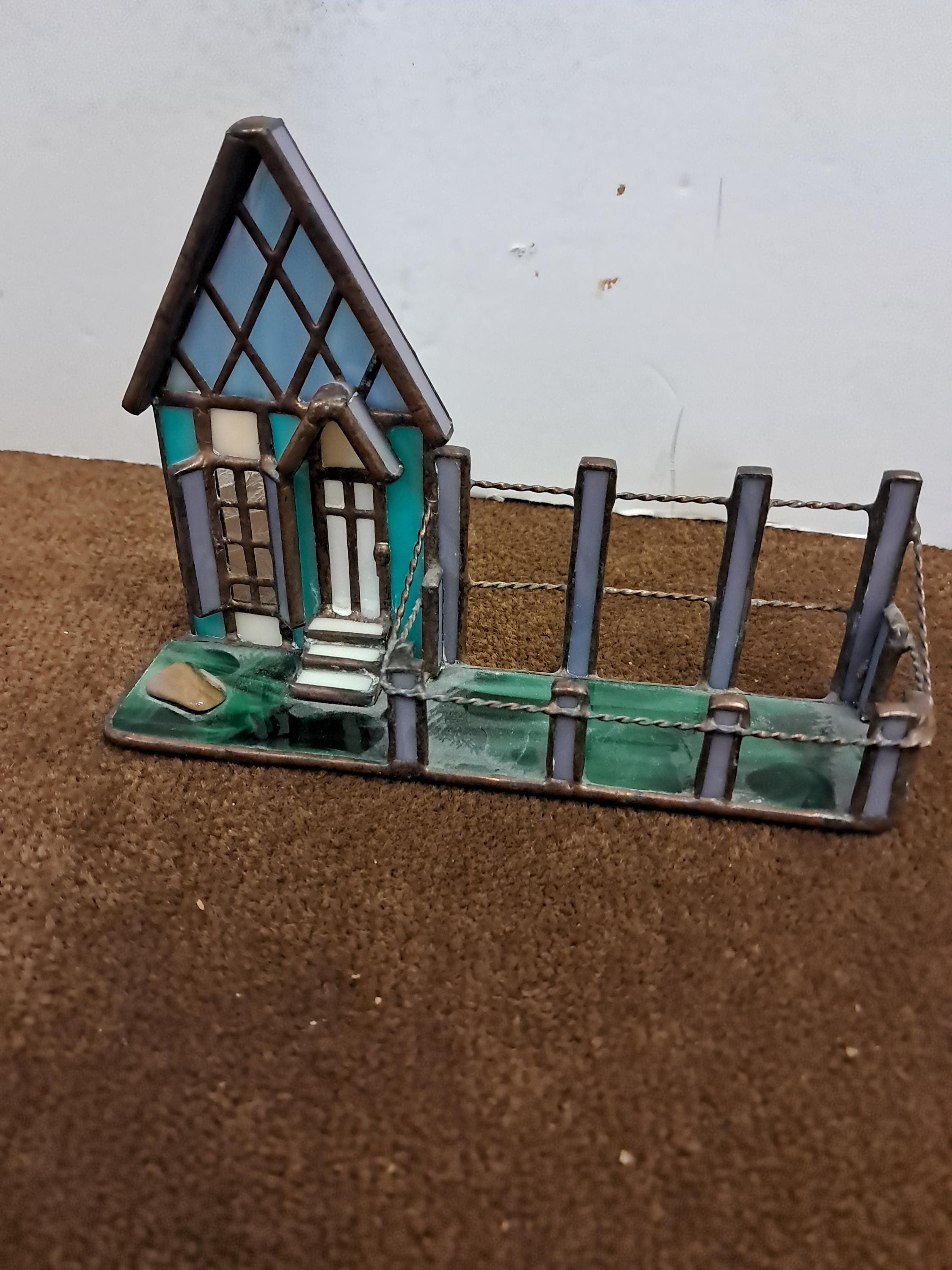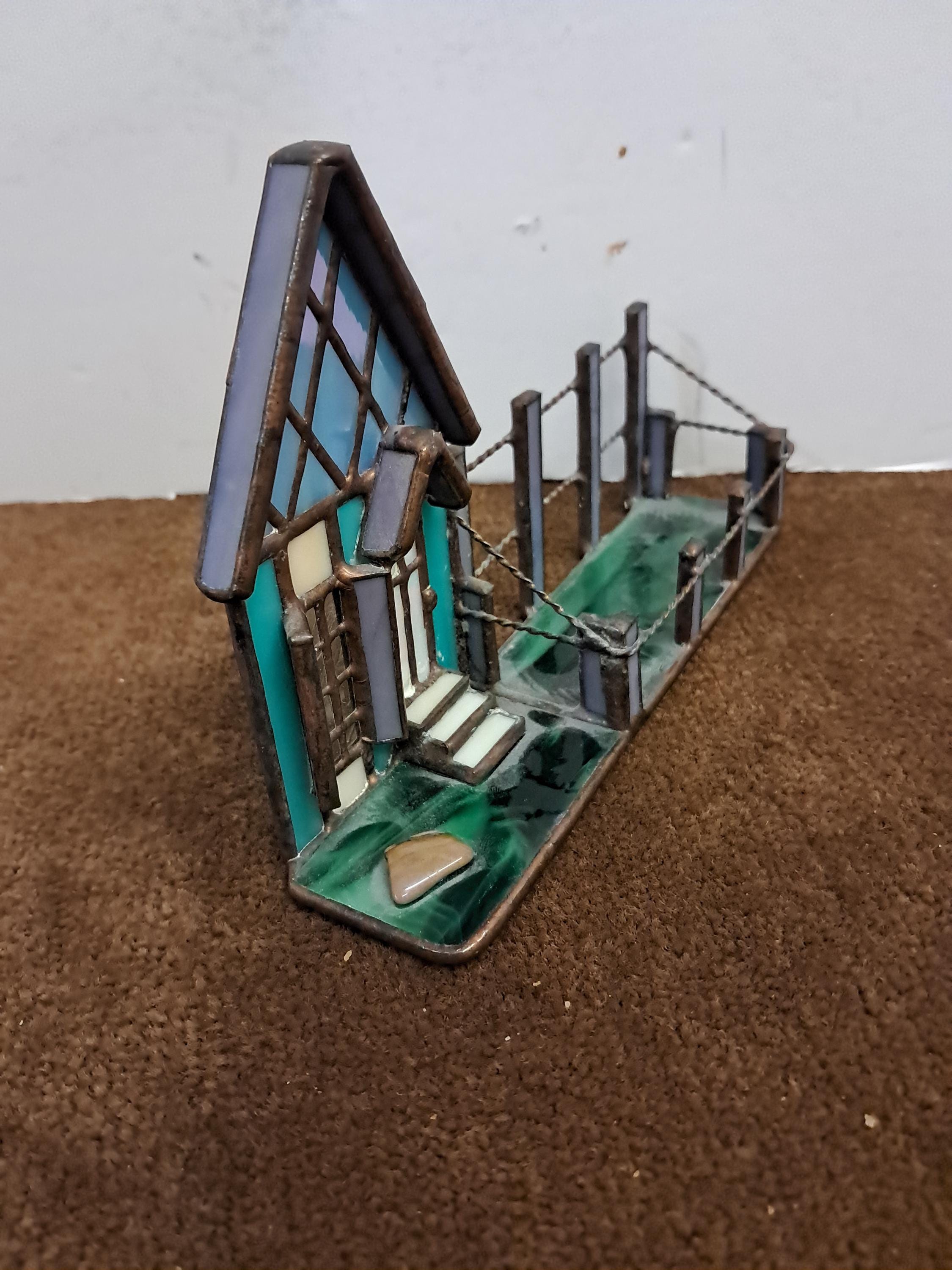 Handmade Stained Glass House Front with Porch