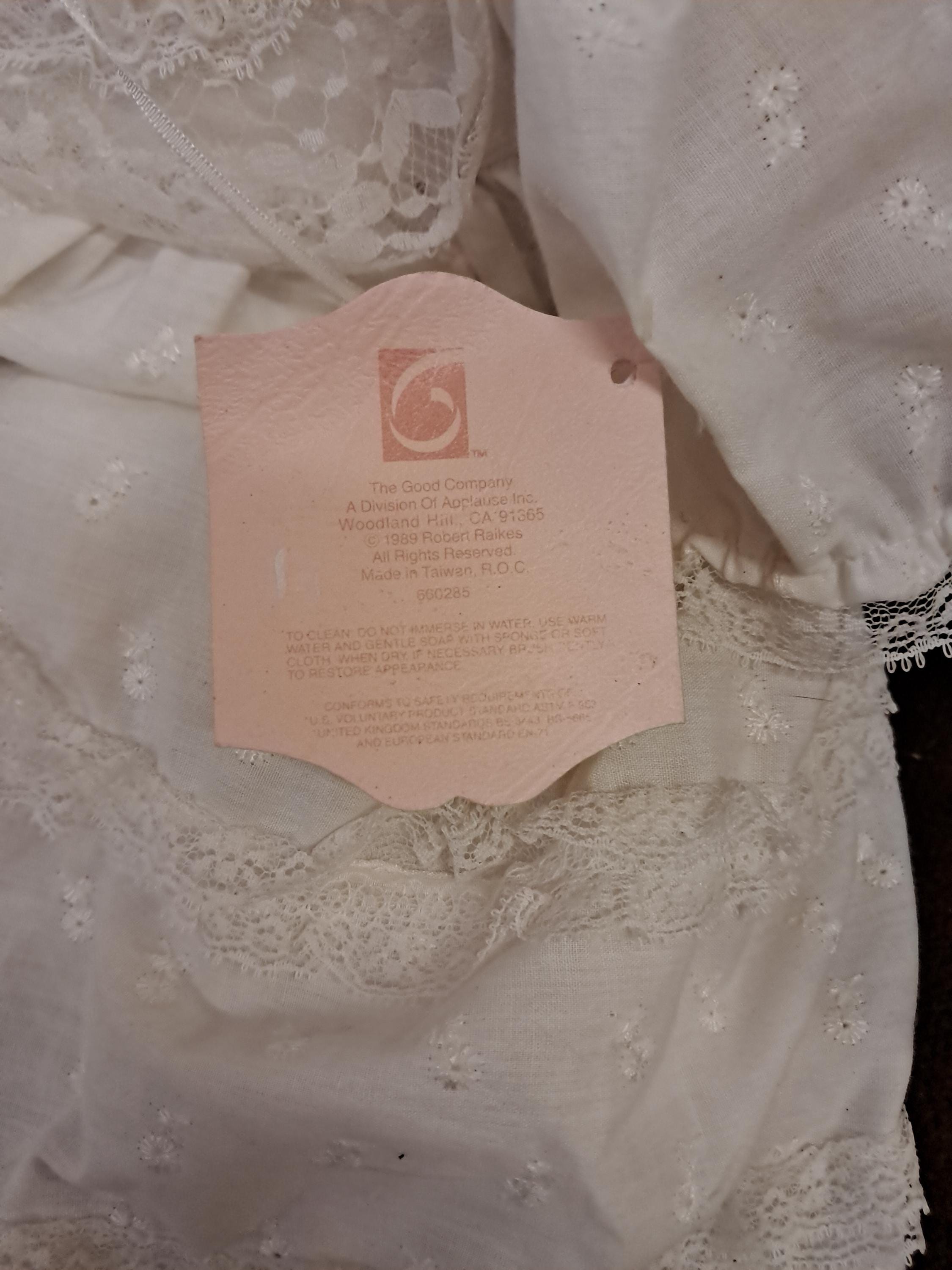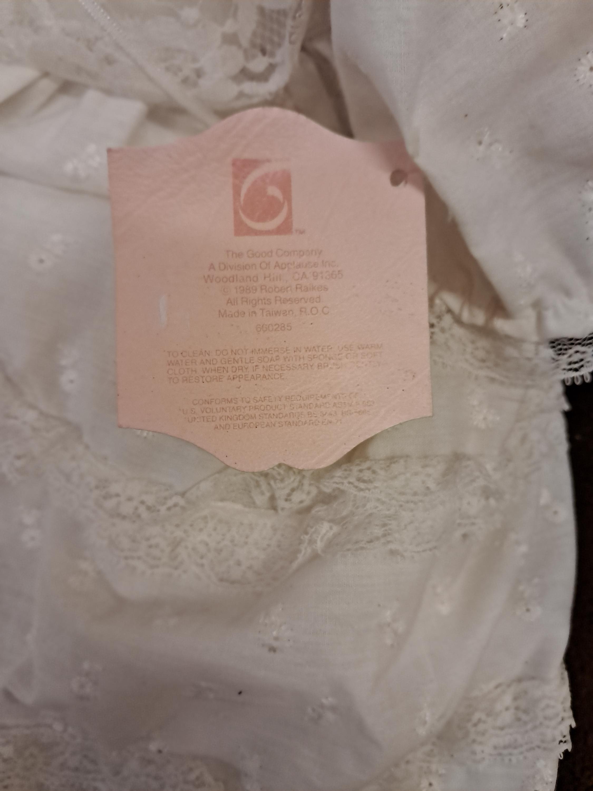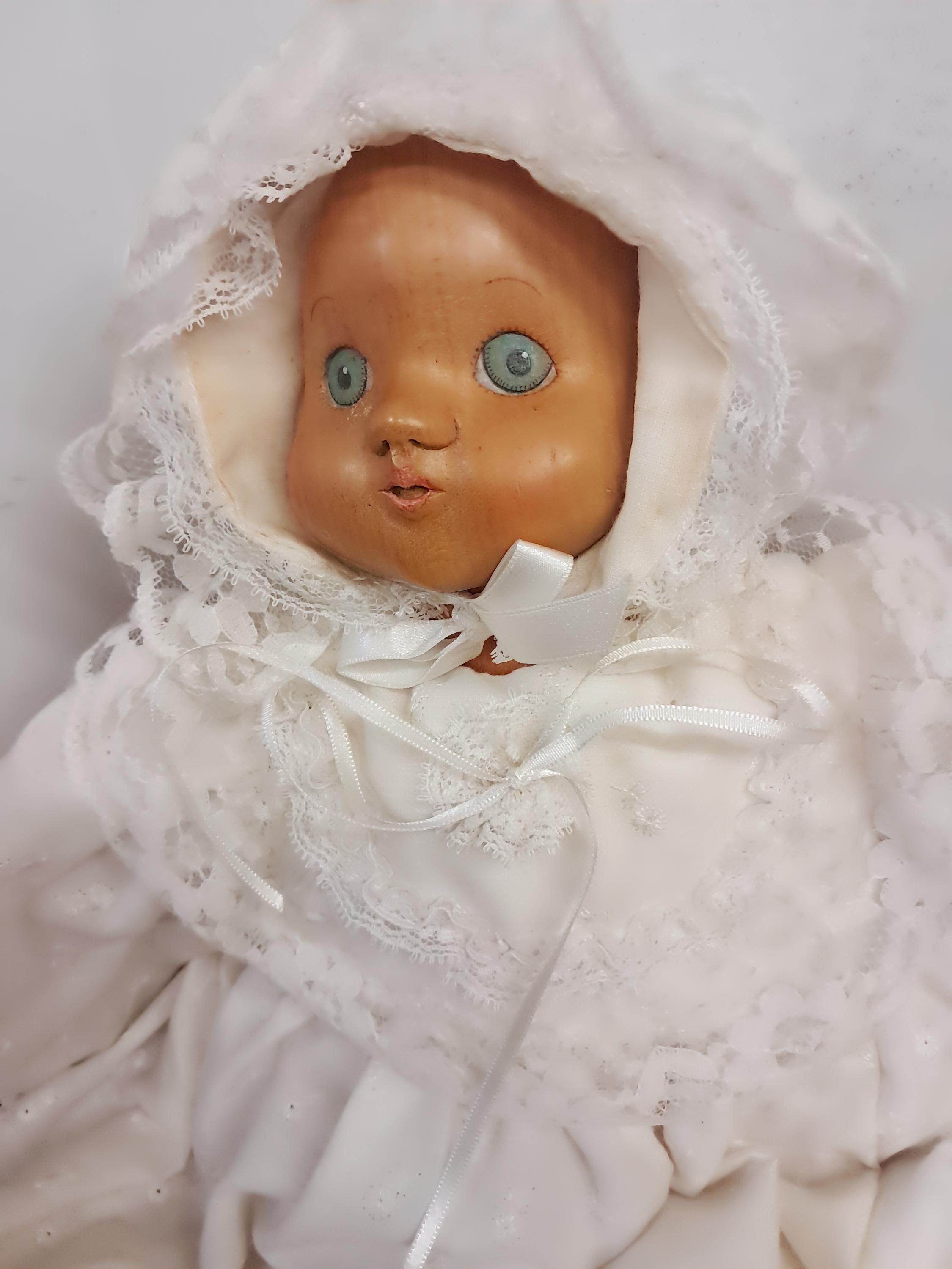 1989 ROBERT RAIKES "JULIET" WOOD BABY DOLL IN CHRISTENING OUTFIT