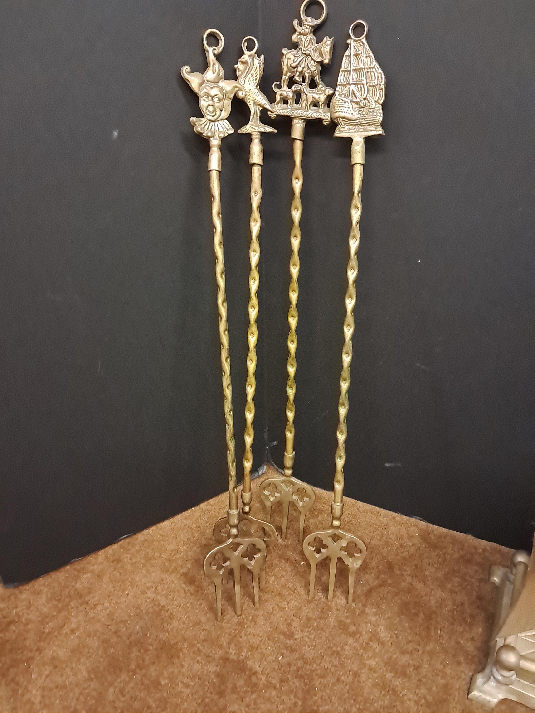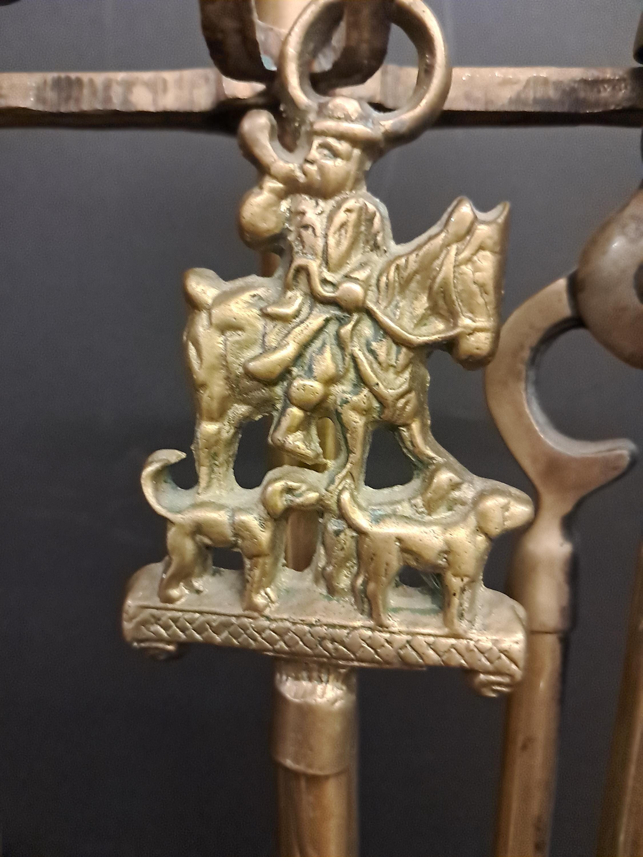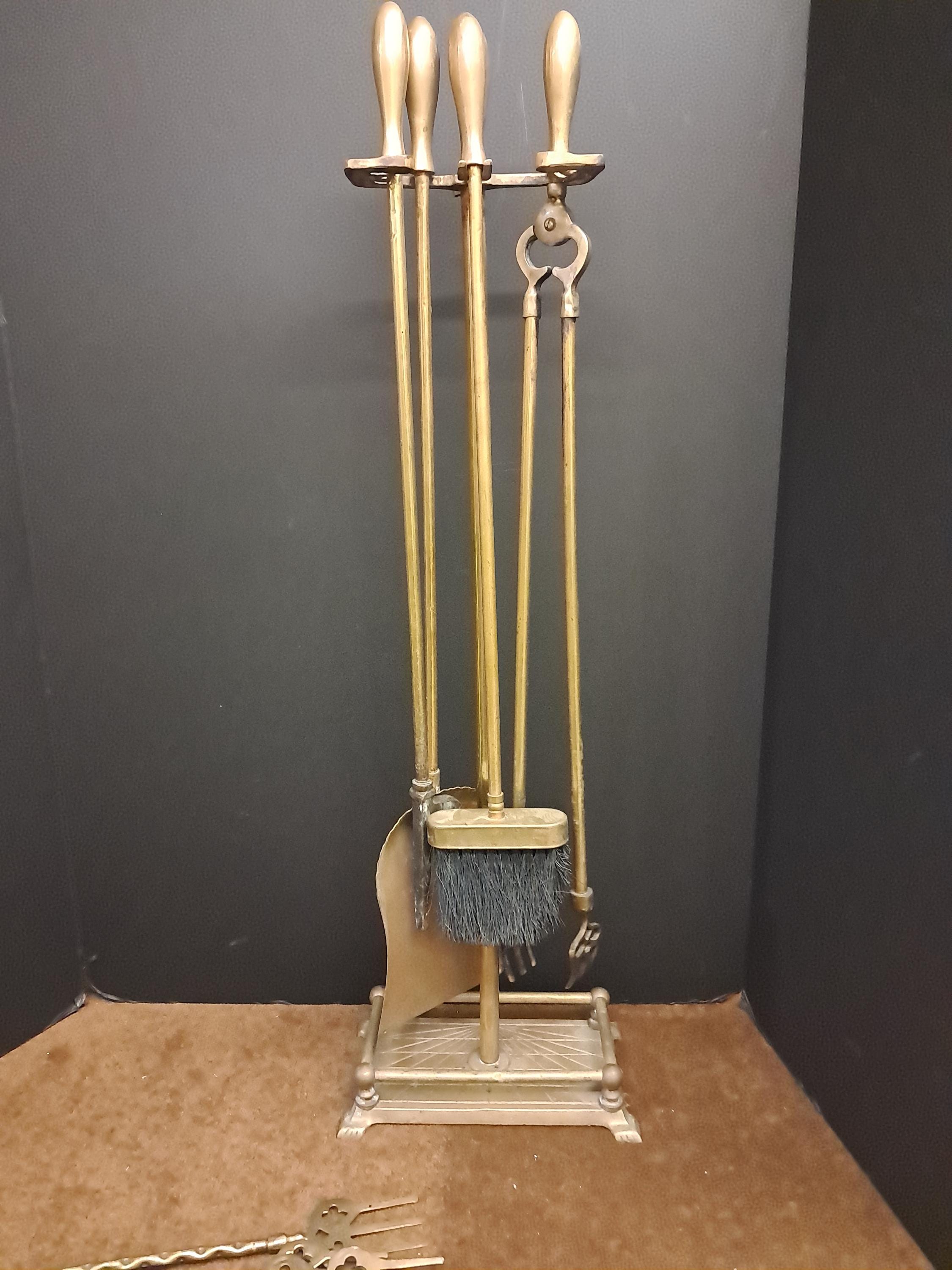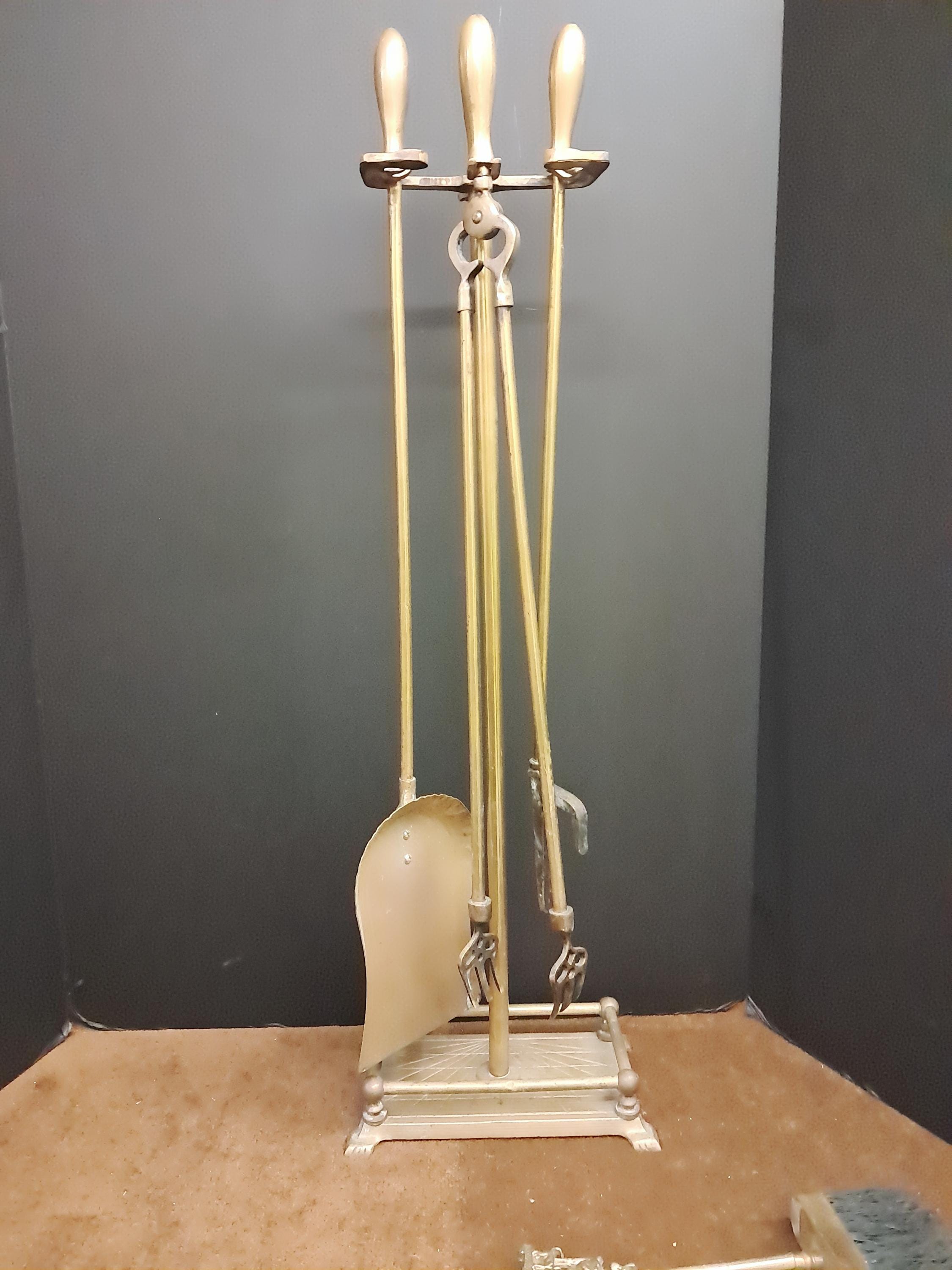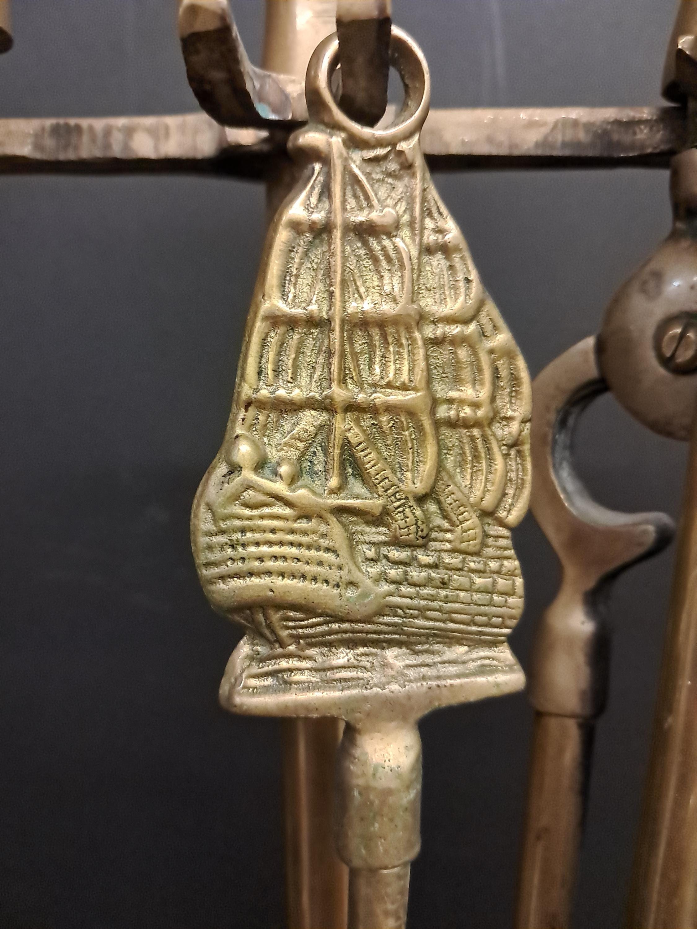 Unlike other Tool Sets, this Fireplace set comes with addition 4 tools They are shorter but useful items. Made of Brass, Yet Original is Unknown. Possible France.