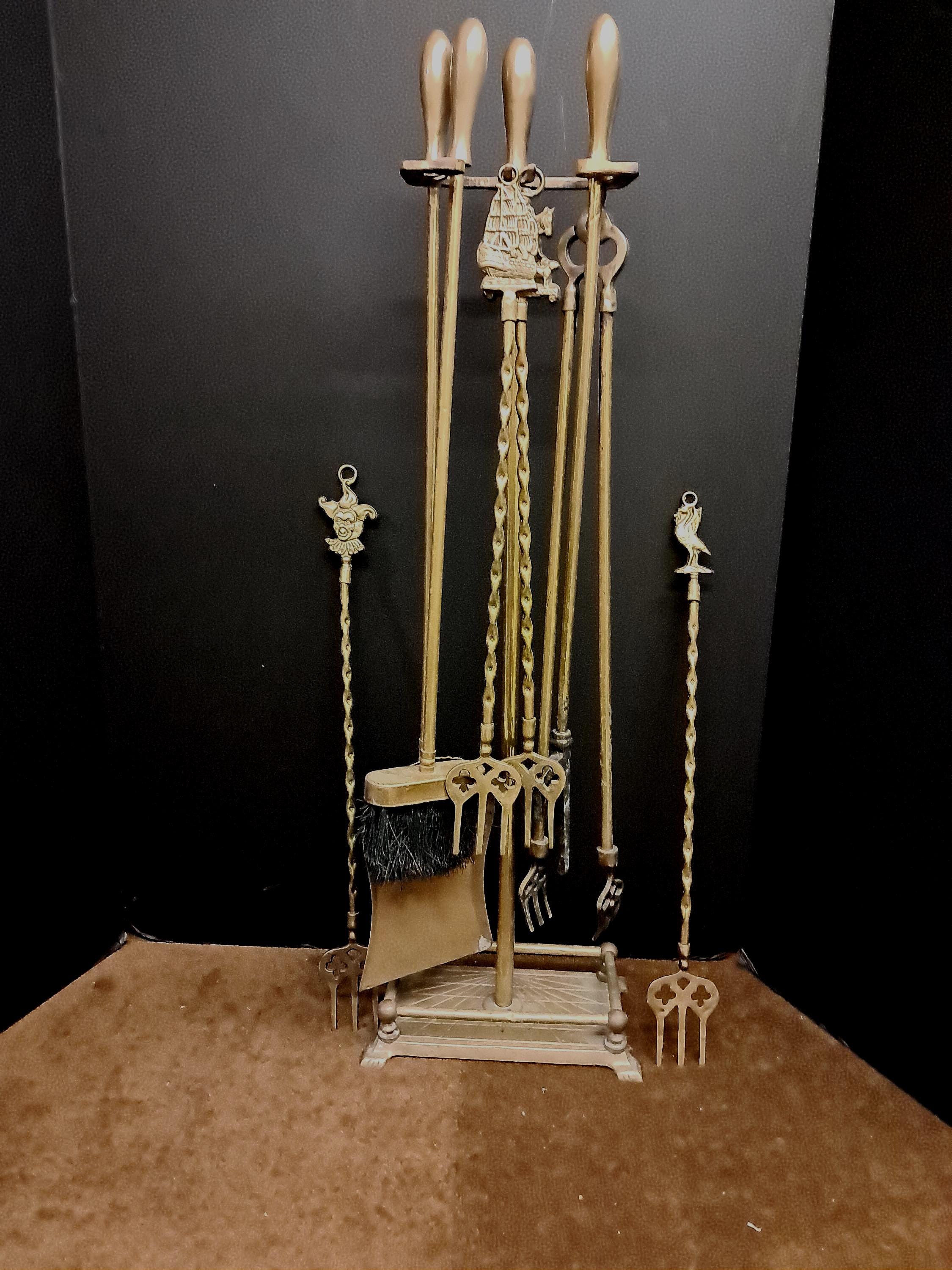 Vintage Brass 9 Pieces Fireplace Tool Set