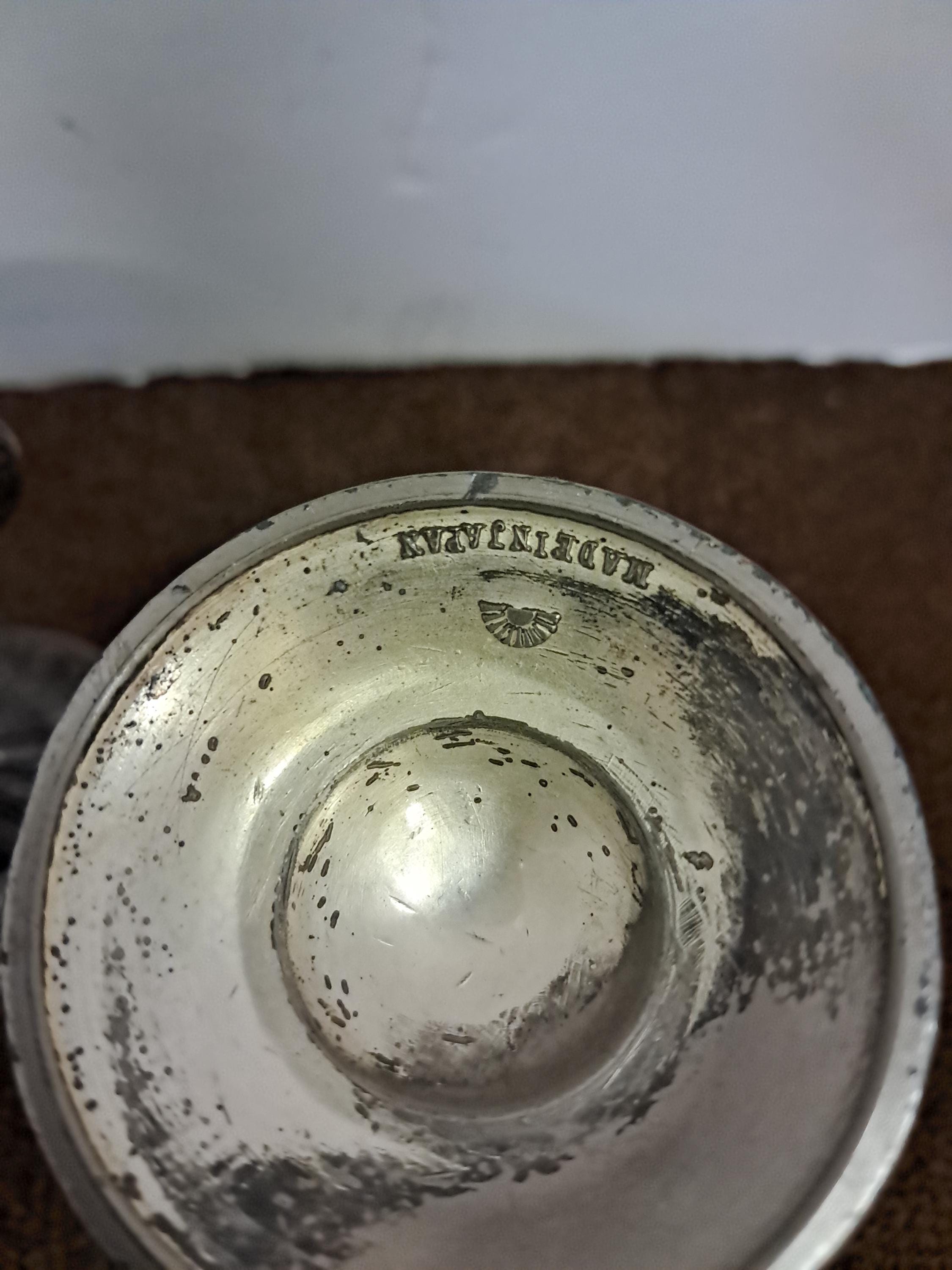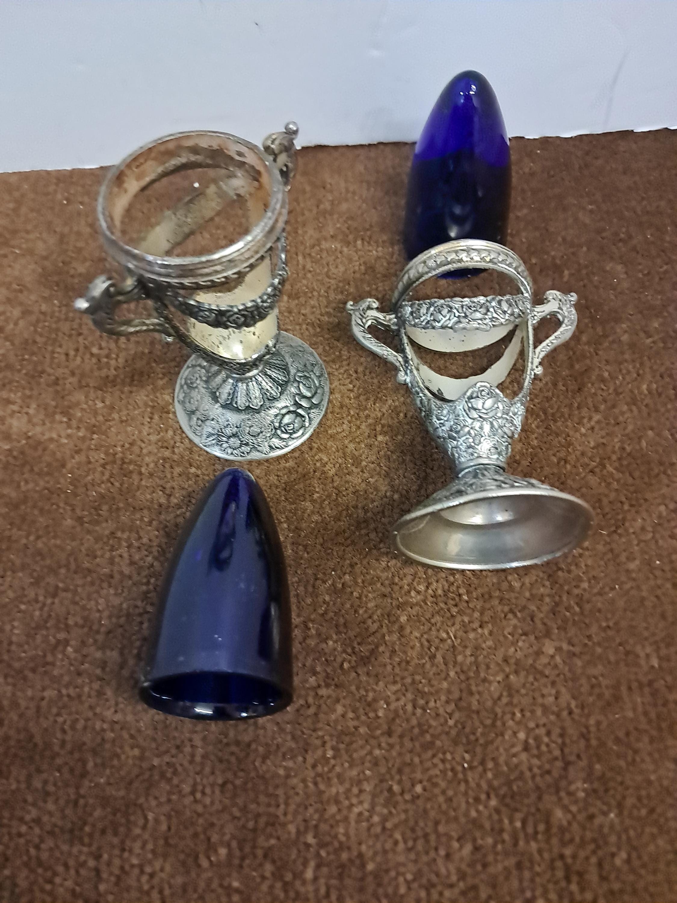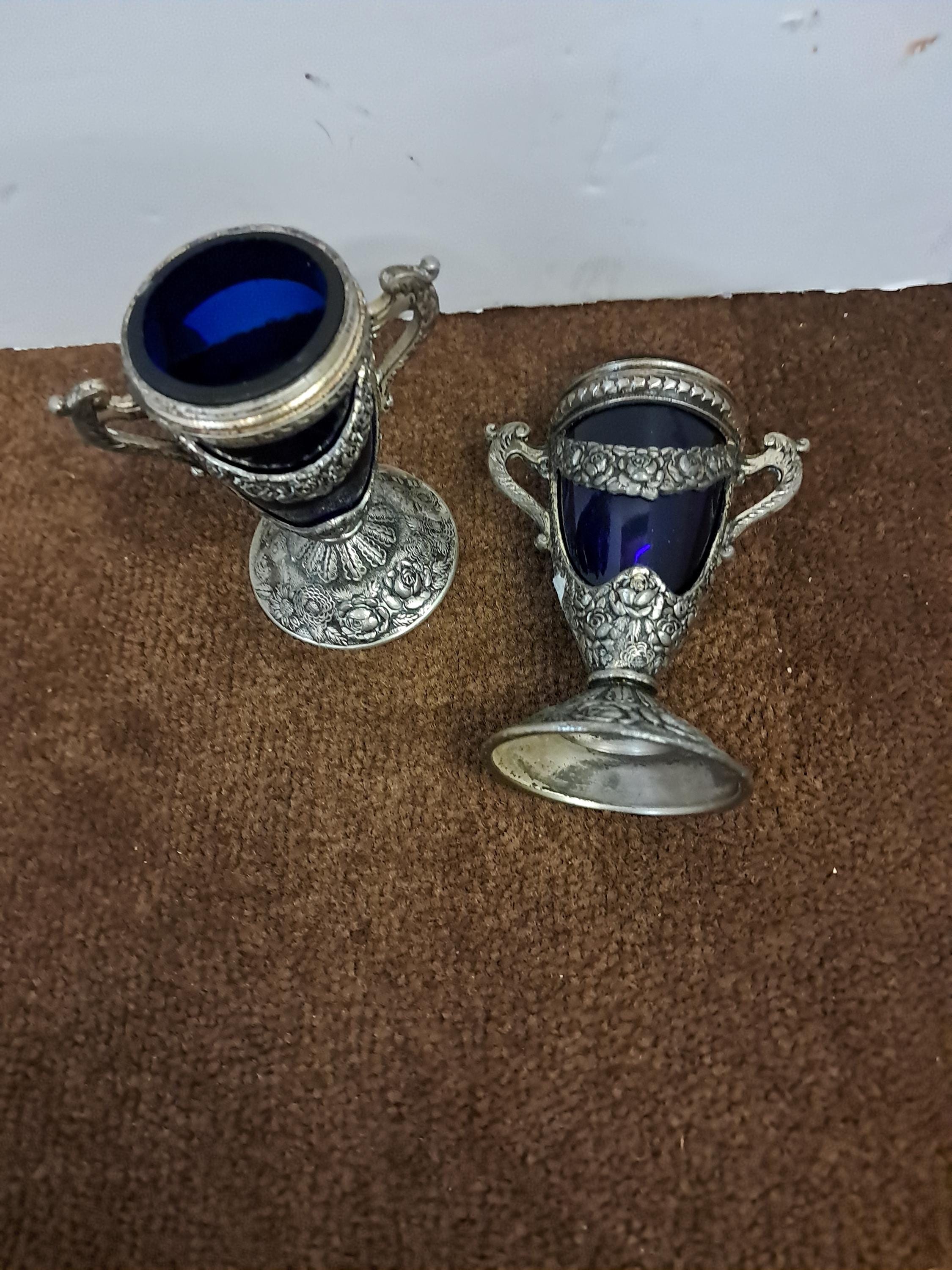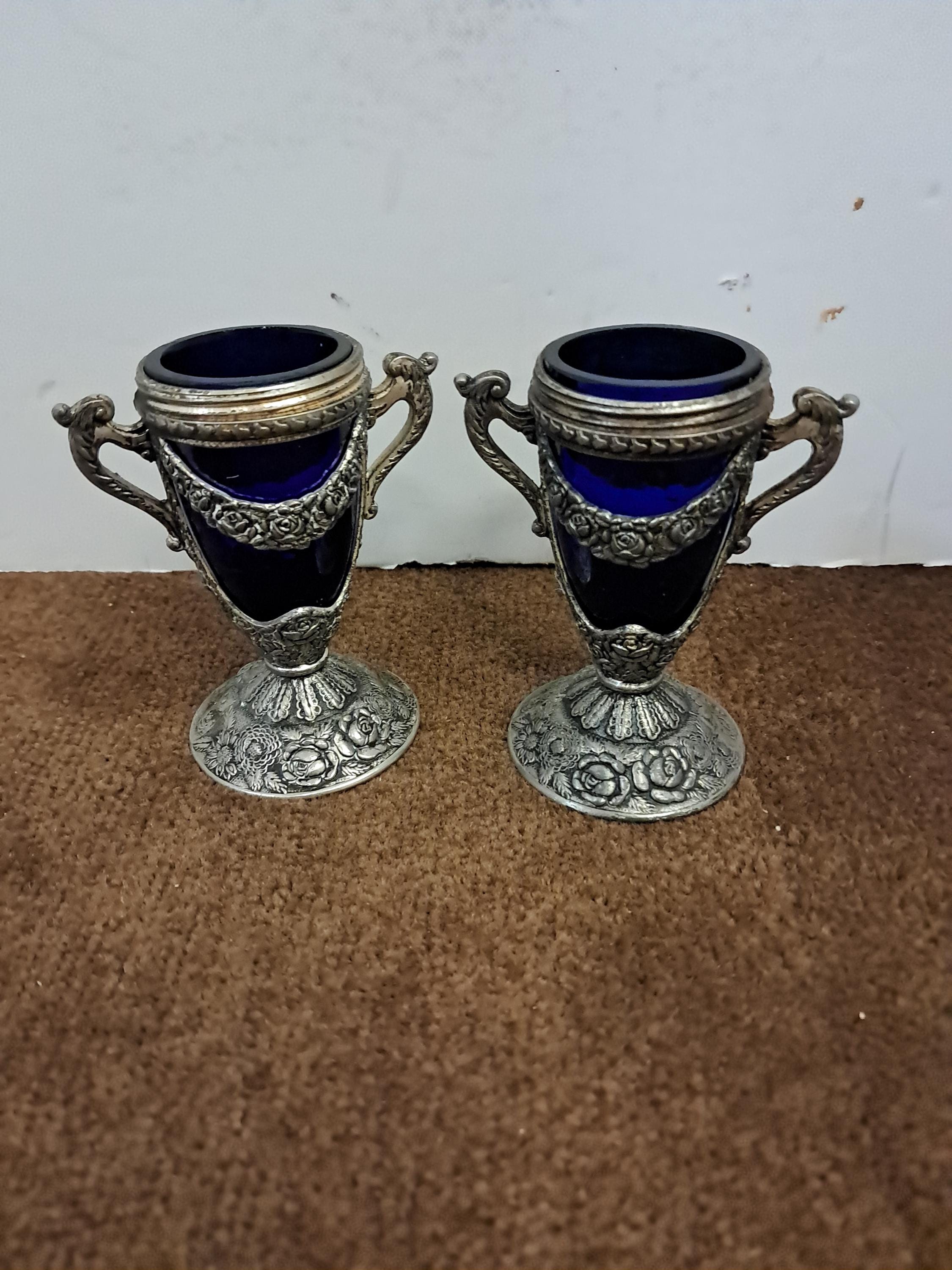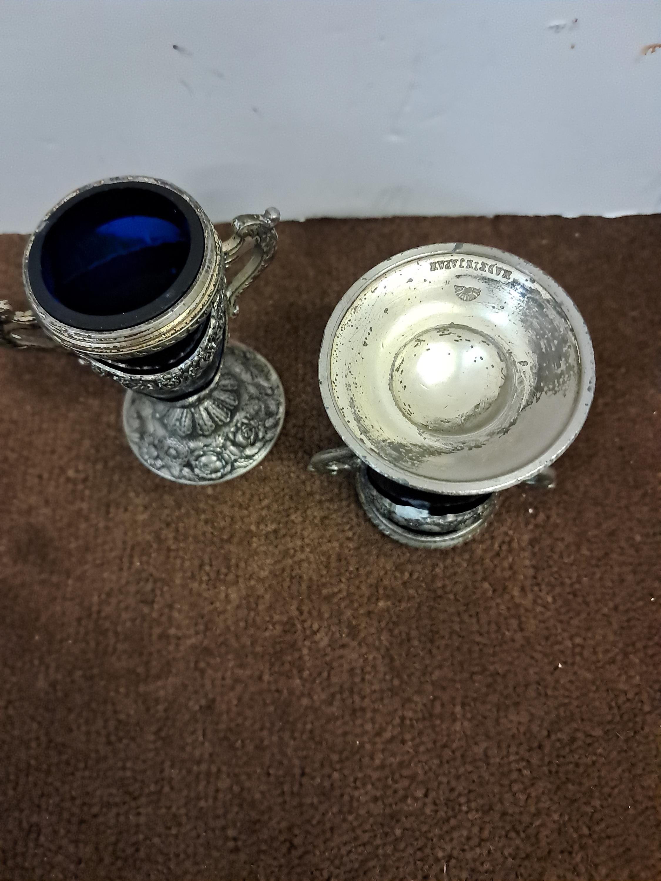 Circa: Mid 20th Century Material Cobalt Blue Glass, with Engraved Design Metal