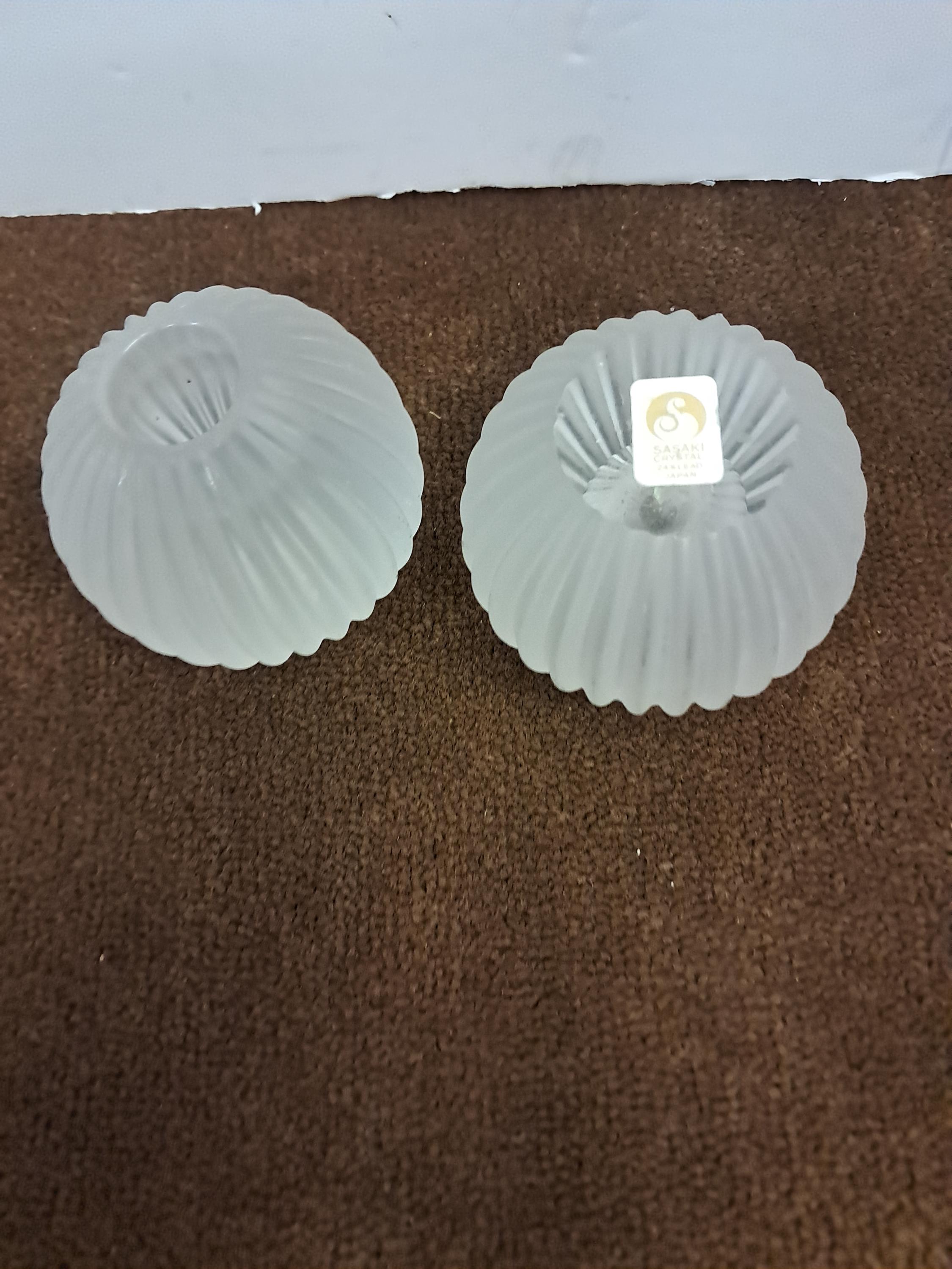 Beautiful, simple, classy, elegant Vintage Pair of SASAKI Crystal 24% Lead Japan Frosted Glass Candle Holders