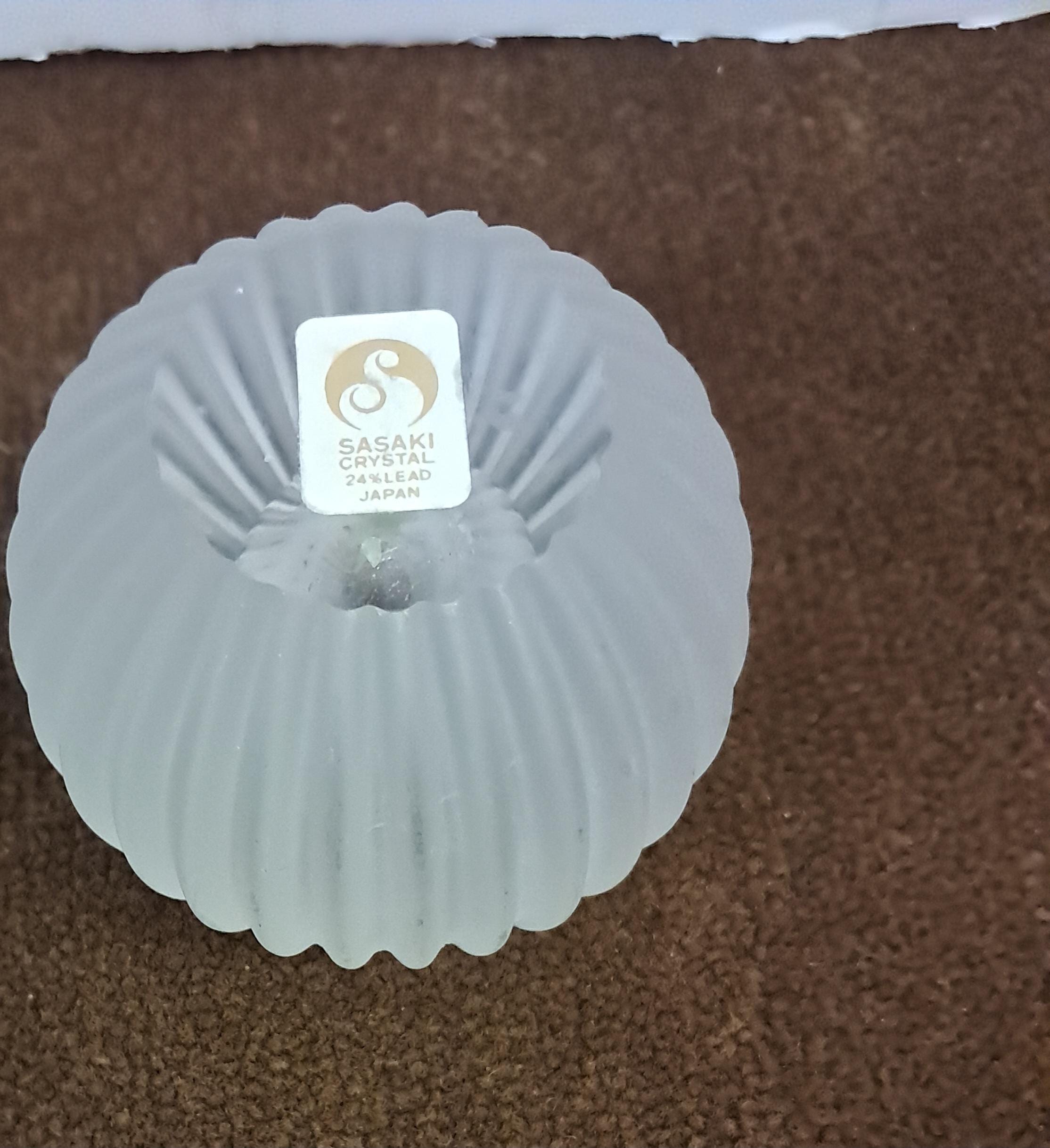 Vintage Pair of SASAKI Crystal 24% Lead Japan Frosted Glass Candle Holders