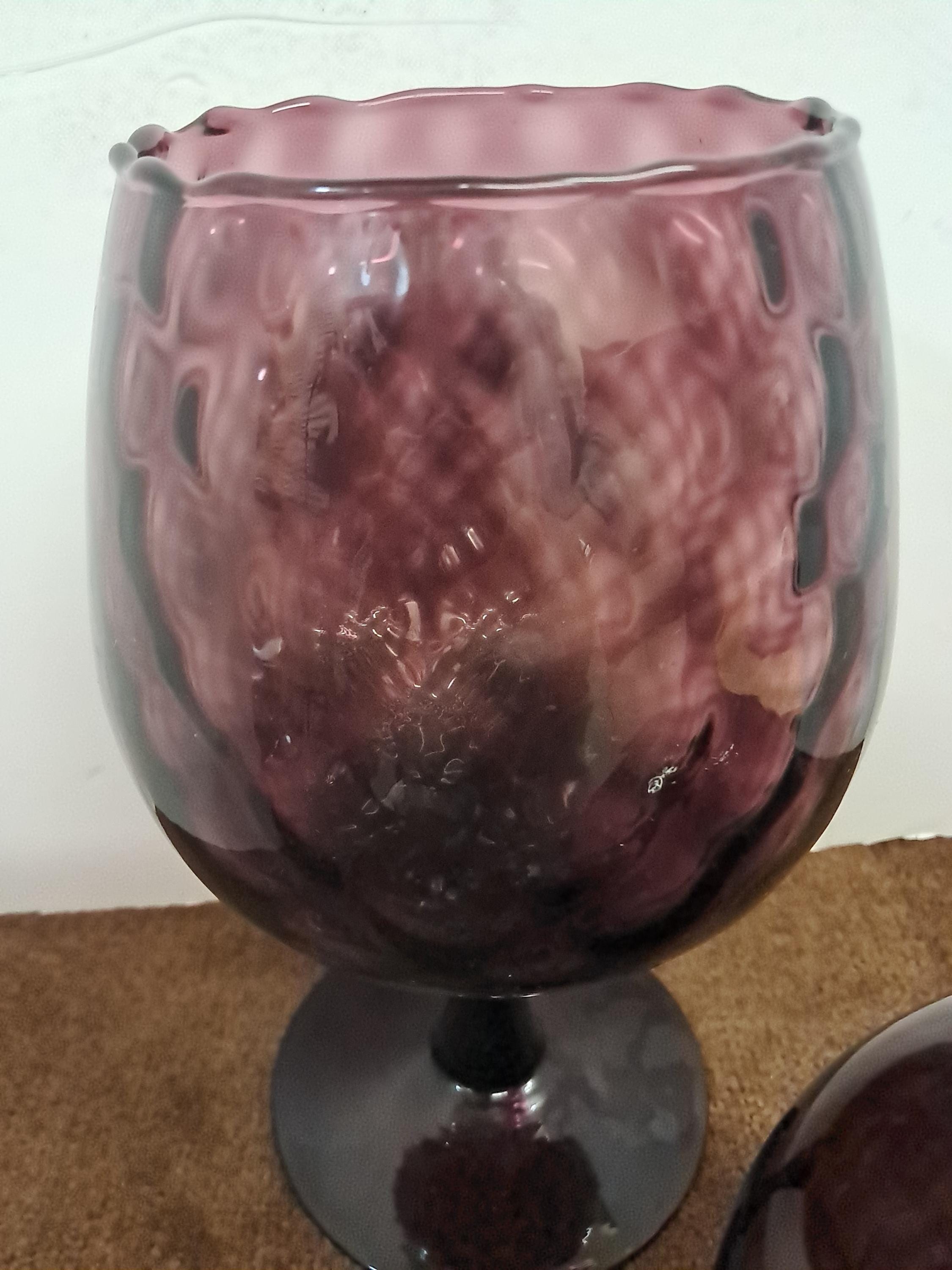 1960s Amber Empoli Optic Glass Large Candle Holder Goblets-