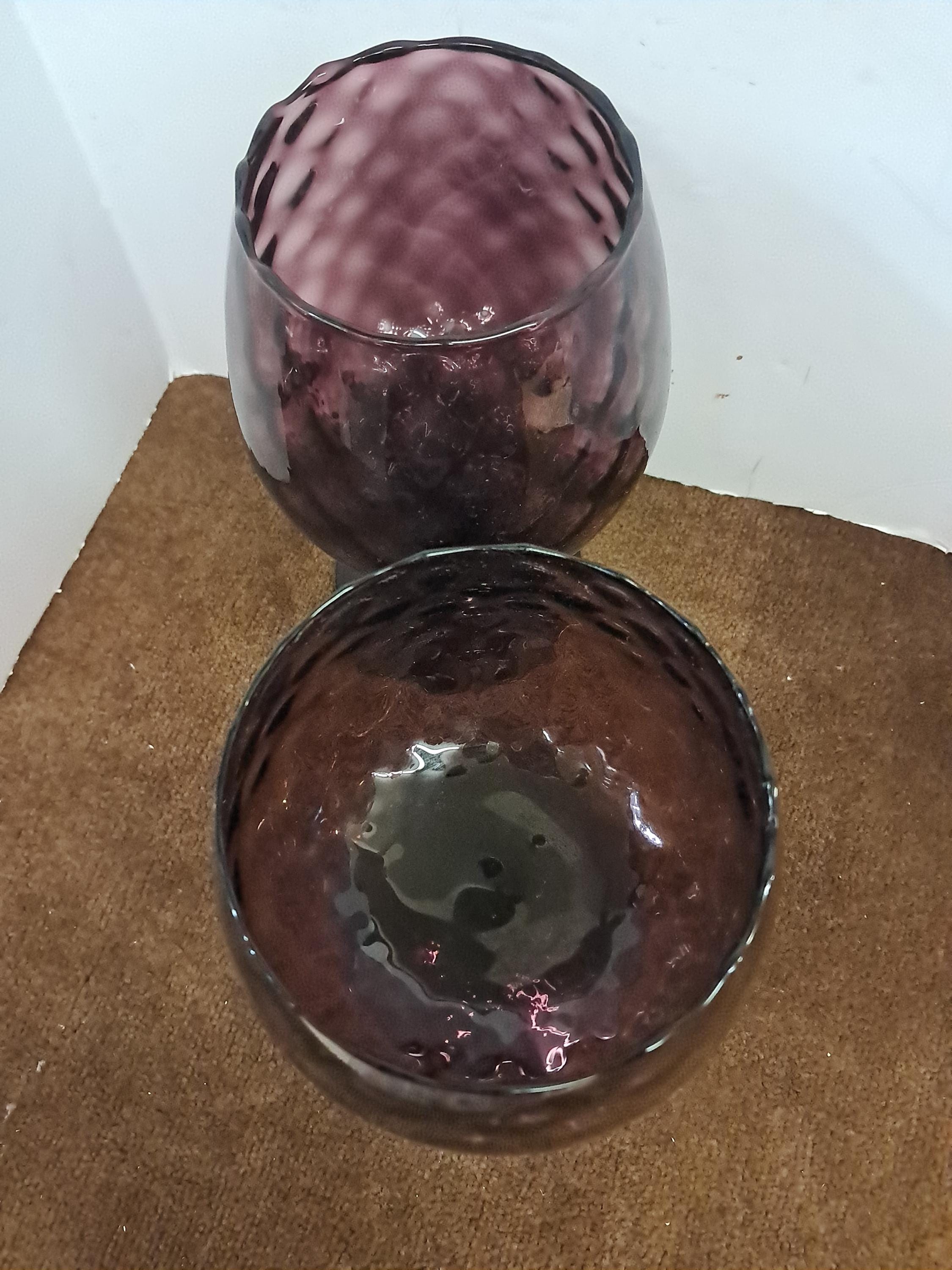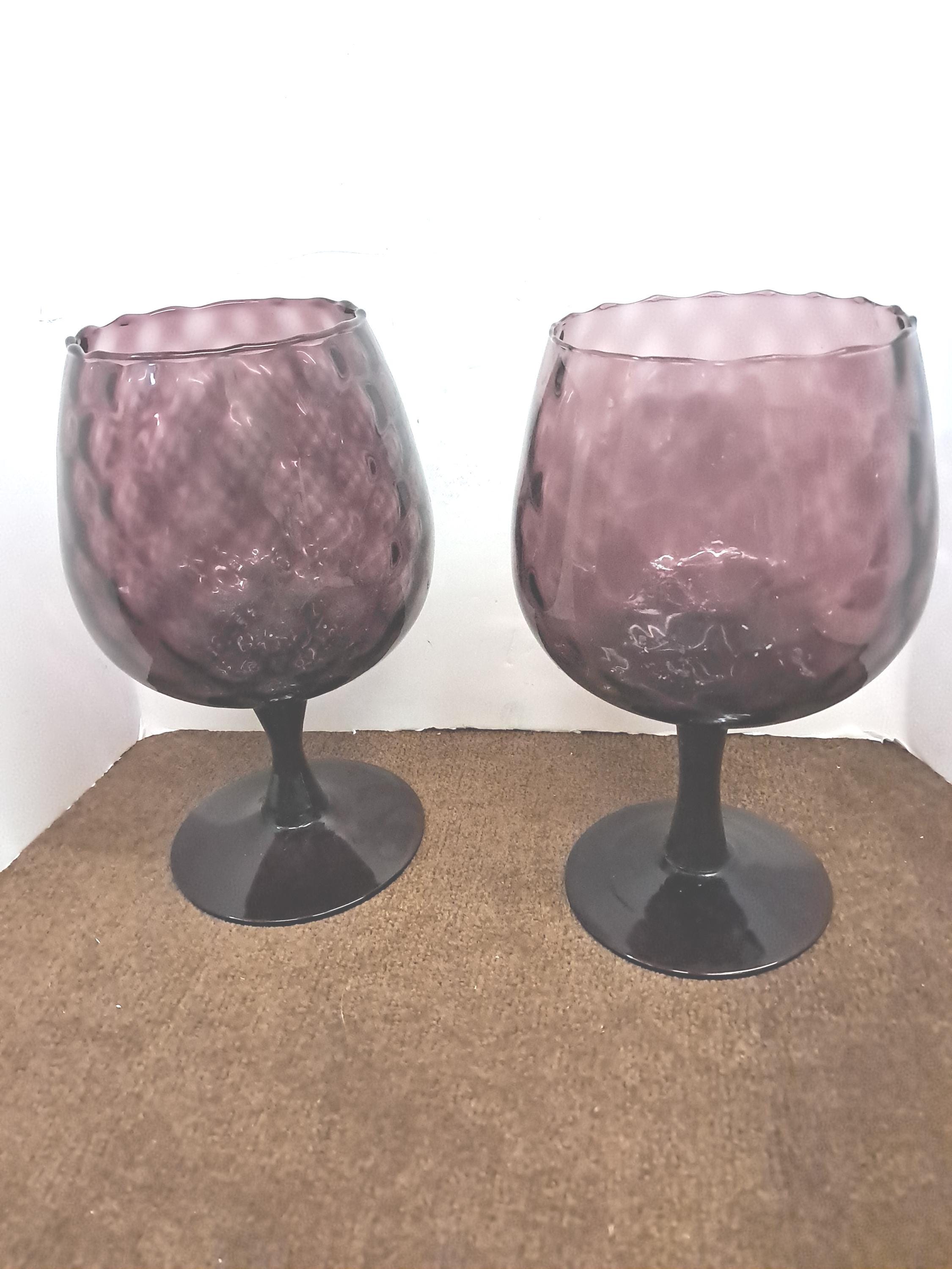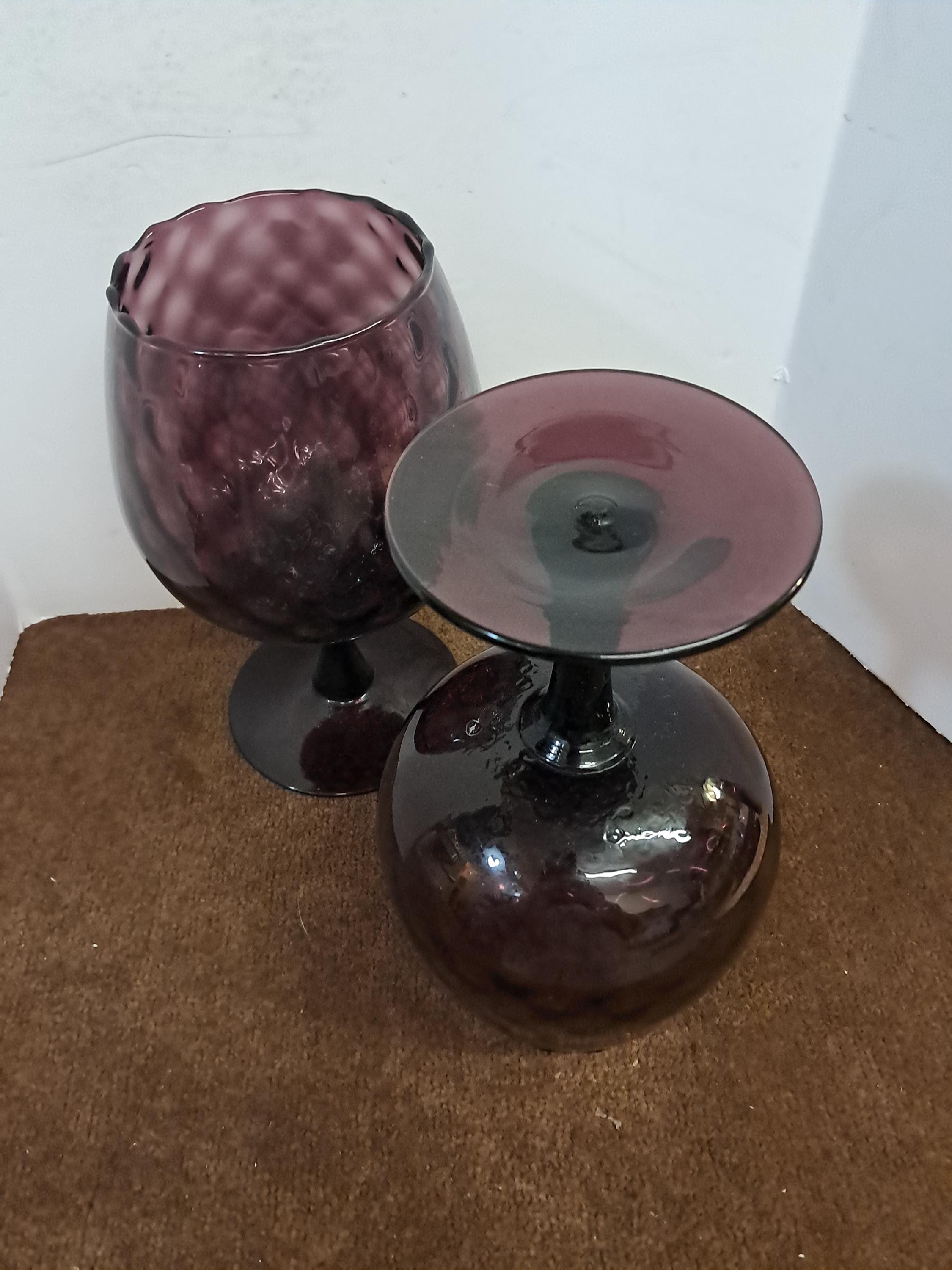 Vintage 1960s Amber Empoli Optic Sniffer Glass / Large Candle Holder / Goblets- Set of 2