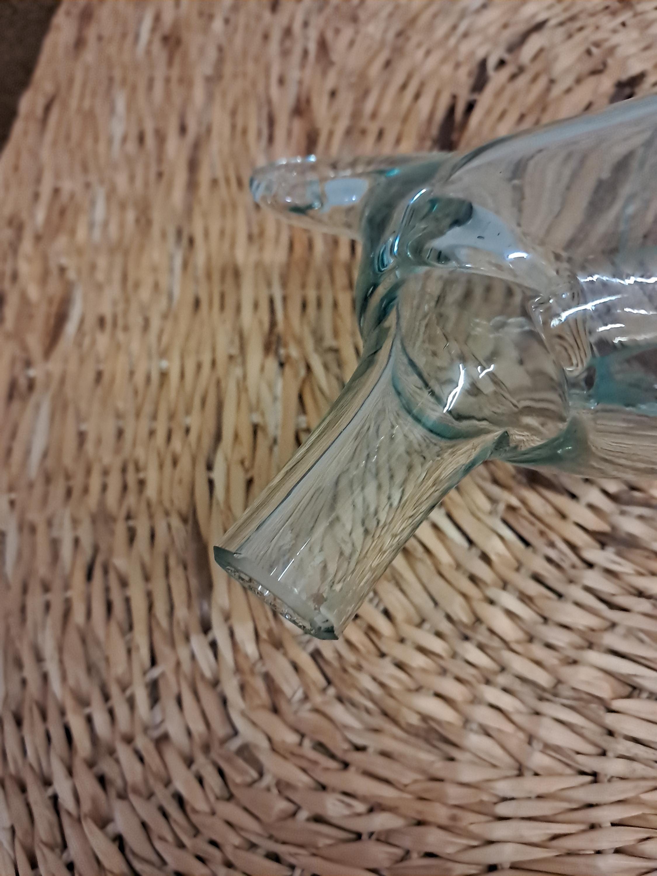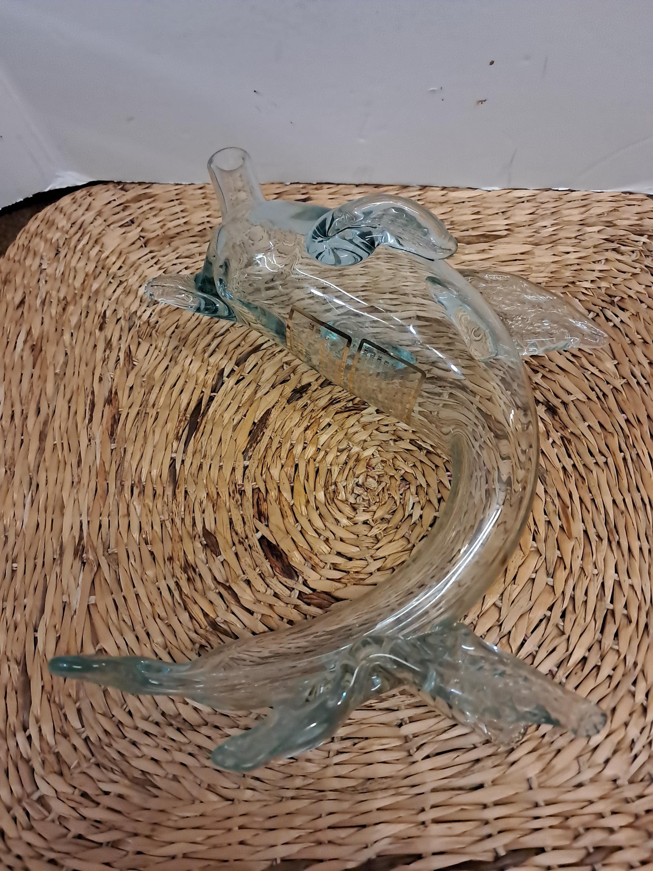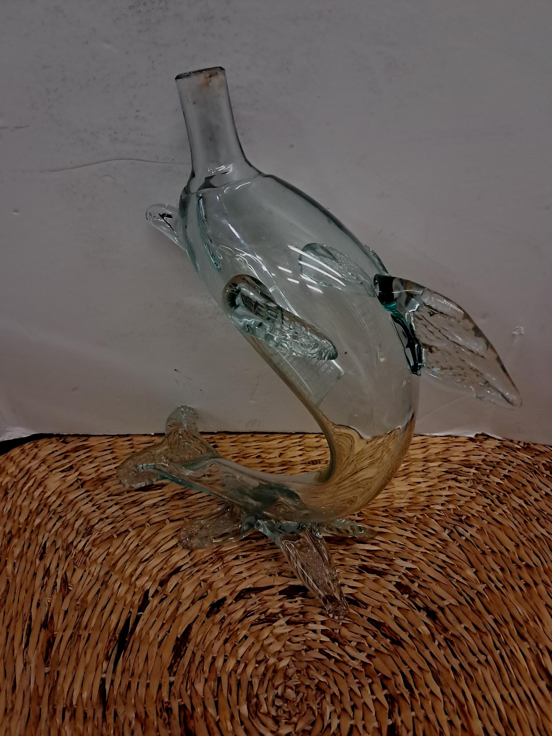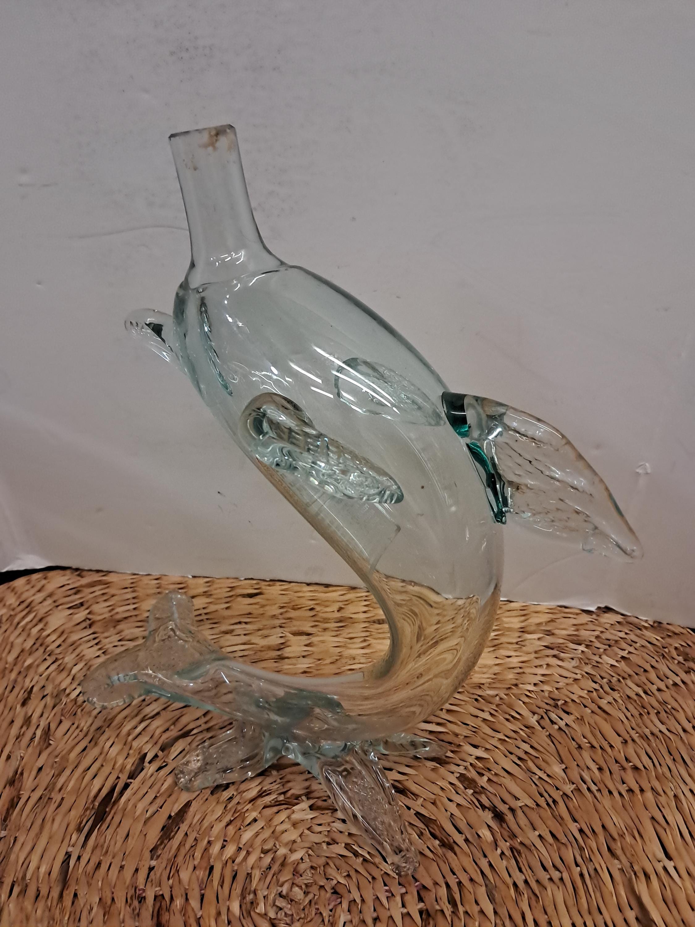 Dolphin shape handmade clear glass wine / whiskey decanter / figural bottle Collectible Rare . it is a very Interesting and a very unique bottle and looks beautifully ,may need some inside cleaning~ Empty ~ Great Condition ~See Pics~~No markings ~ No dents ~ No scratches ~ No chips ~