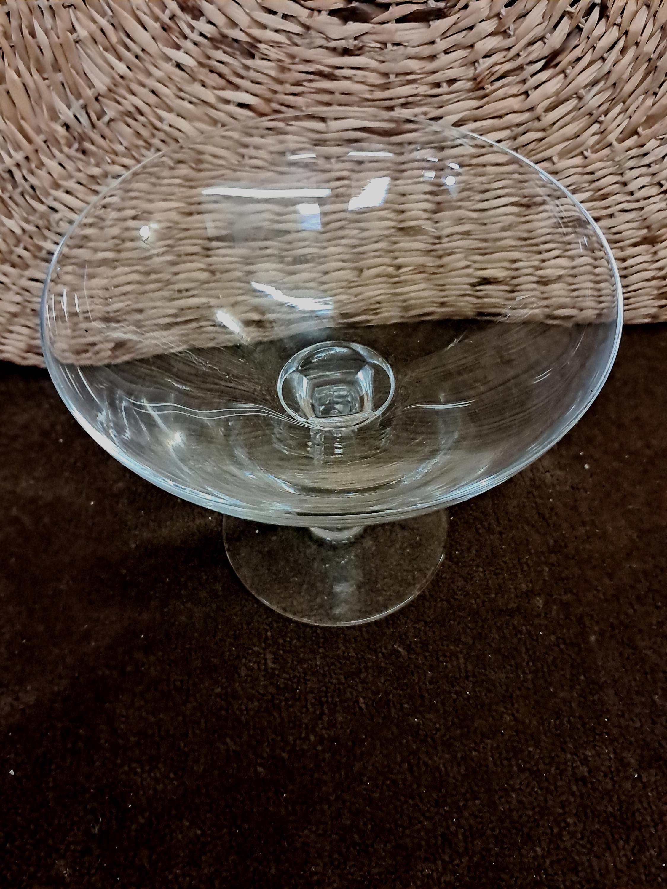 Footed Glass Bowl6.5" wide x 5.75" tall x 4" baseExcellent Condition Beautifully Made but No Marks or Etchings as Who made itElegant Style and footSnow Shell Glasses ,Retro Art DecorationTransparent.