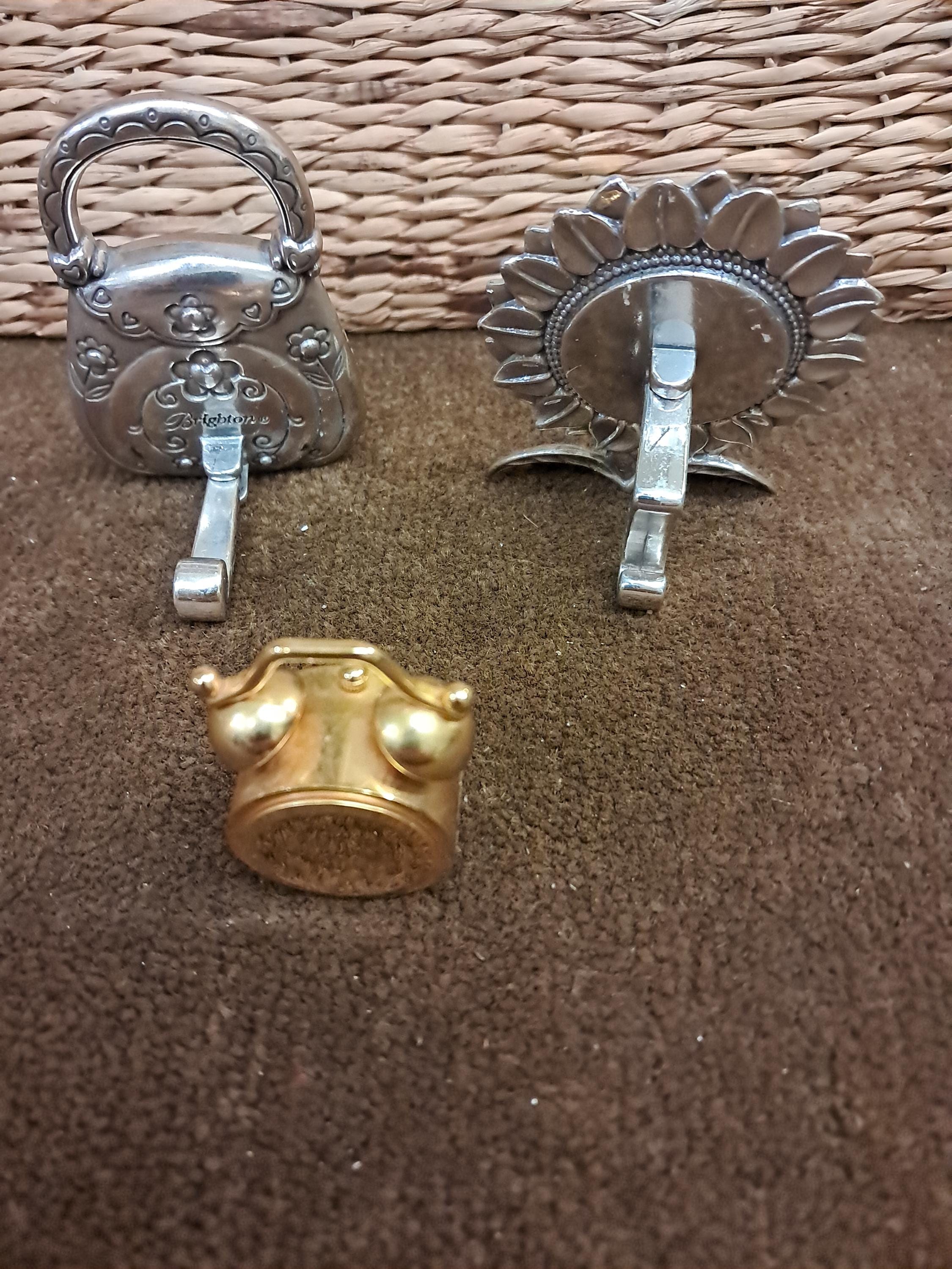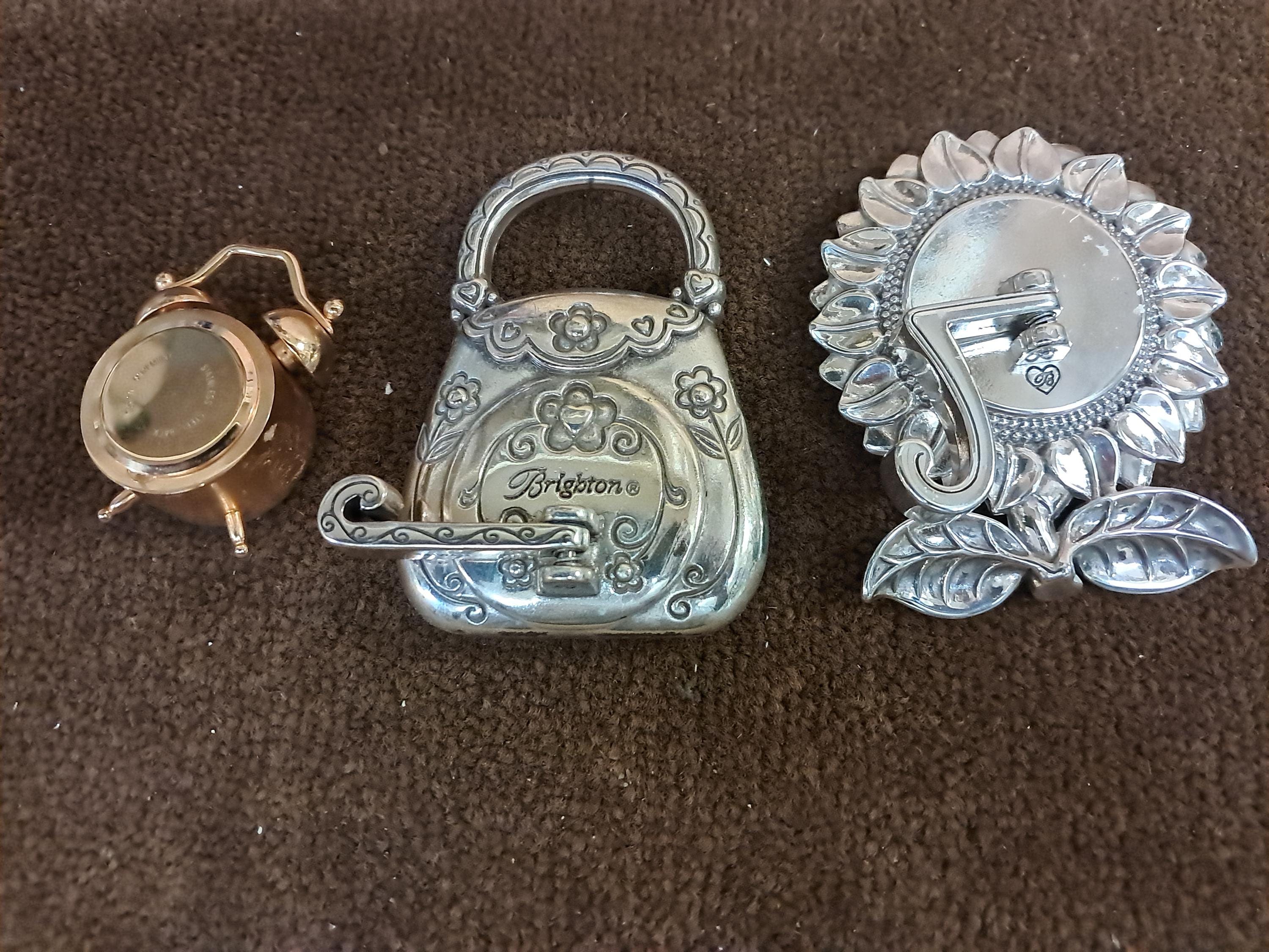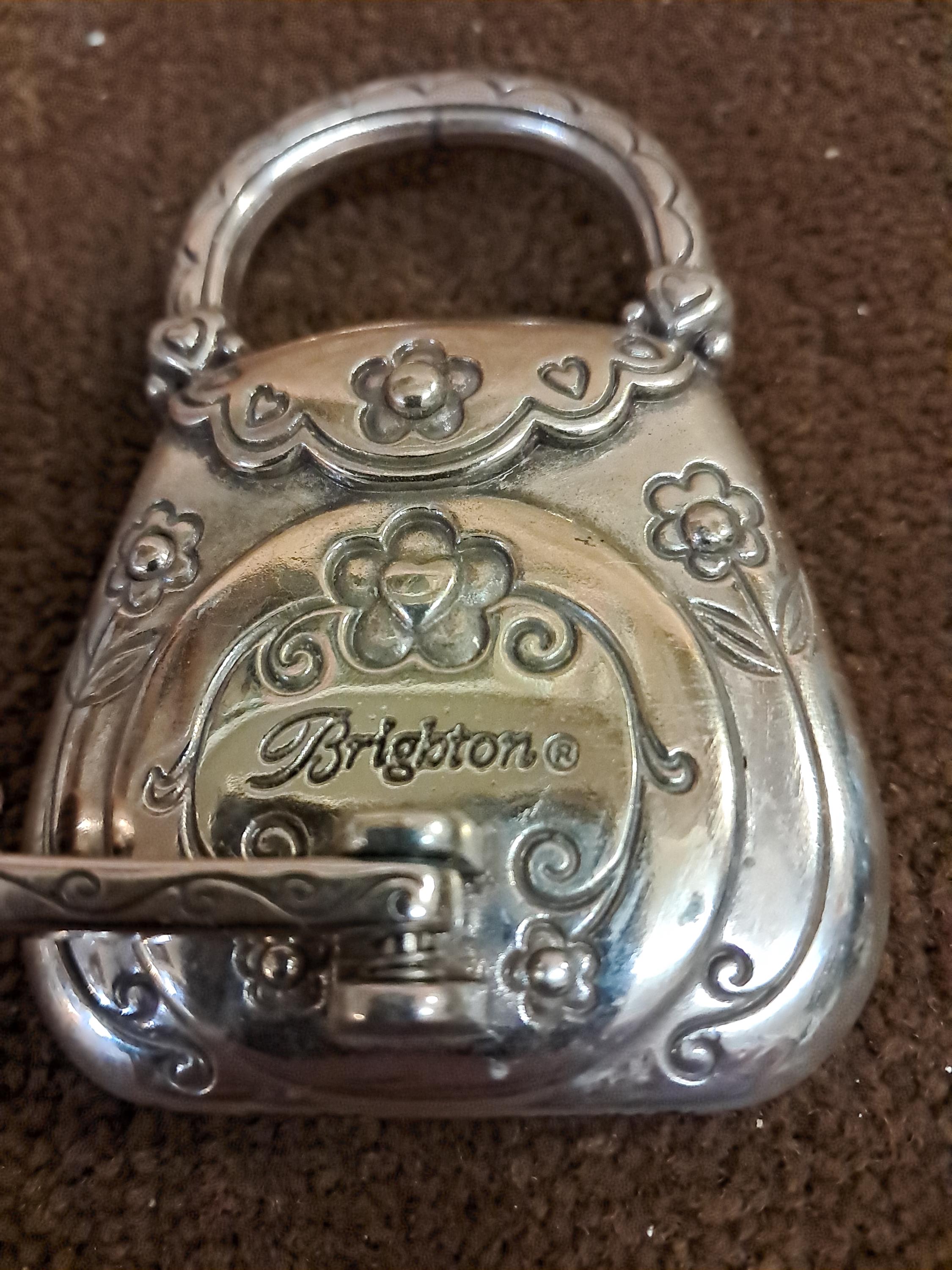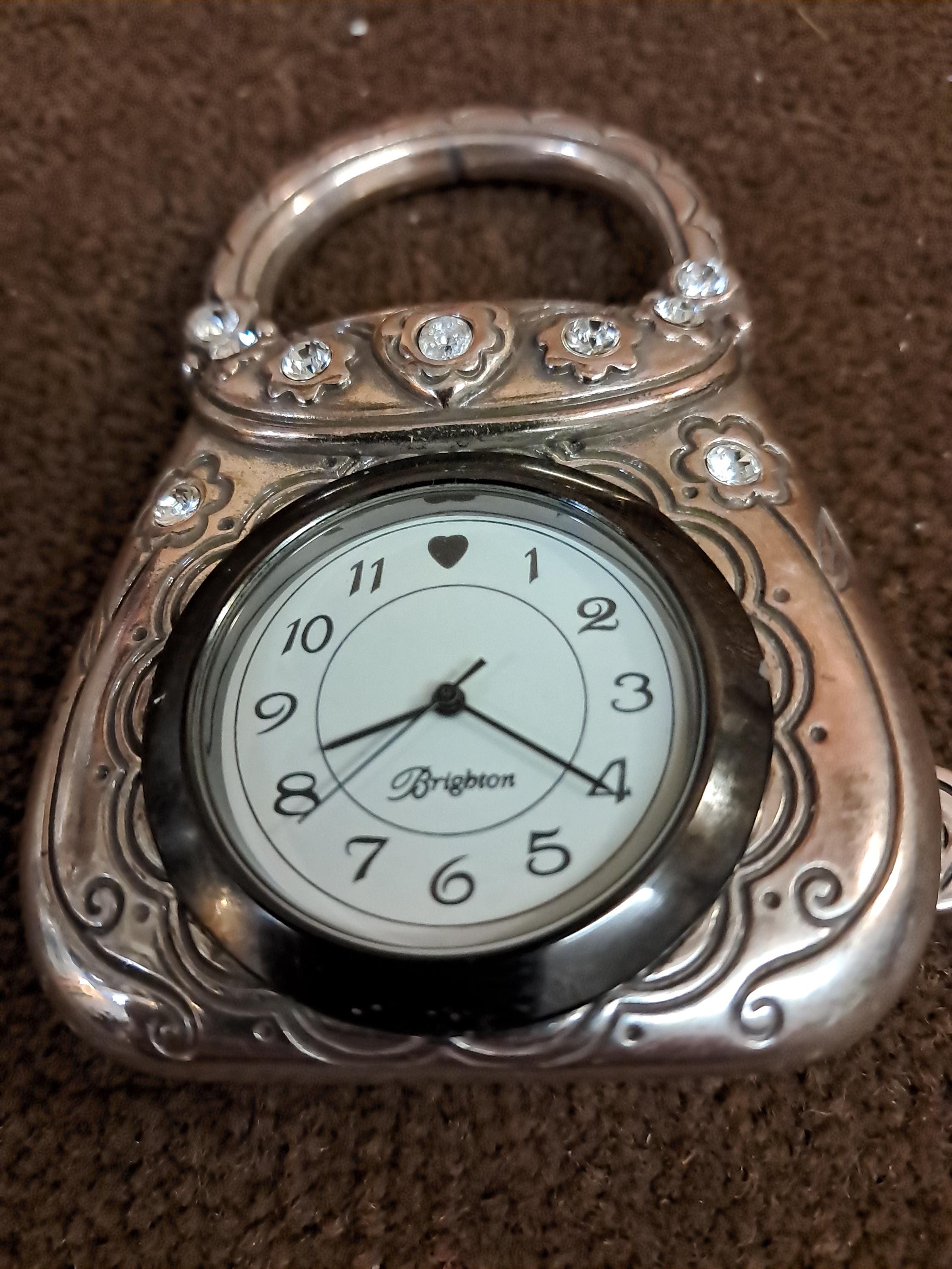 VINTAGE BRIGHTON Silver Tone Purse Mini Clock Rhinestone Accents