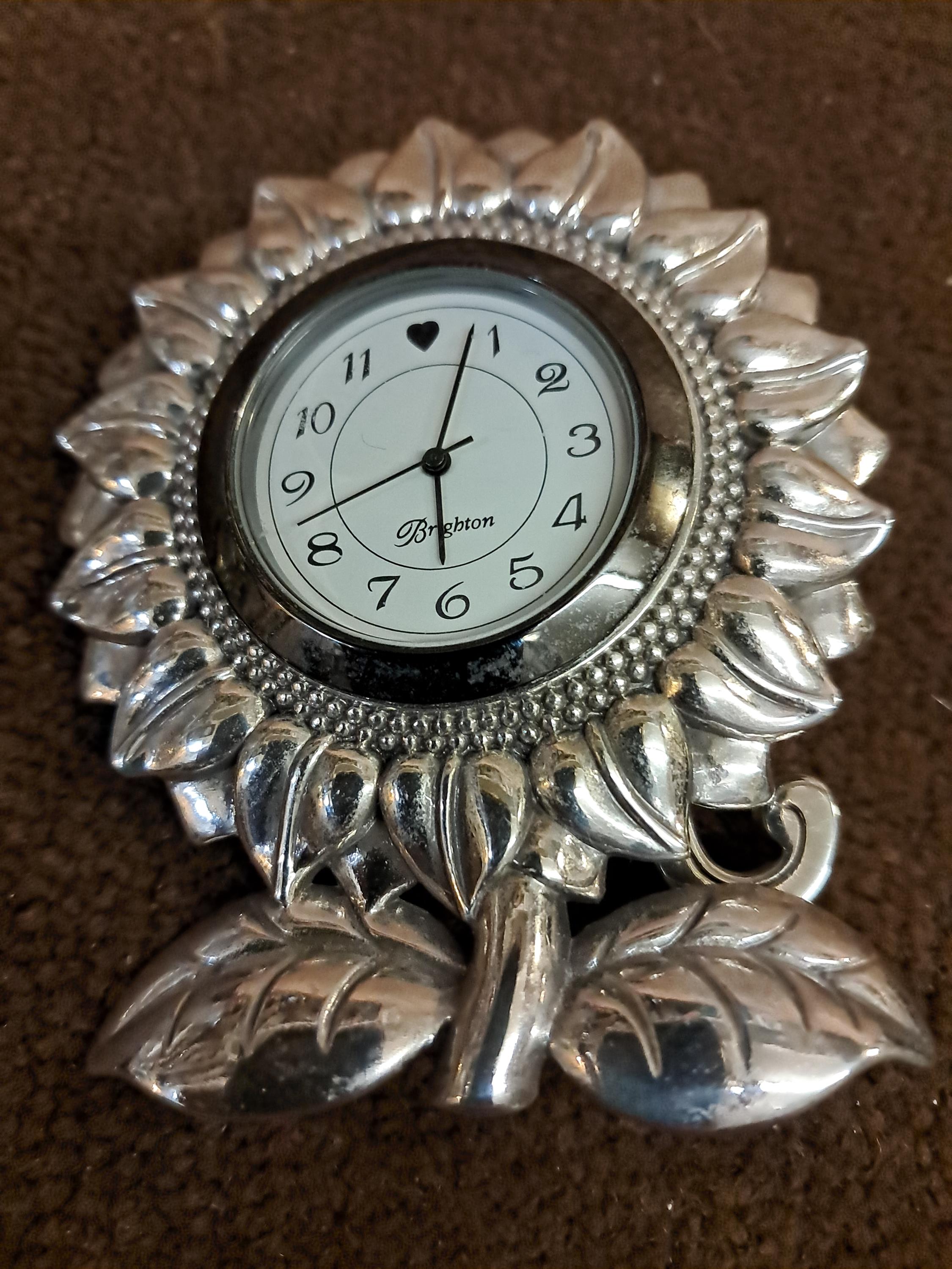 VINTAGE BRIGHTON Silver Leaf Decor Mini Clock