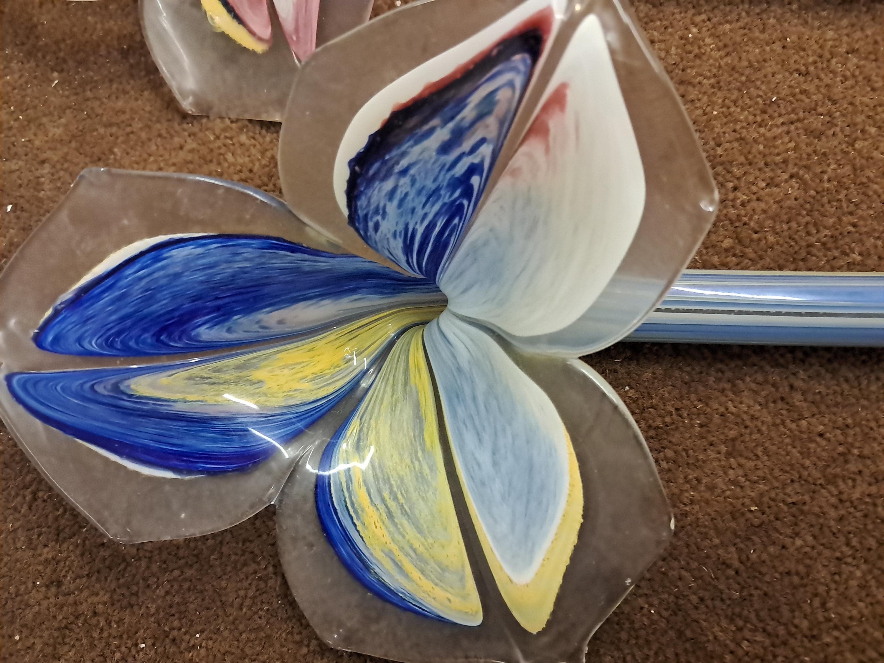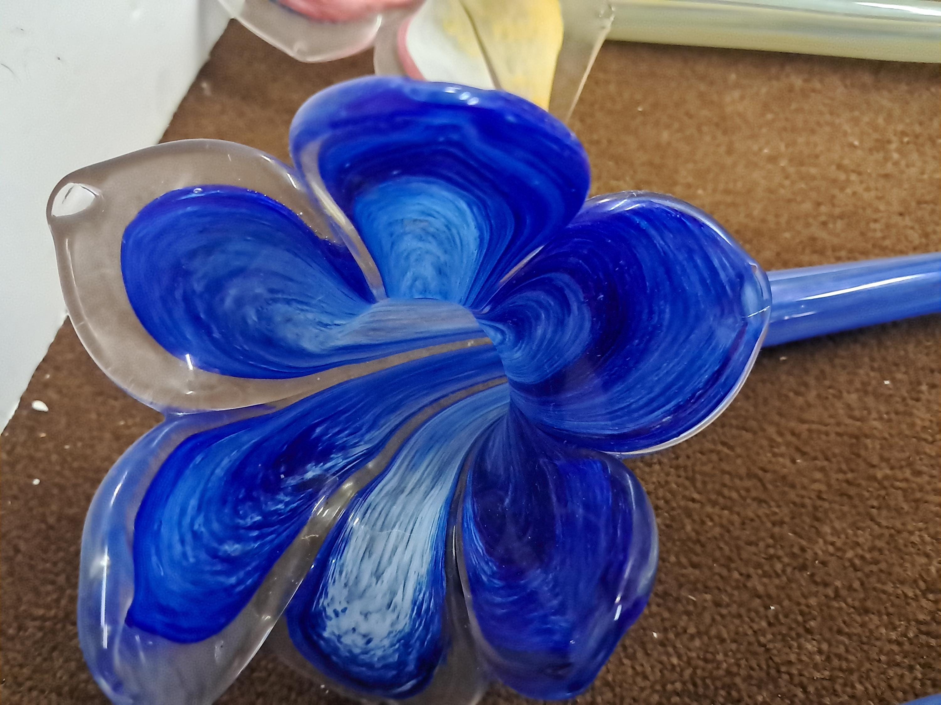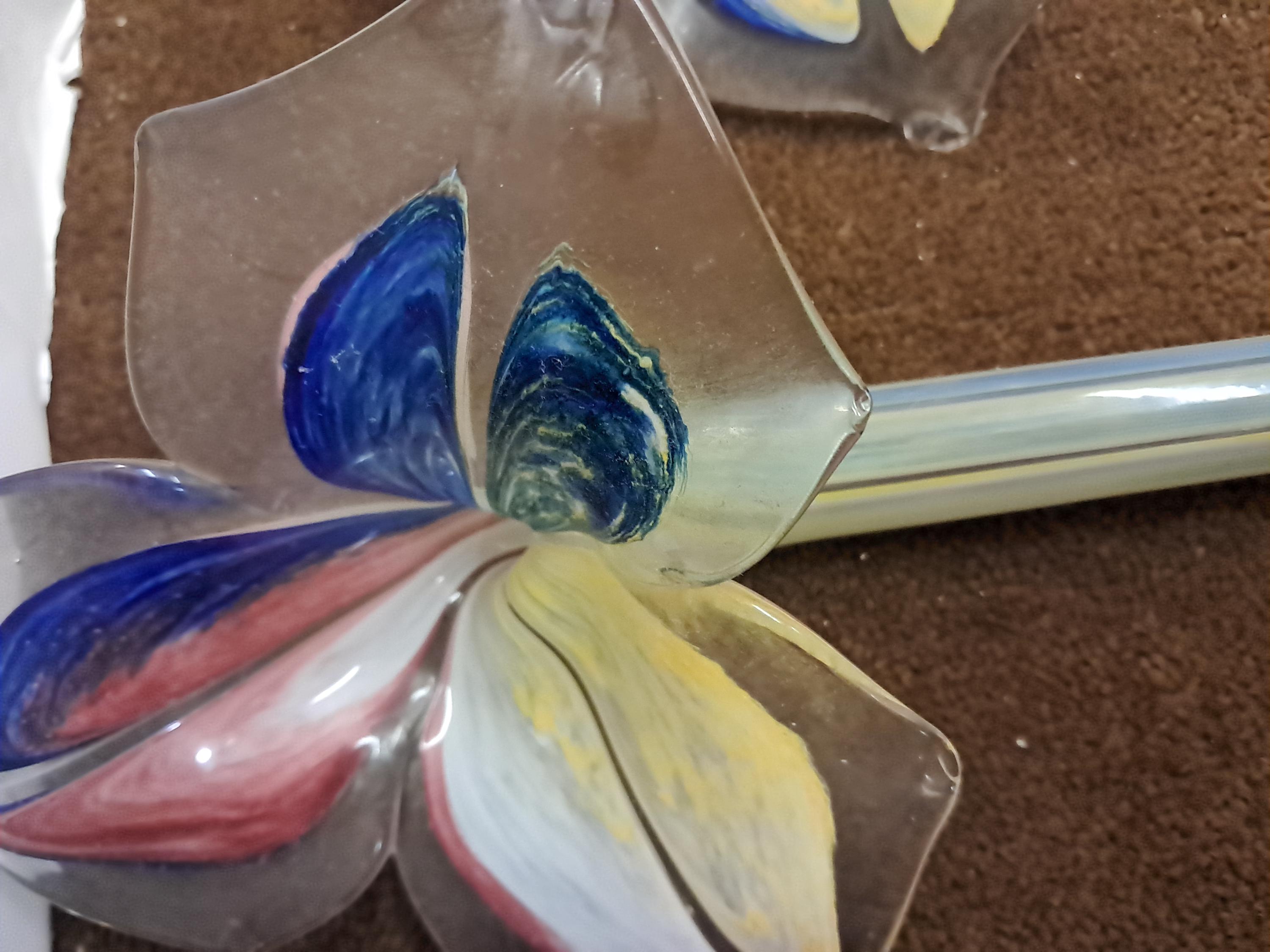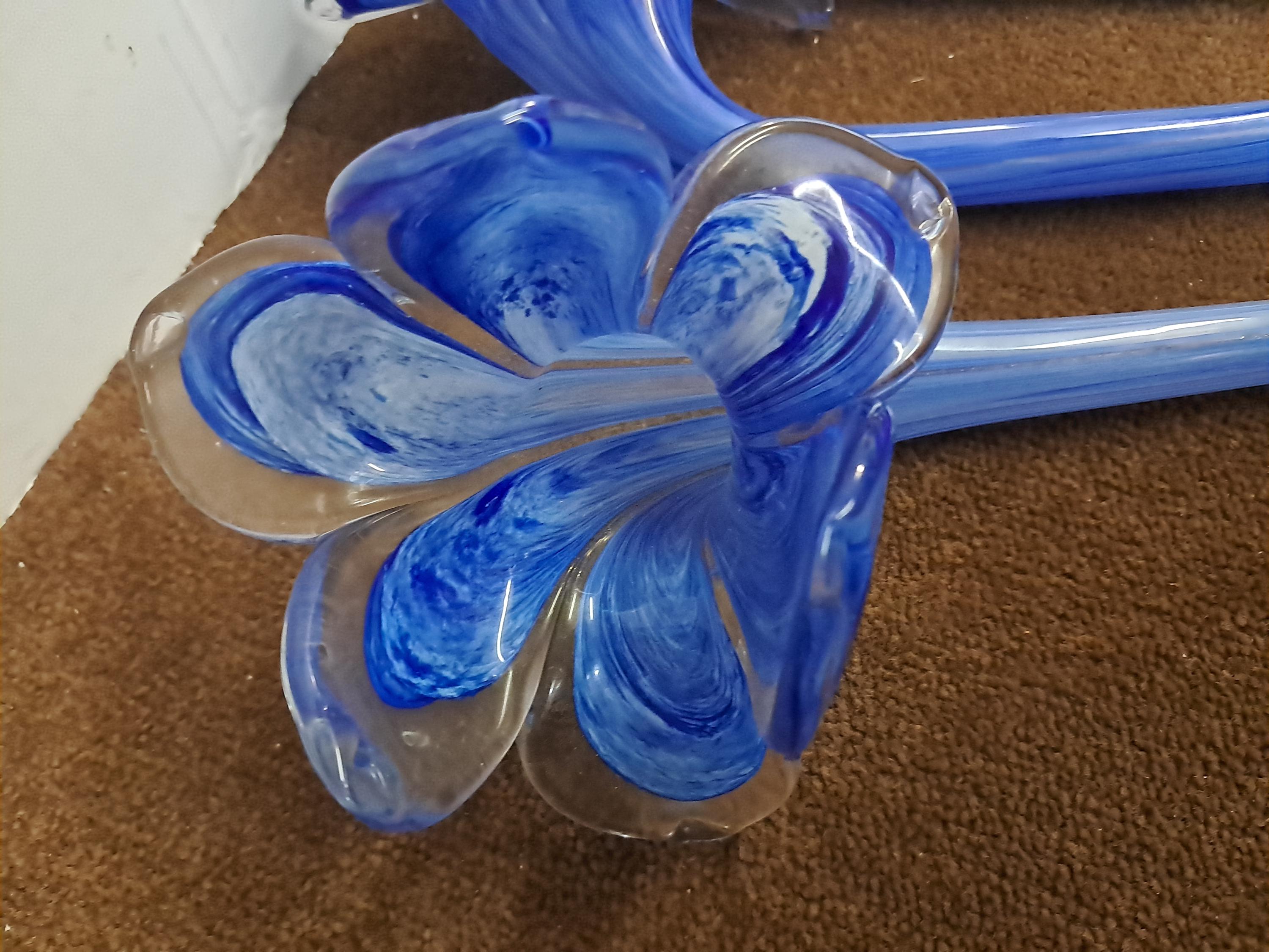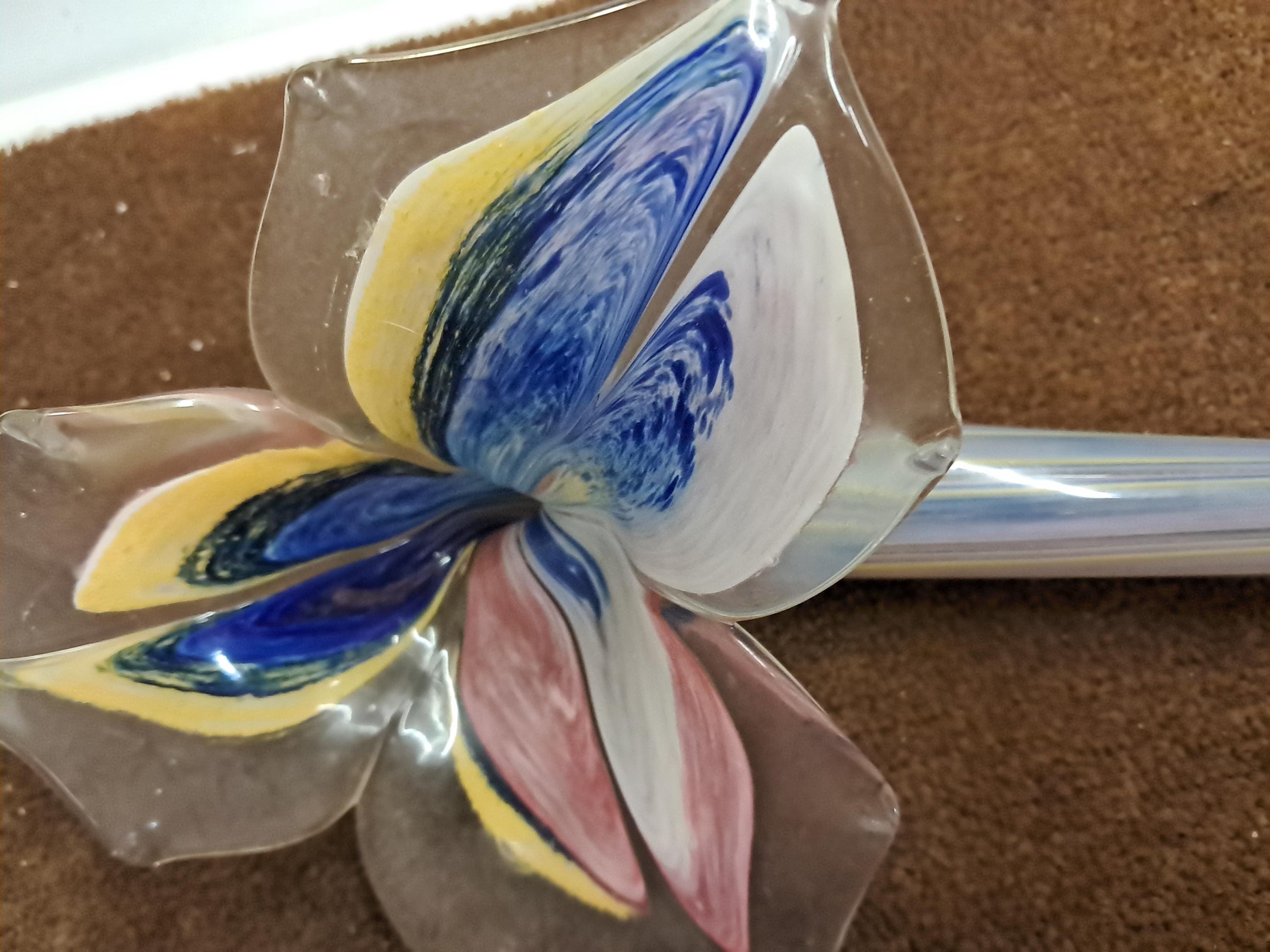 Murano Style Hand Blown Glass Lily FlowersVintage Murano Style 6 Art Glass 20 " Long Stem Flowers All 6 are in Excellent Condition with no damagesEach Measures At 20 " long and 4 " wide