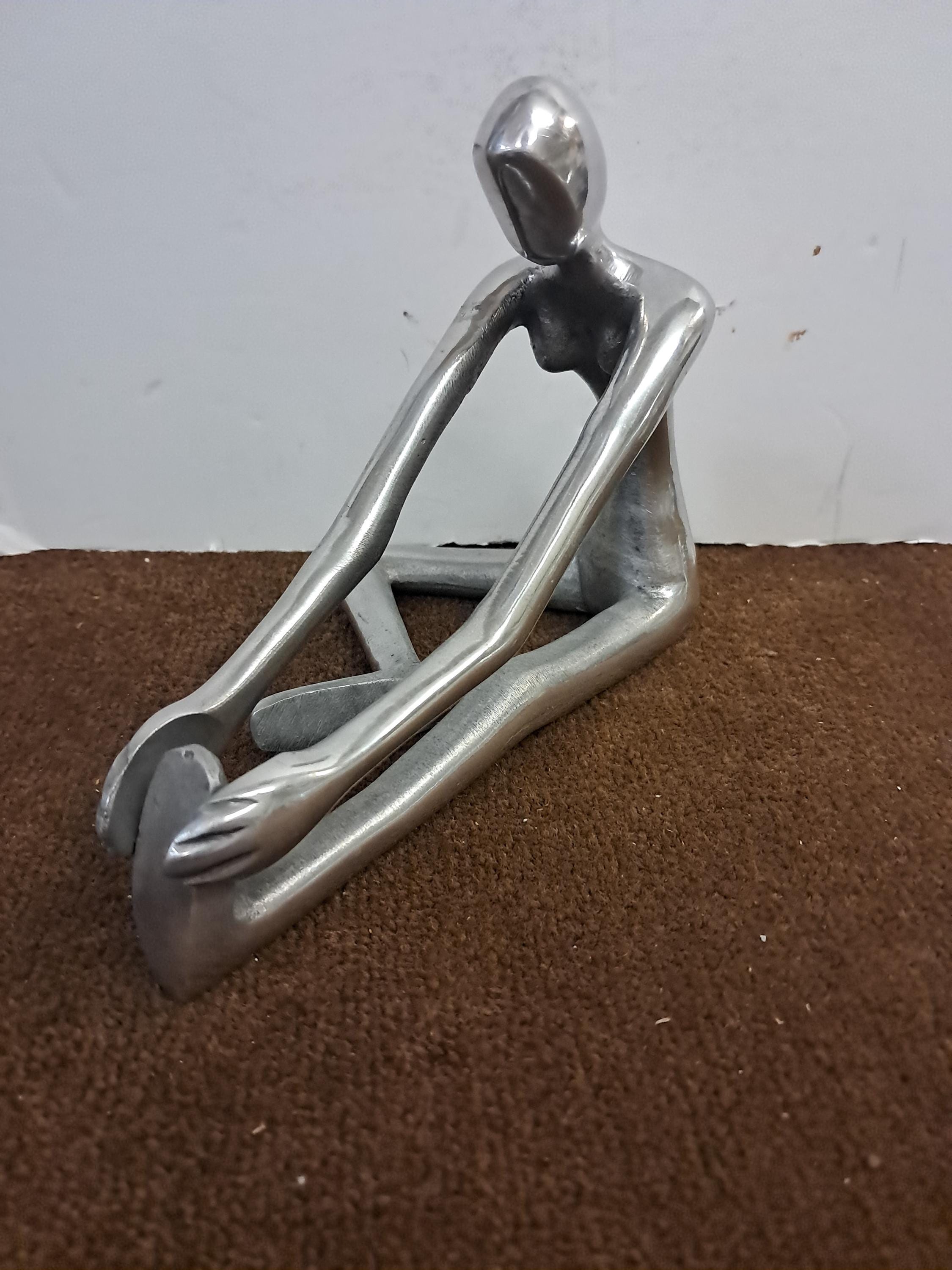Modernist Polished Steel Yoga Figurines