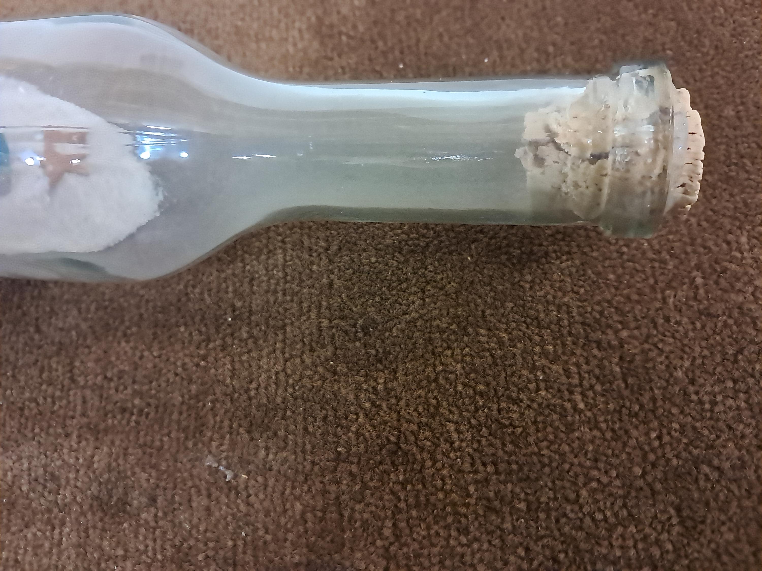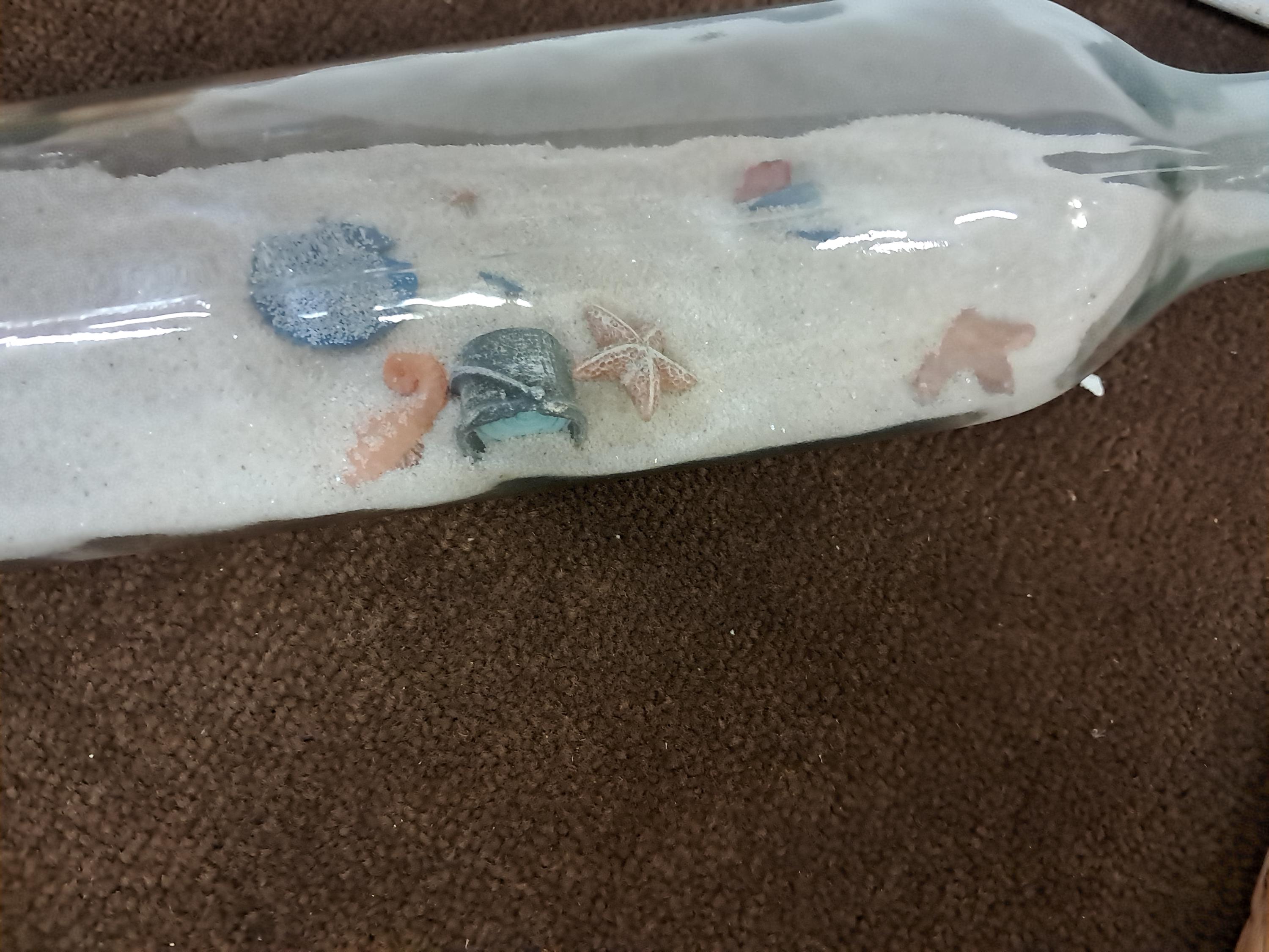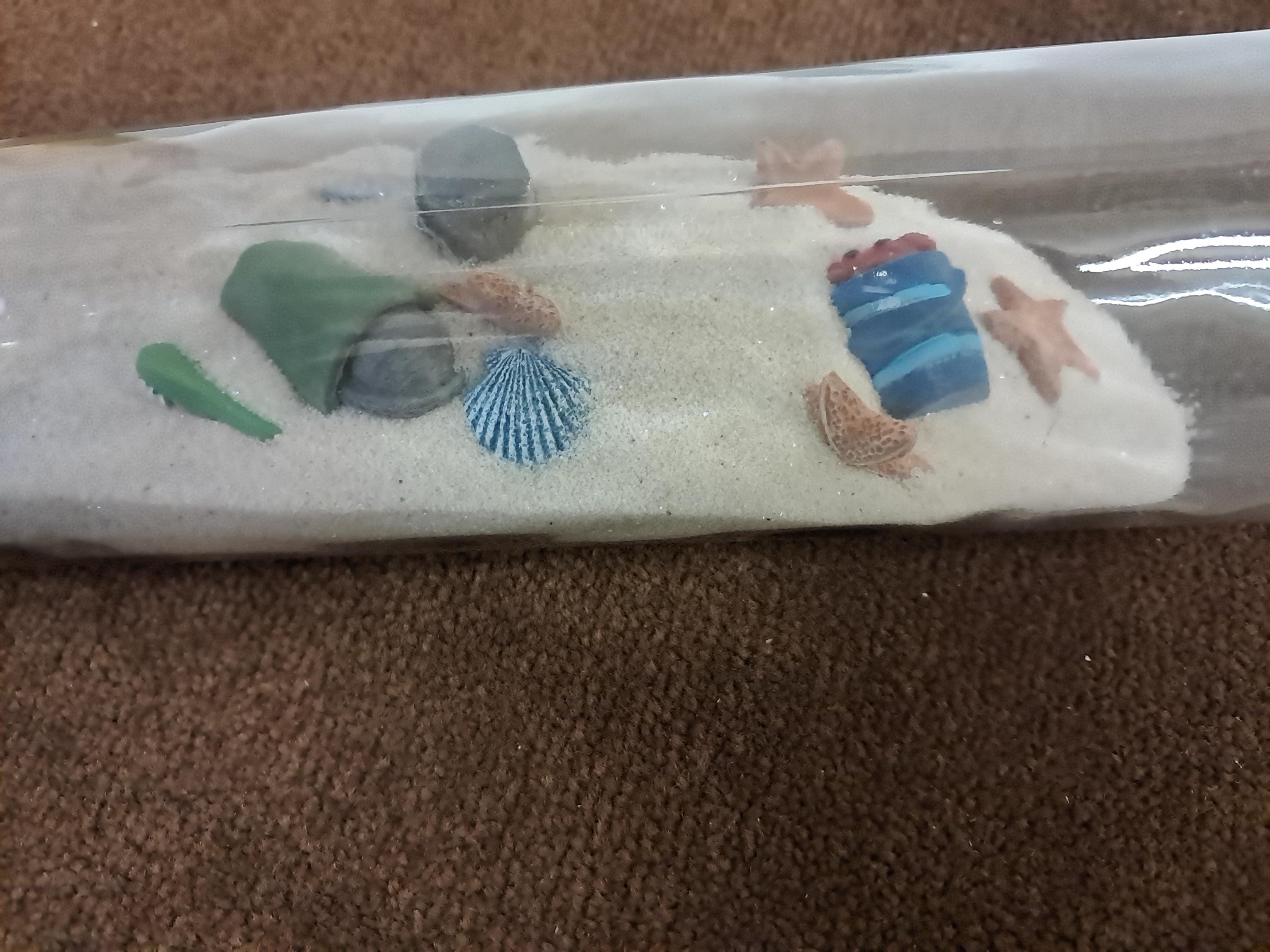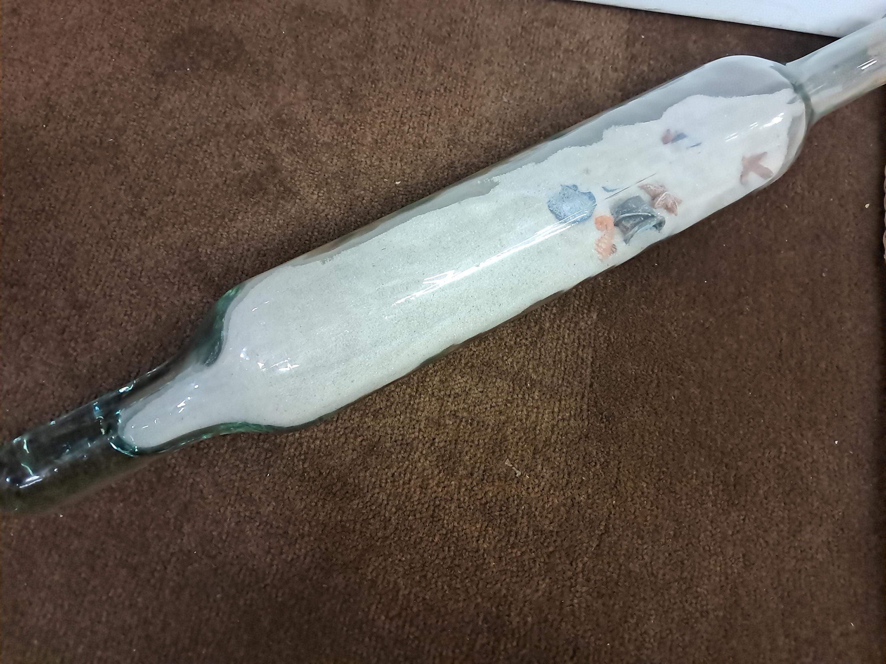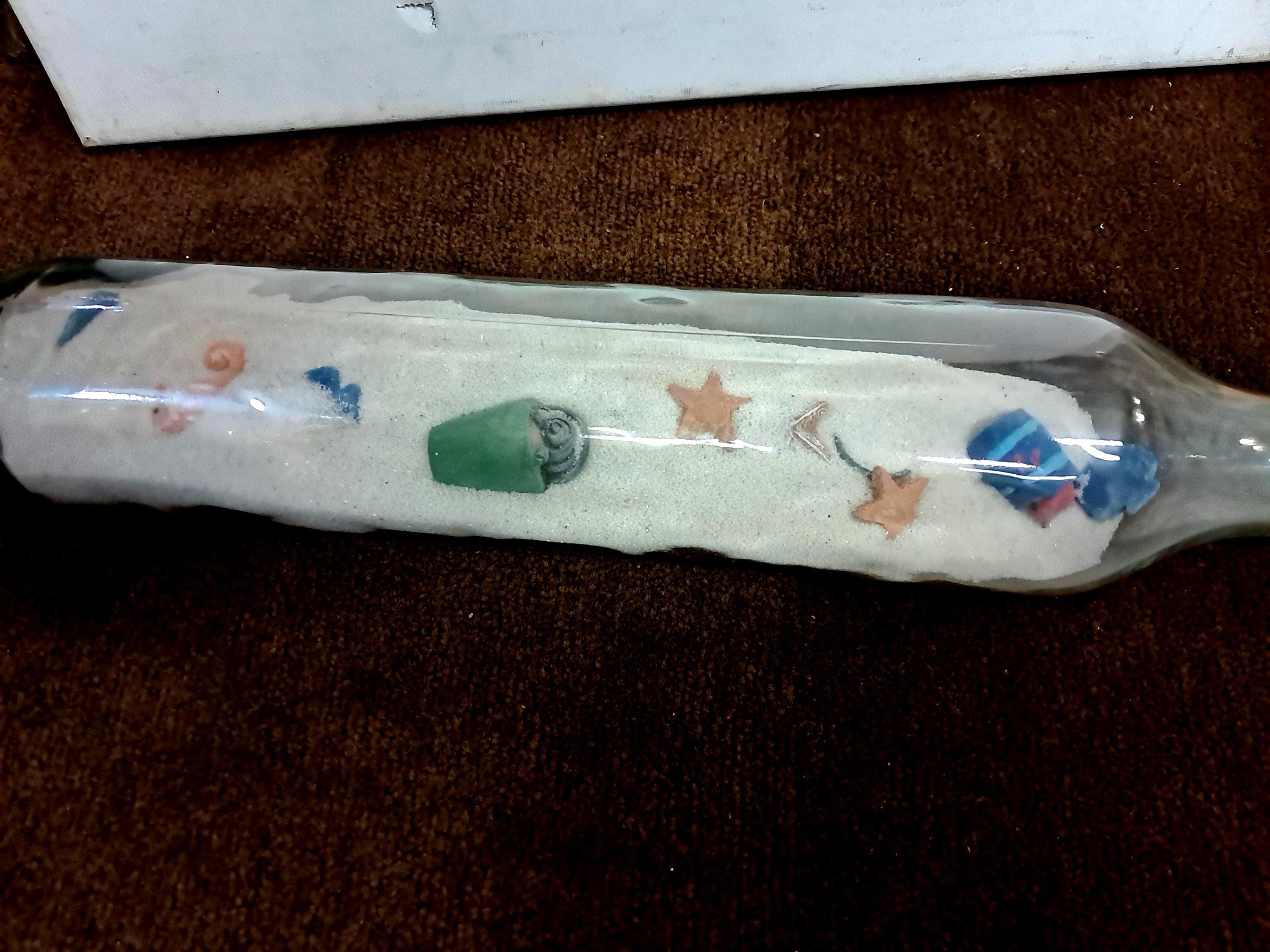 An unusual looking Handmade Bottle filled with Beach Sand and various Sea shells