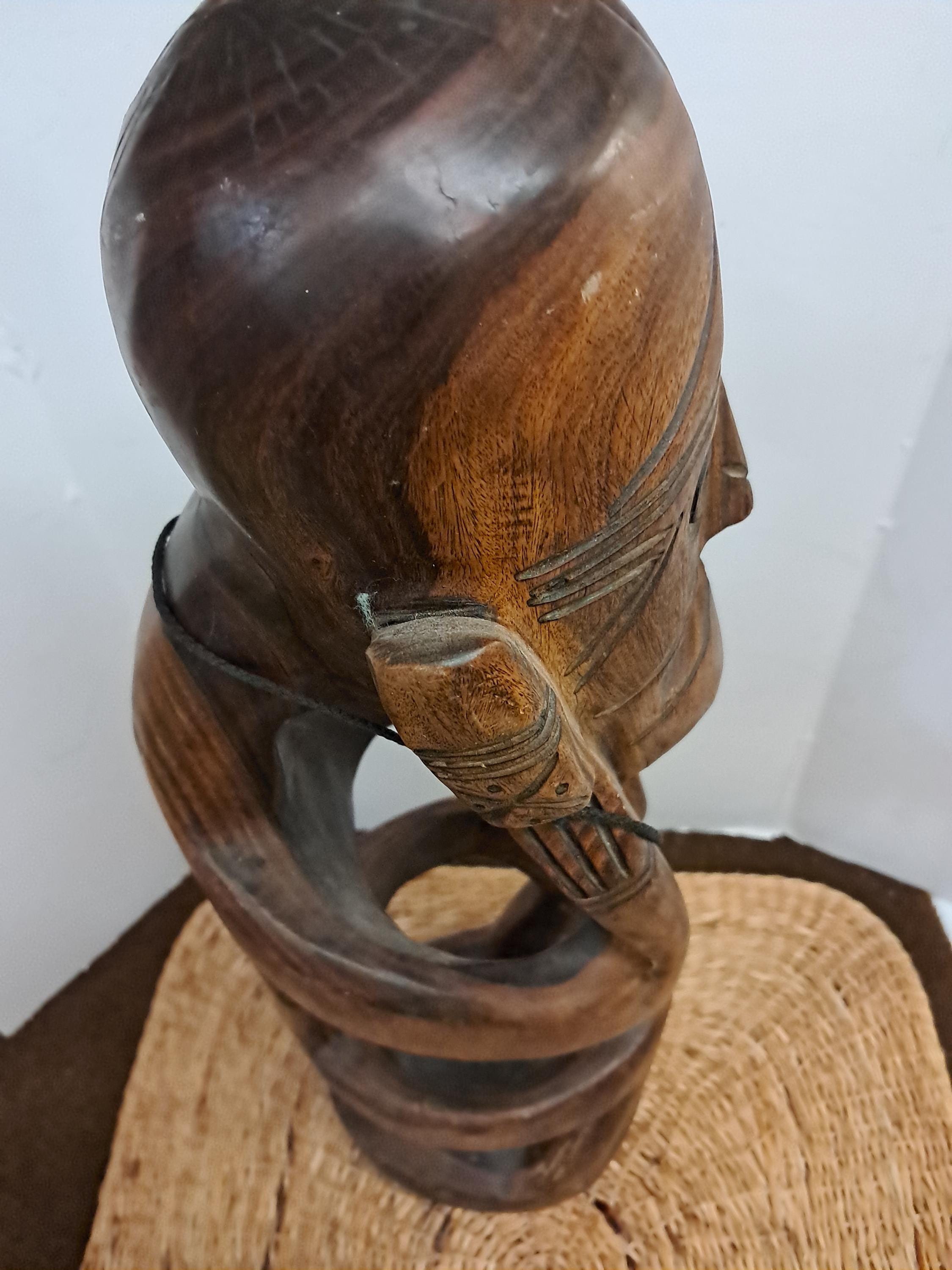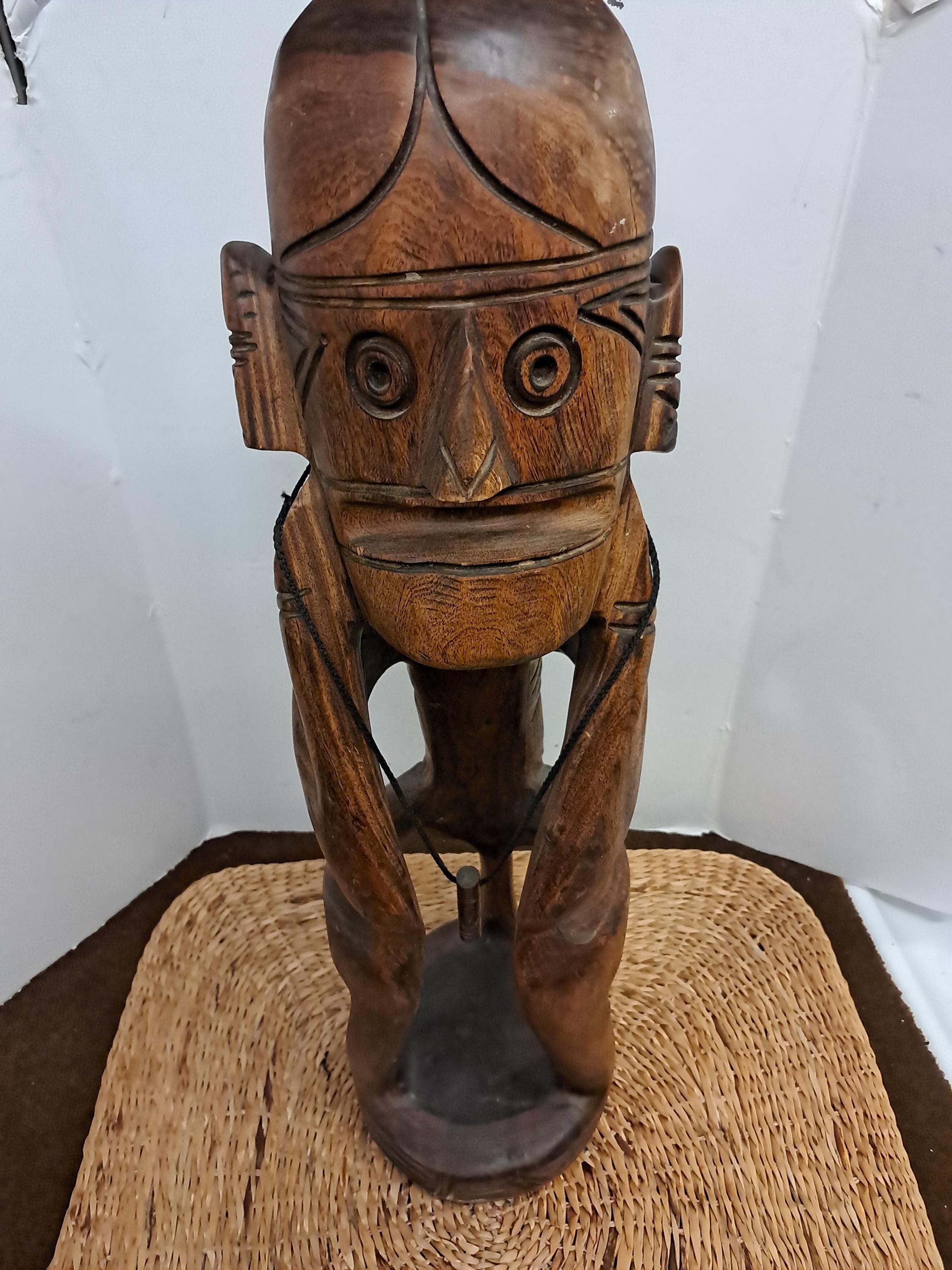 The Maori Teko Teko Statue is a traditional ancestral figure from New Zealand, dating back to the 1960s. This intricately designed piece showcases the craftsmanship and cultural significance of the Pacific Islands. The statue is known for its spiritual beliefs and artistic traditions, making it a valuable collectible item for those interested in cultural artifacts and ethnic art.