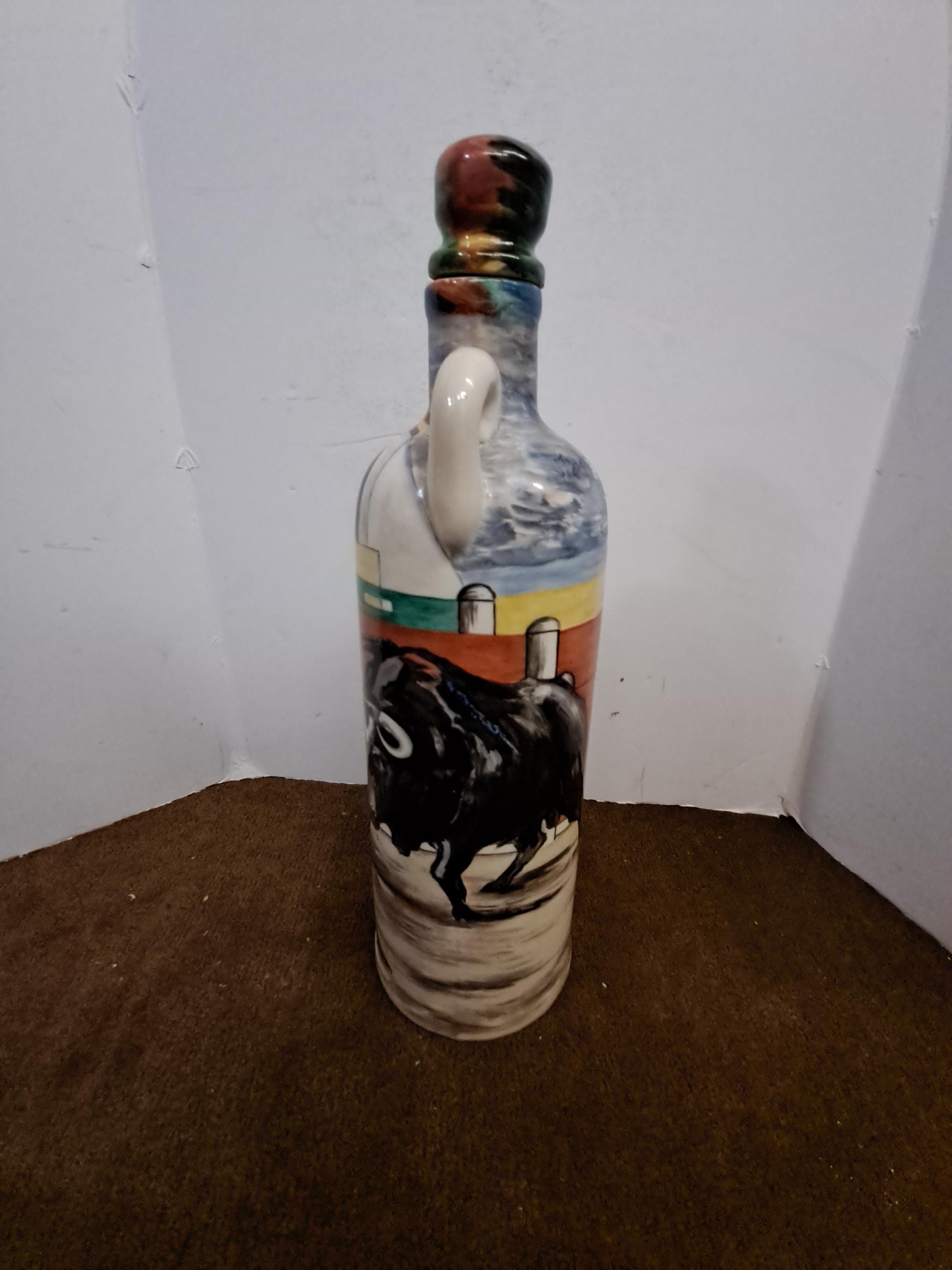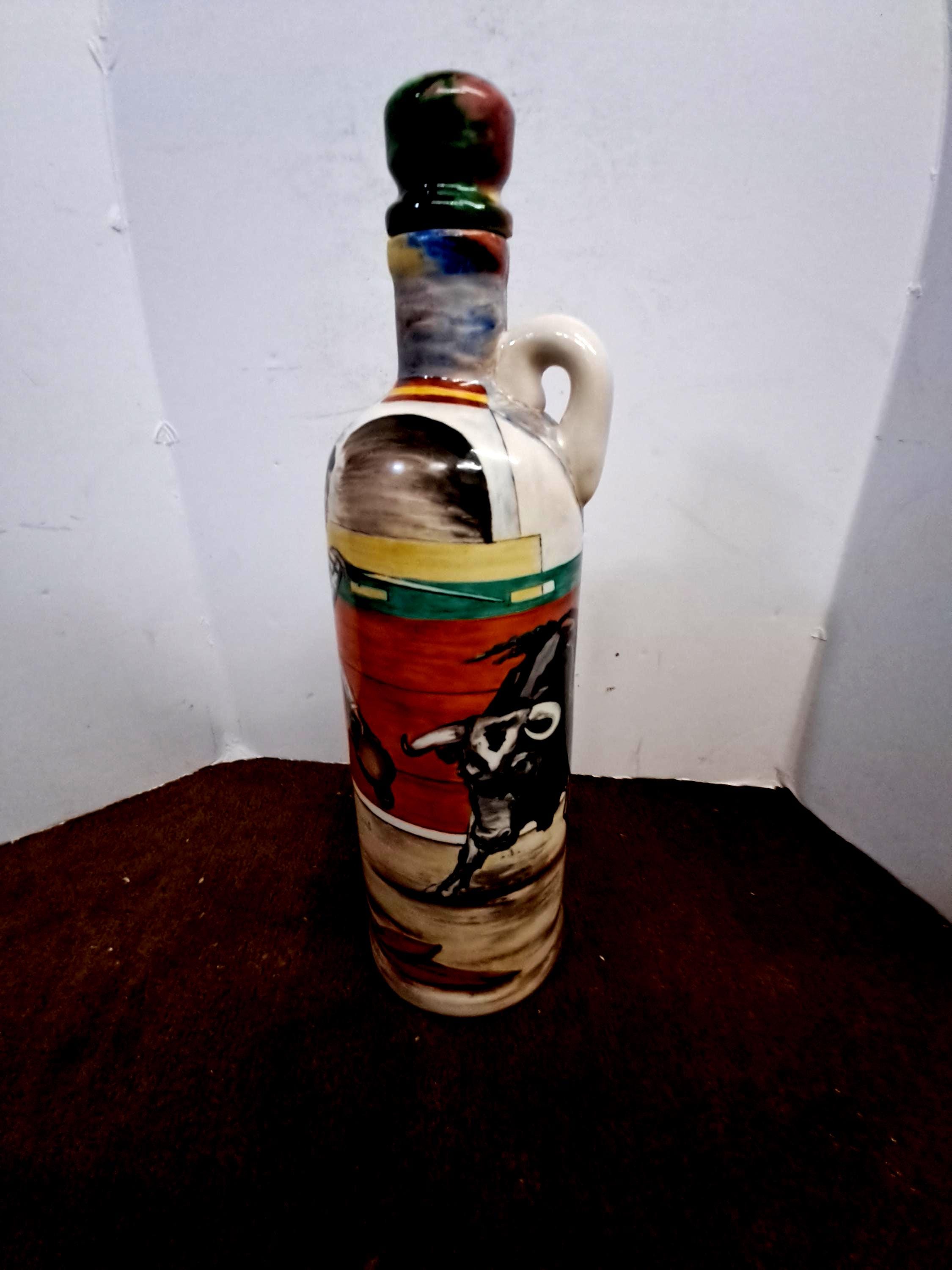 SUREDA Spain Hand painted Matador & Bull Cognac Bottle ,