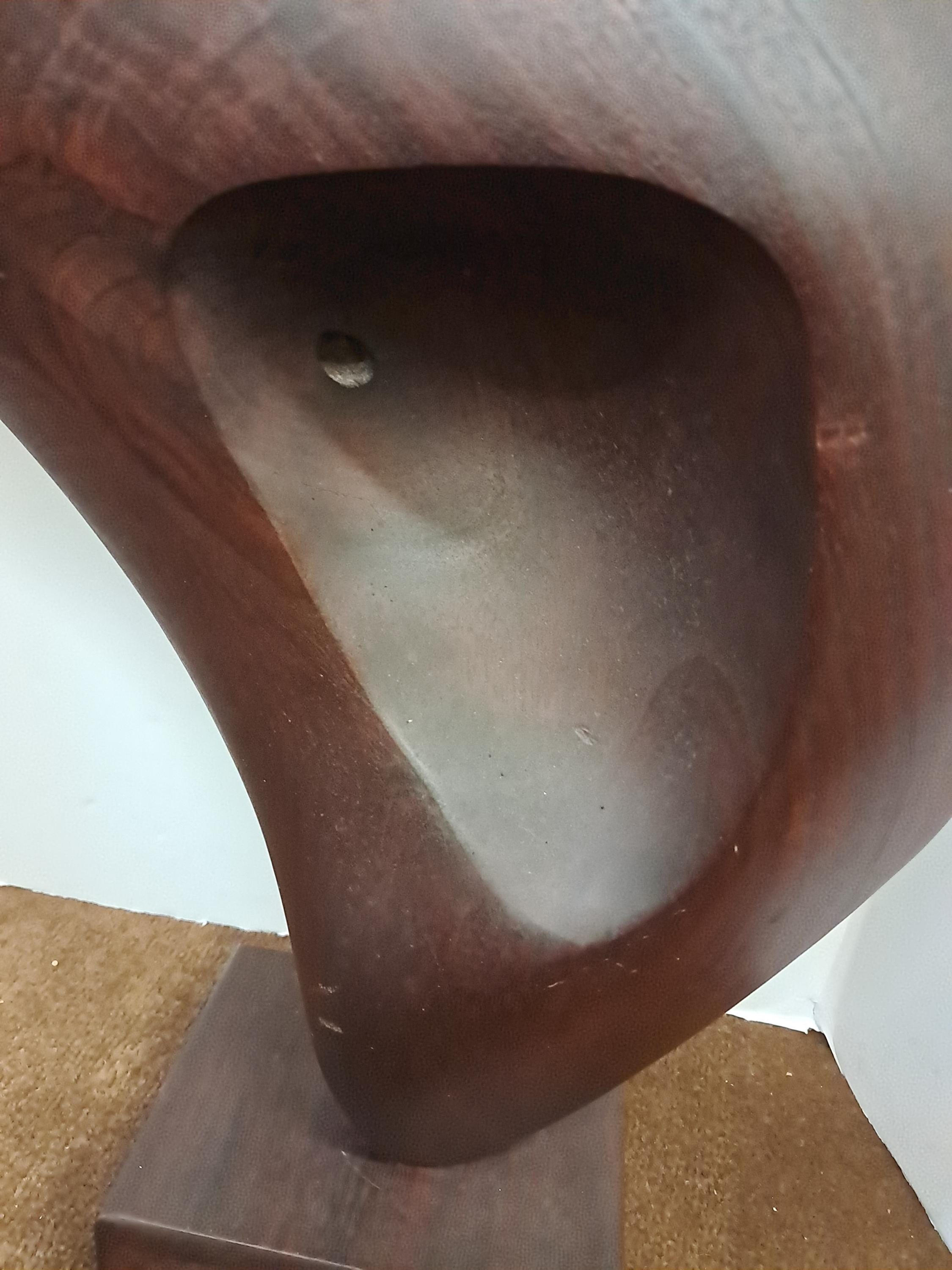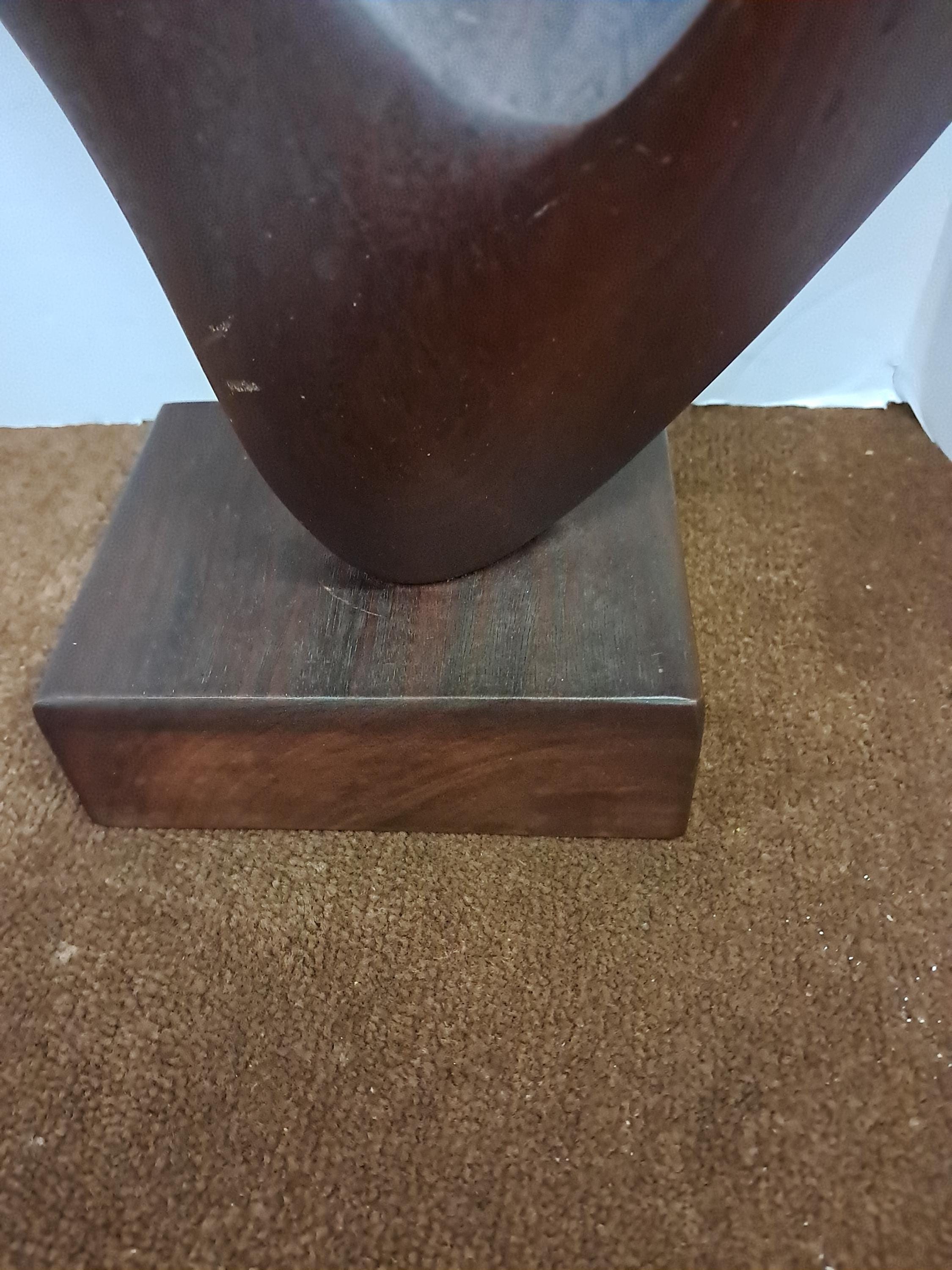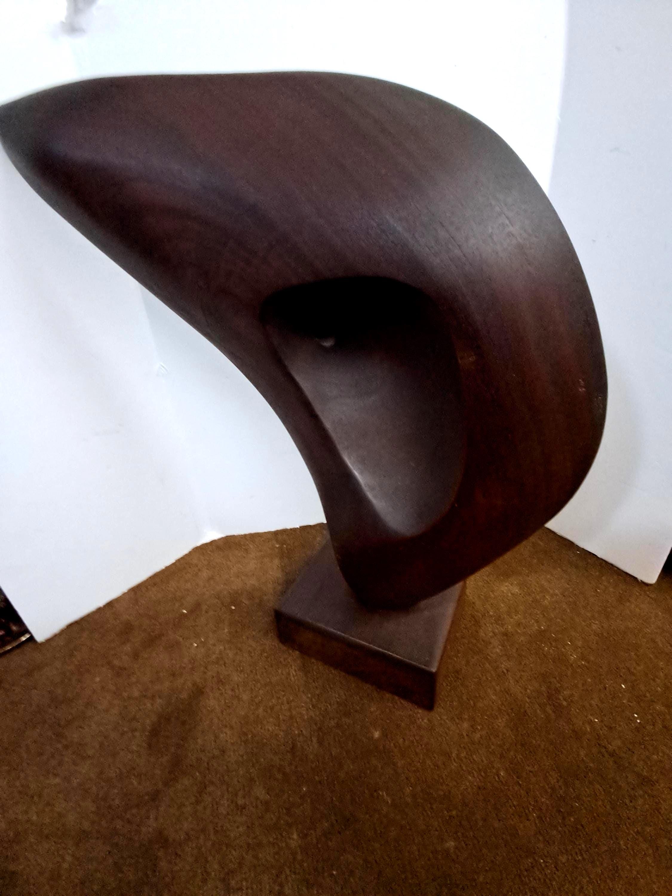 Handmade Solid Wood Modern Abstract SculptureMid-Century Modern AbstractMeasurements : 16" tall x 16" wide x 4" deepBase " 4" x 5.5"Estate Sale FindCirca : 1950'sArtist :UnknownCondition Very Good
