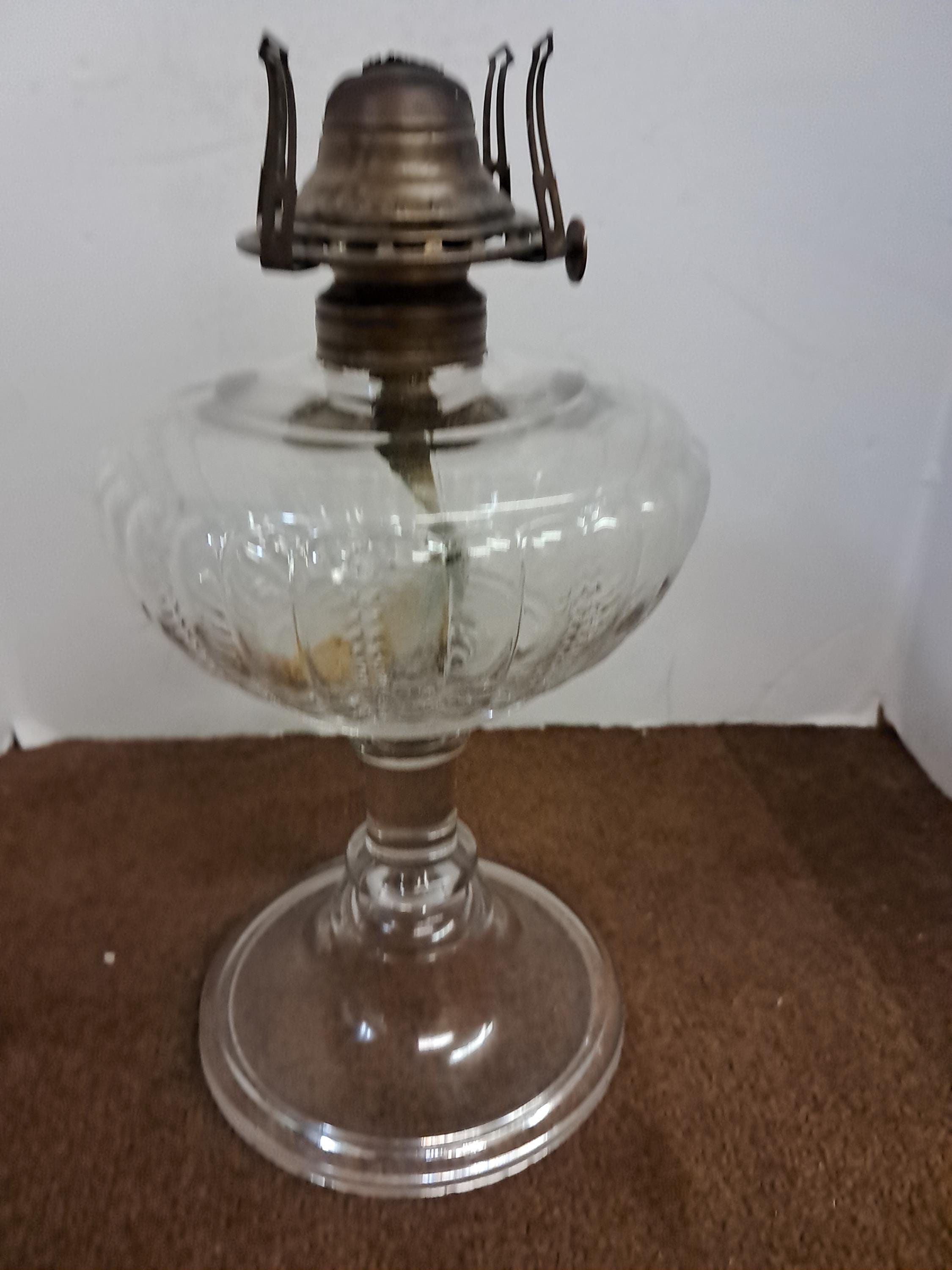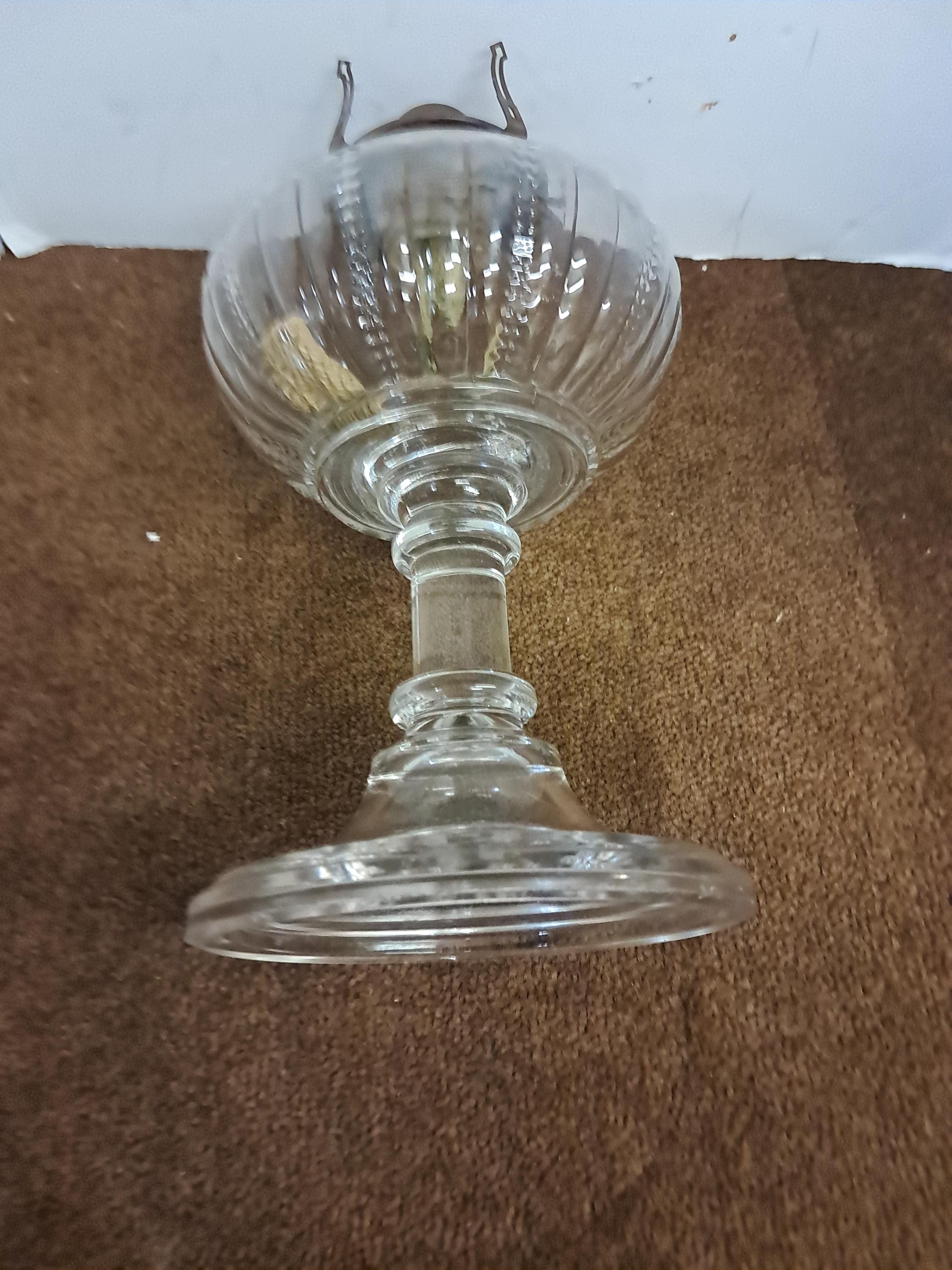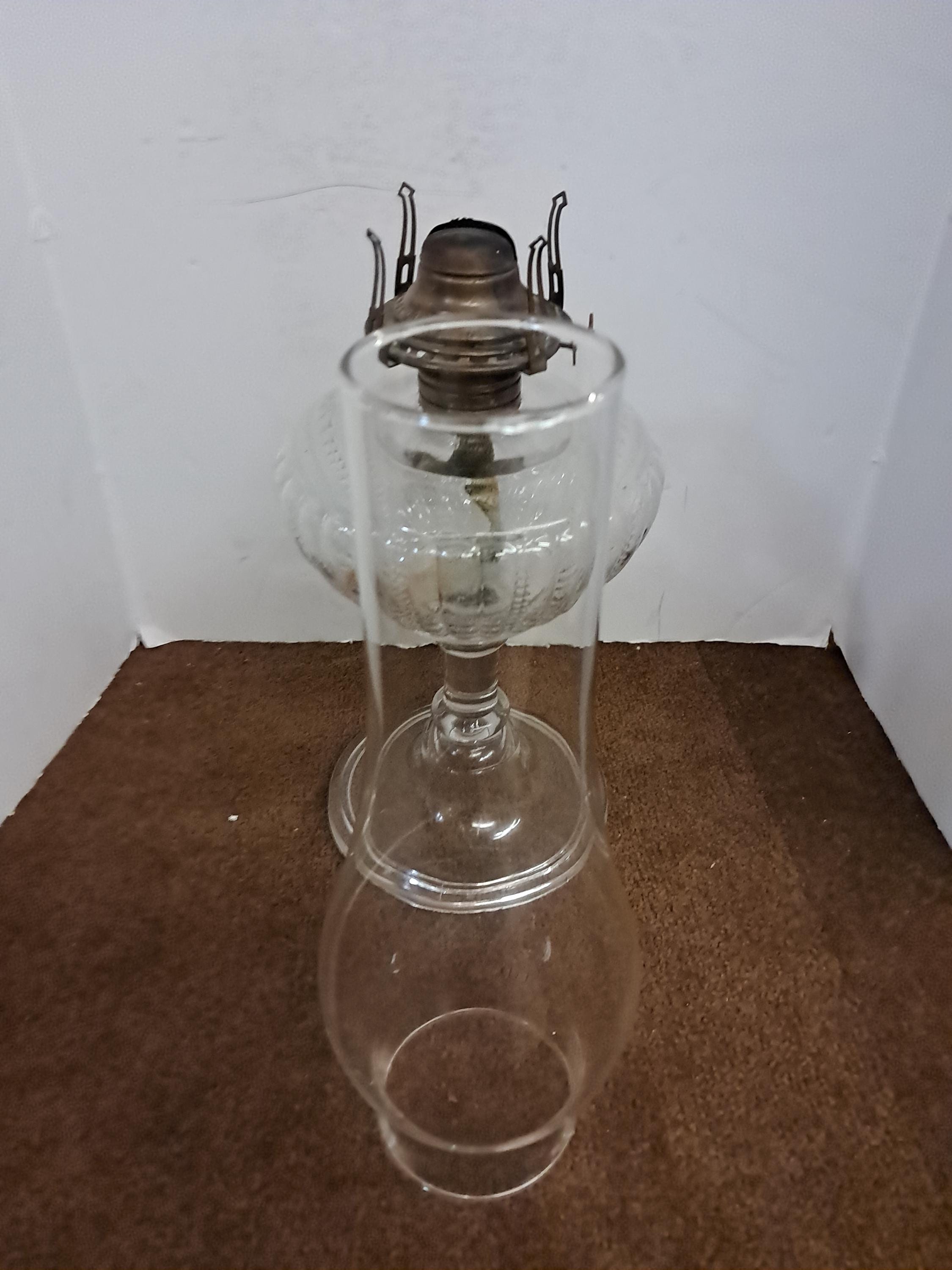 No. 1 Queen Anne No. 1 marked on burner with the number .1 just above the burner hinge. This vintage glass kerosene base need s NO tender loving care and a good cleaning, Just Kerosine to light it up .There are no chips or cracks and there is no lamp oil residue on the inside that will need to be removed for this lamp to truly shine. Measures 18.25 inches tall and is 5.5 inches across . Wick turns easily up and down...will need some assistance and cleaning to get the burner top to move up and down via the hinge.it will need some liquid wrench or something like that. As I said this will require little attention to bring it to its former glory.