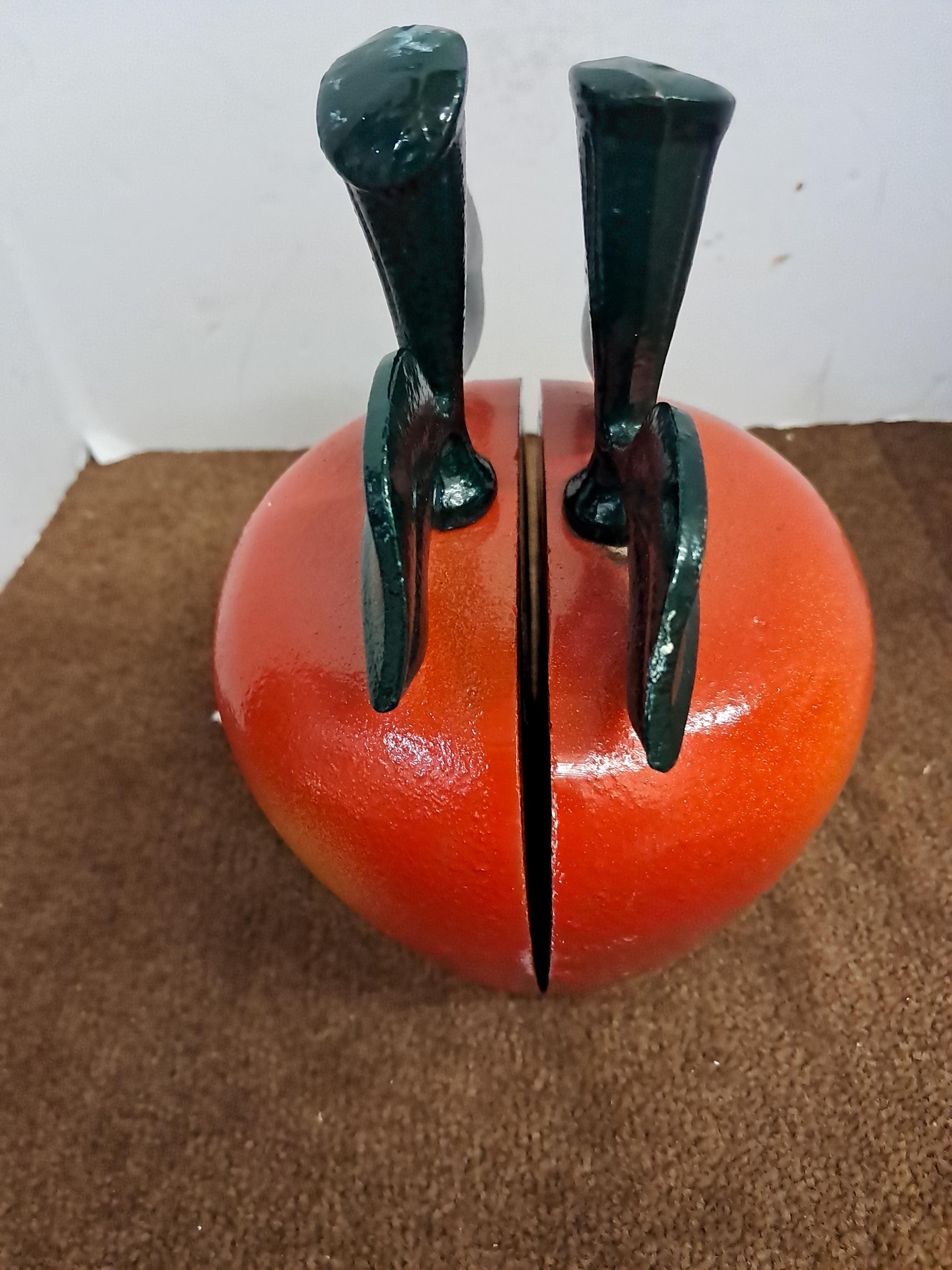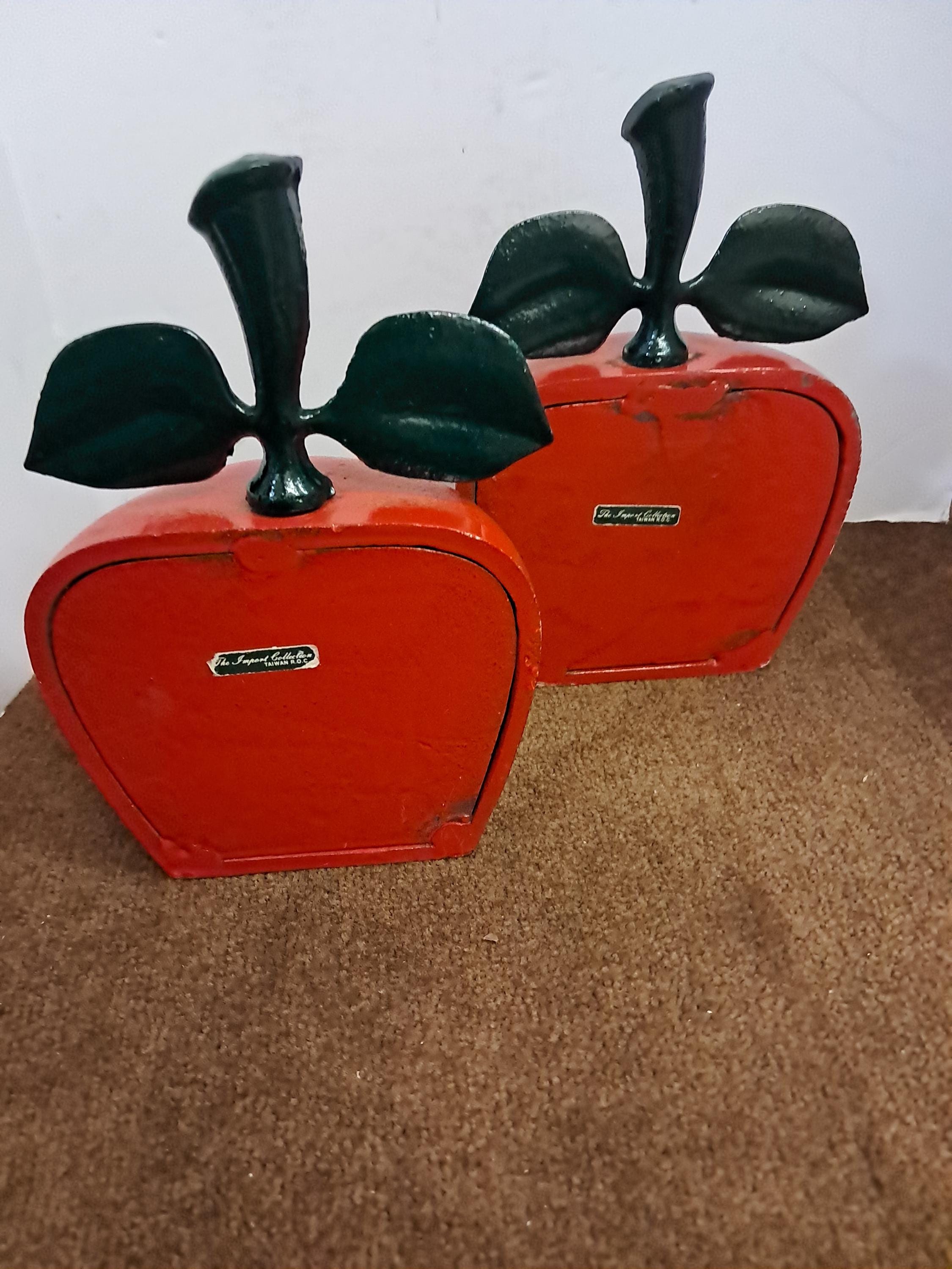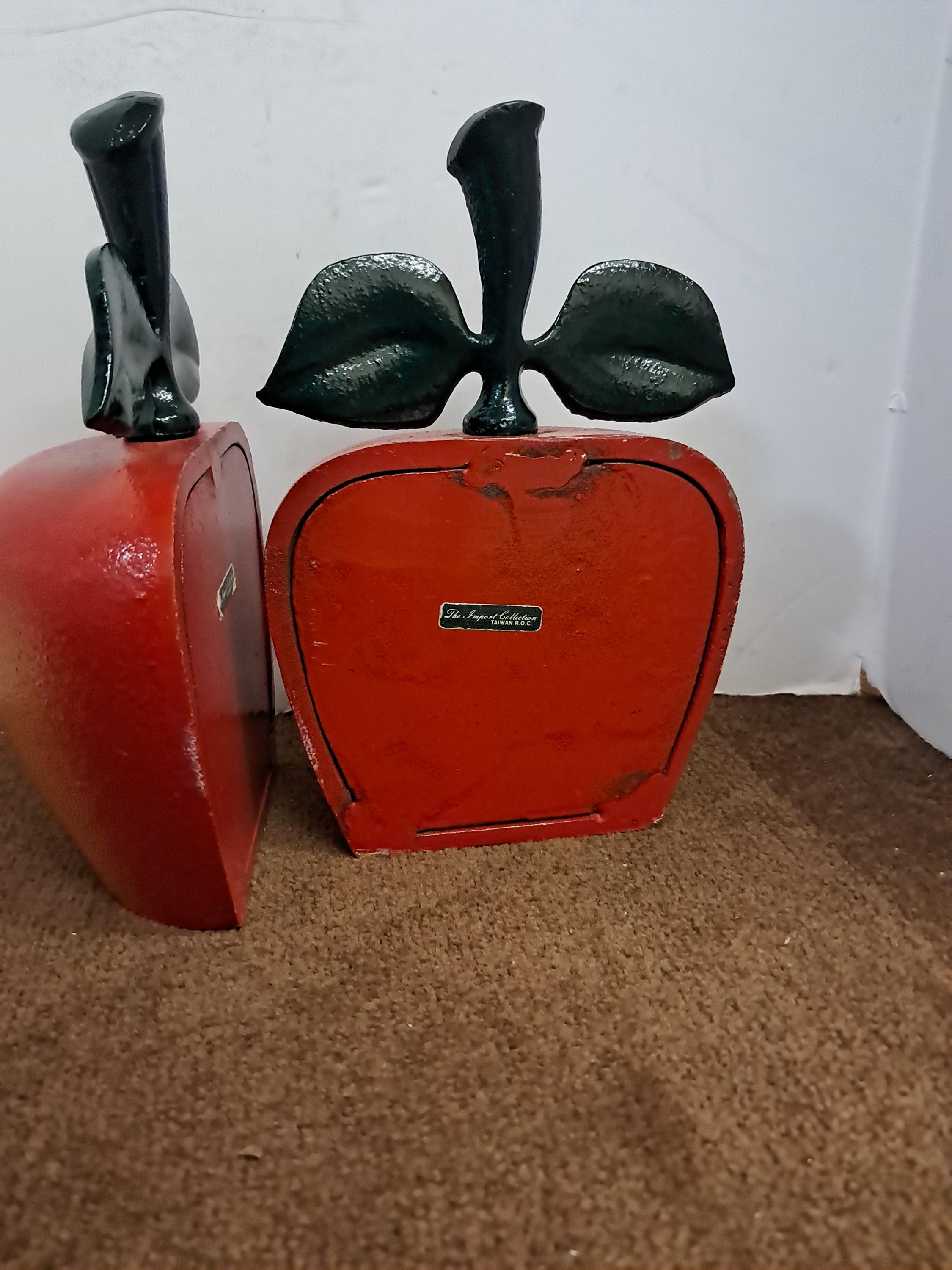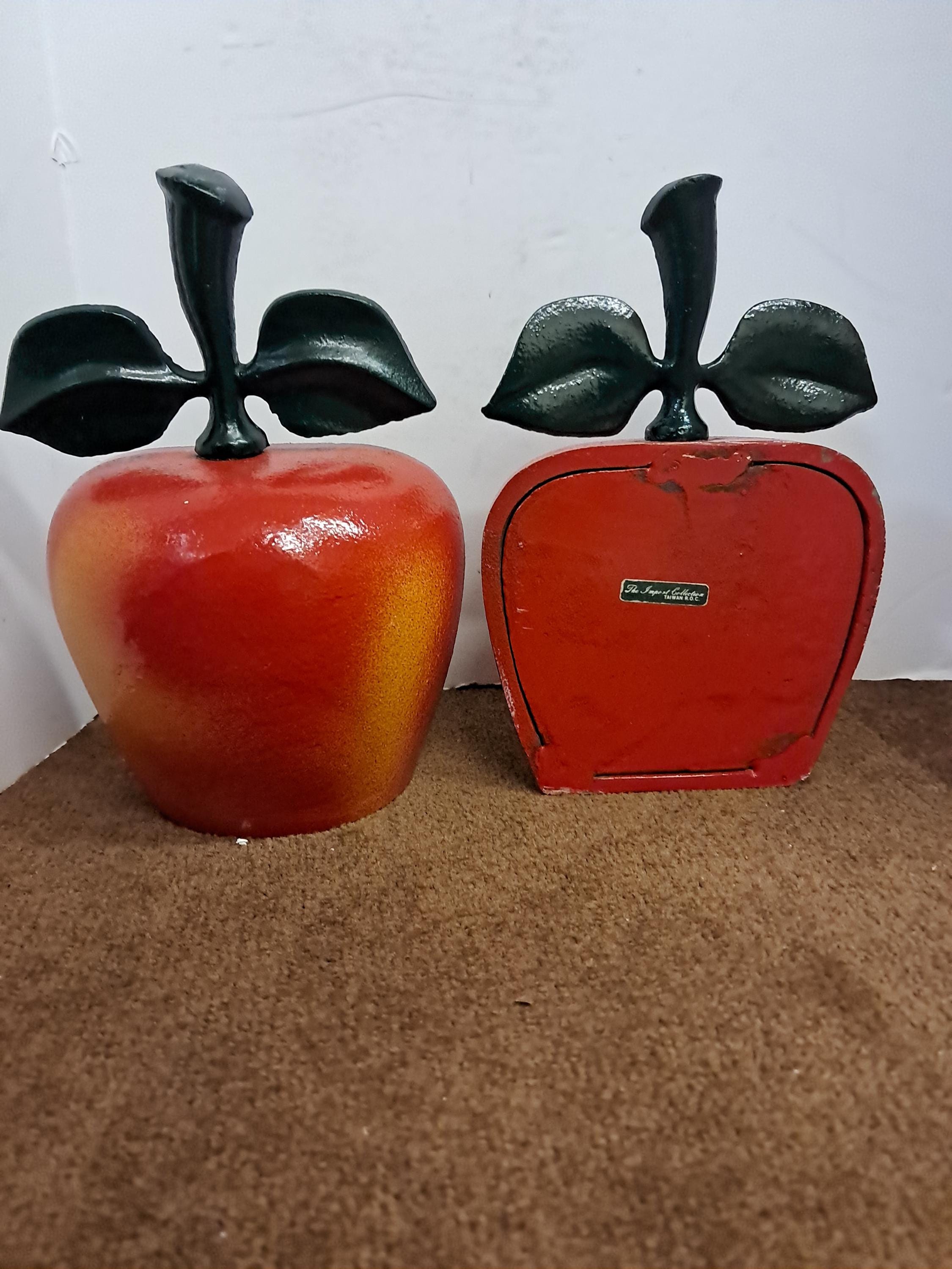 Set of Apple Cast Iron Bookends / Door Stop Measure 5 " wide x 5" deep x 7.5" tall Excellent Vintage Condition with no marks Material :Cast Iron Made In Taiwan. R.O.C.