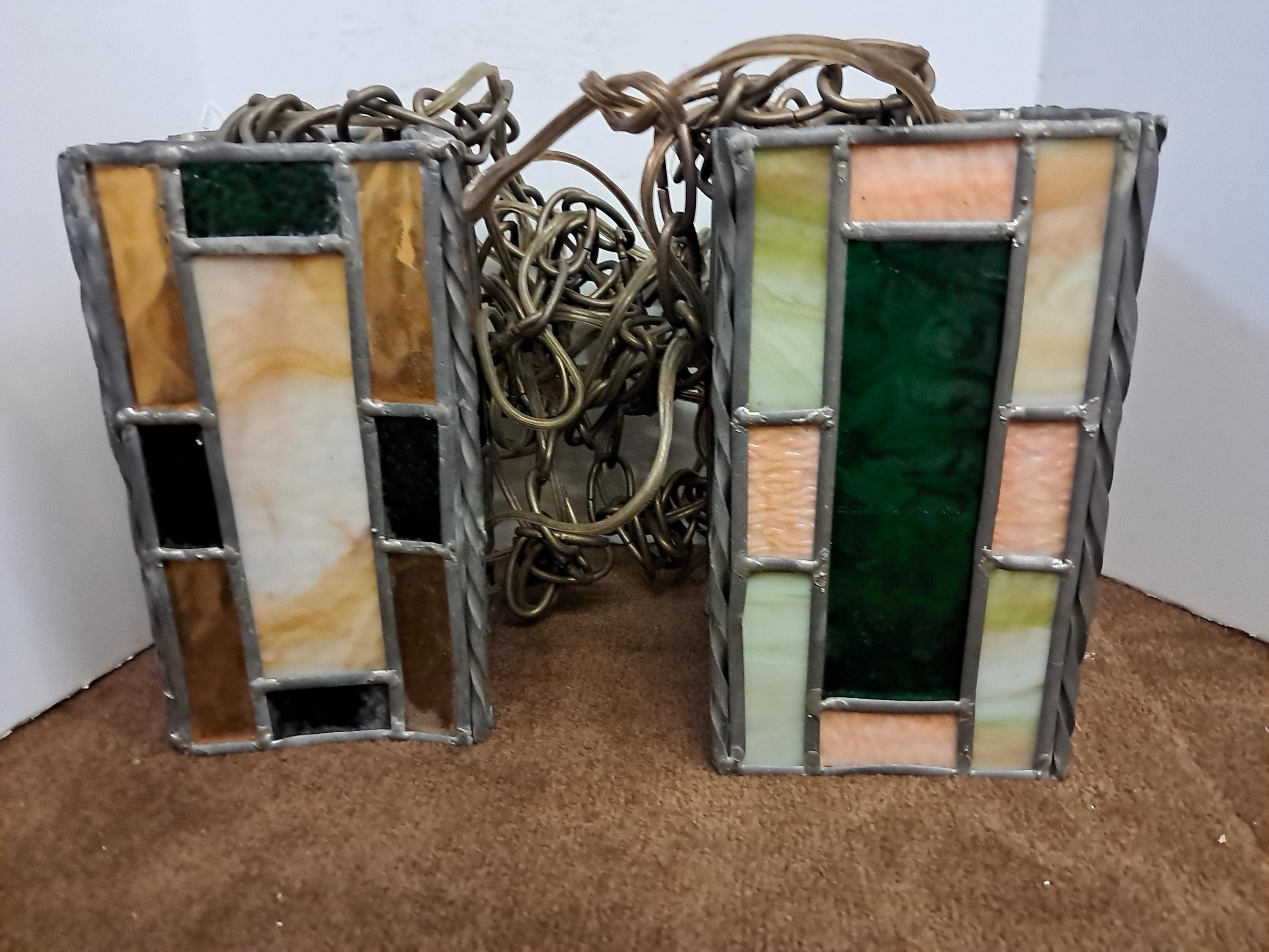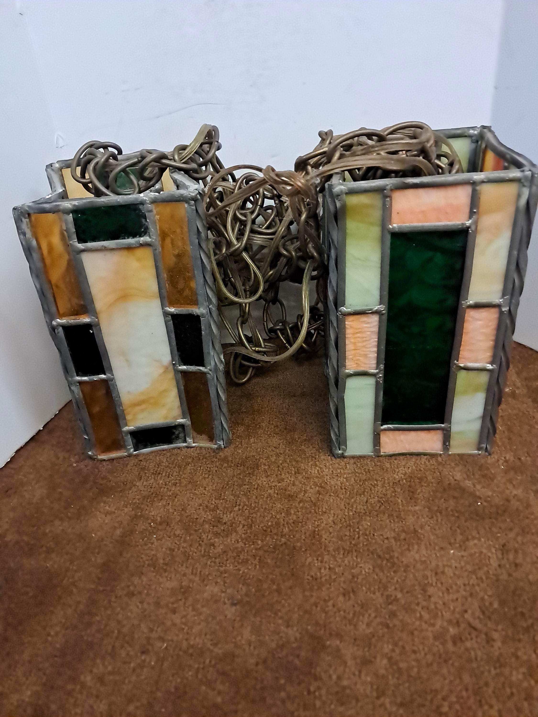 Handmade stained glass lamp shades, hanging swag light fixture ,rectangular