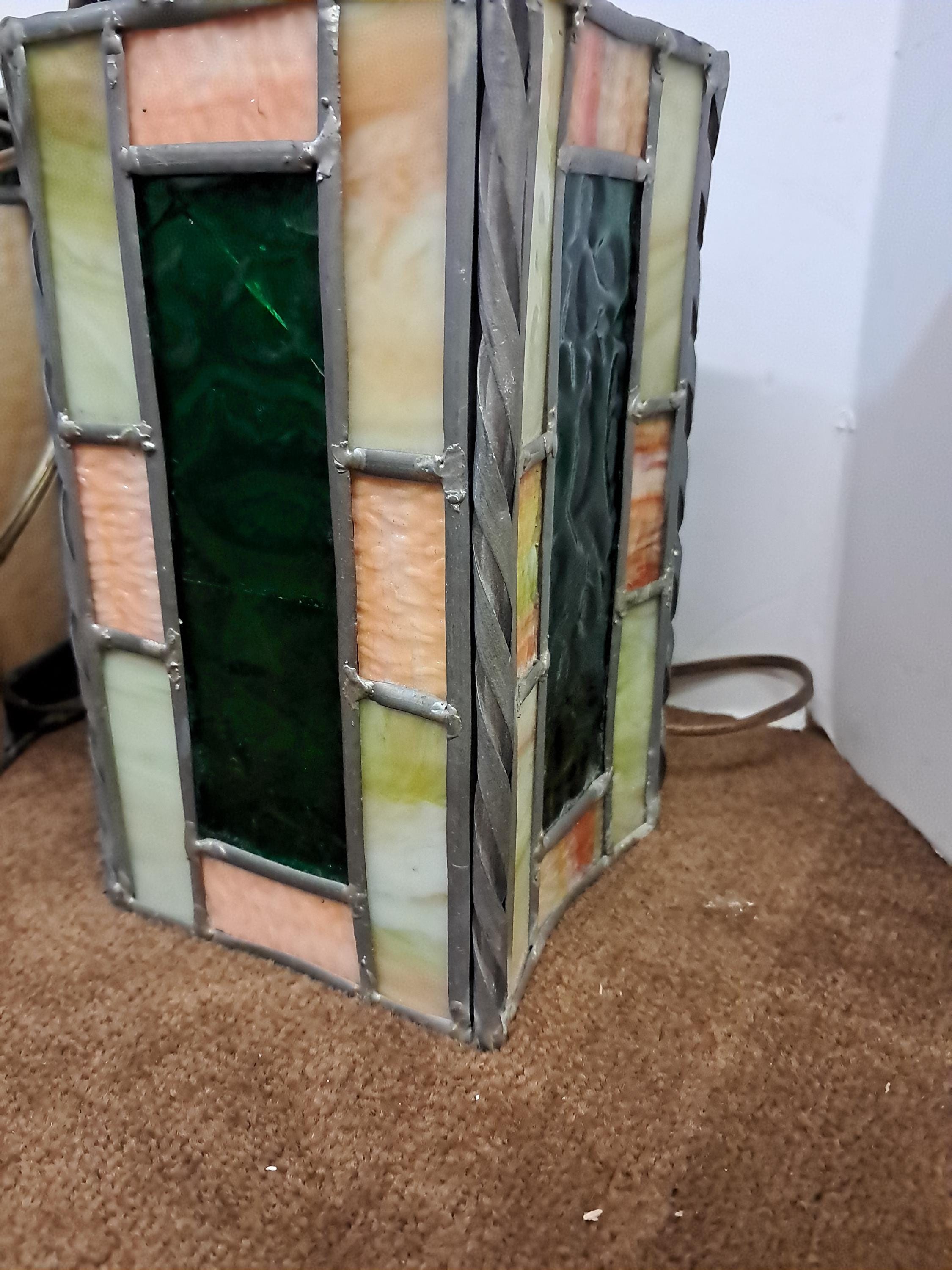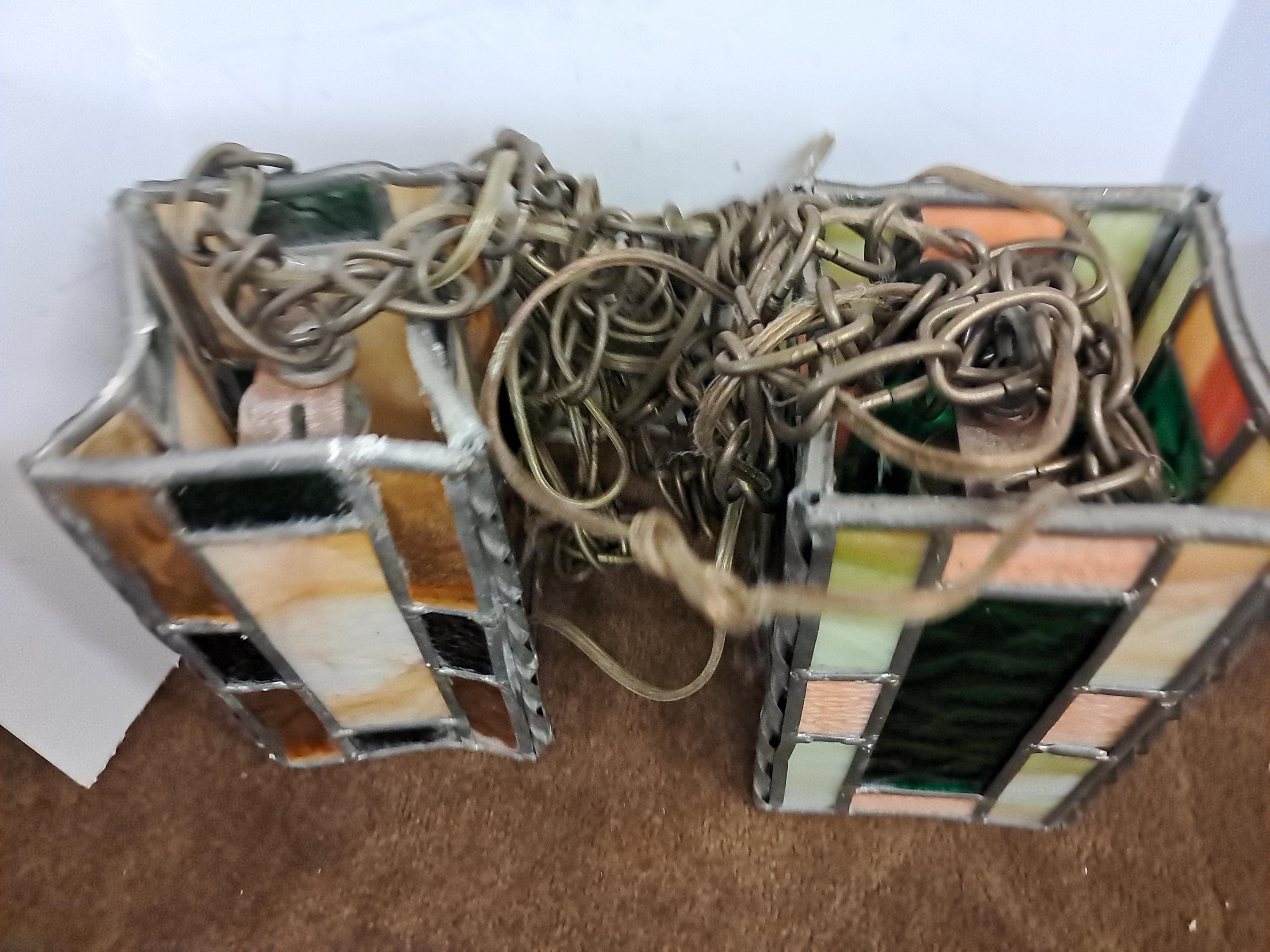 2 Tiffany Style Chain Hanging Stained Glass Lamps