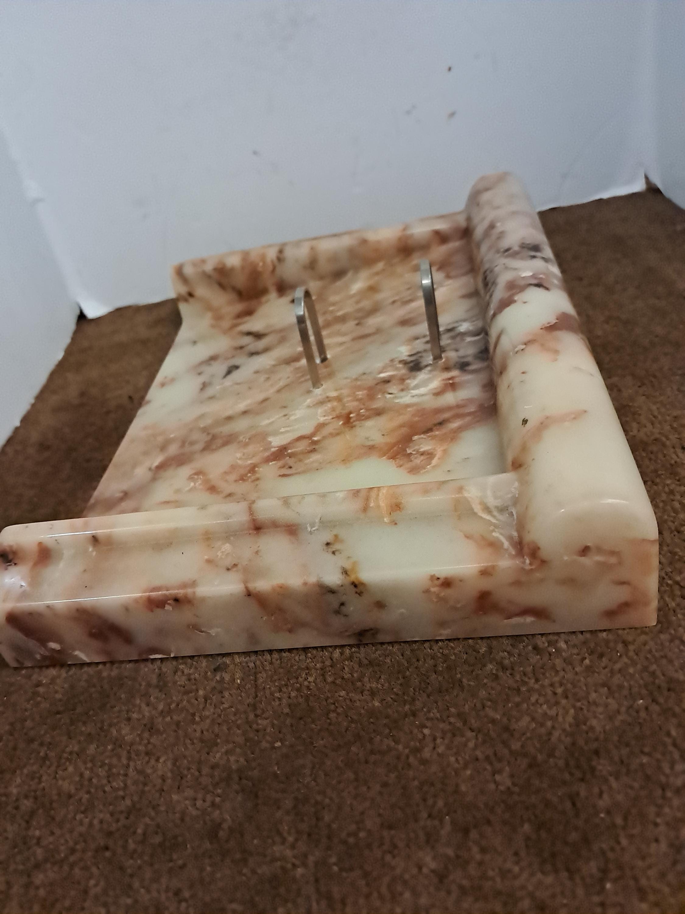 Vintage Marble Calander Holder10.5" wide x 8 " tall x 2 " deepExcellent Condition with no damagesGray Color Felt Under.Circa : 1950'sWeight : 5 lb