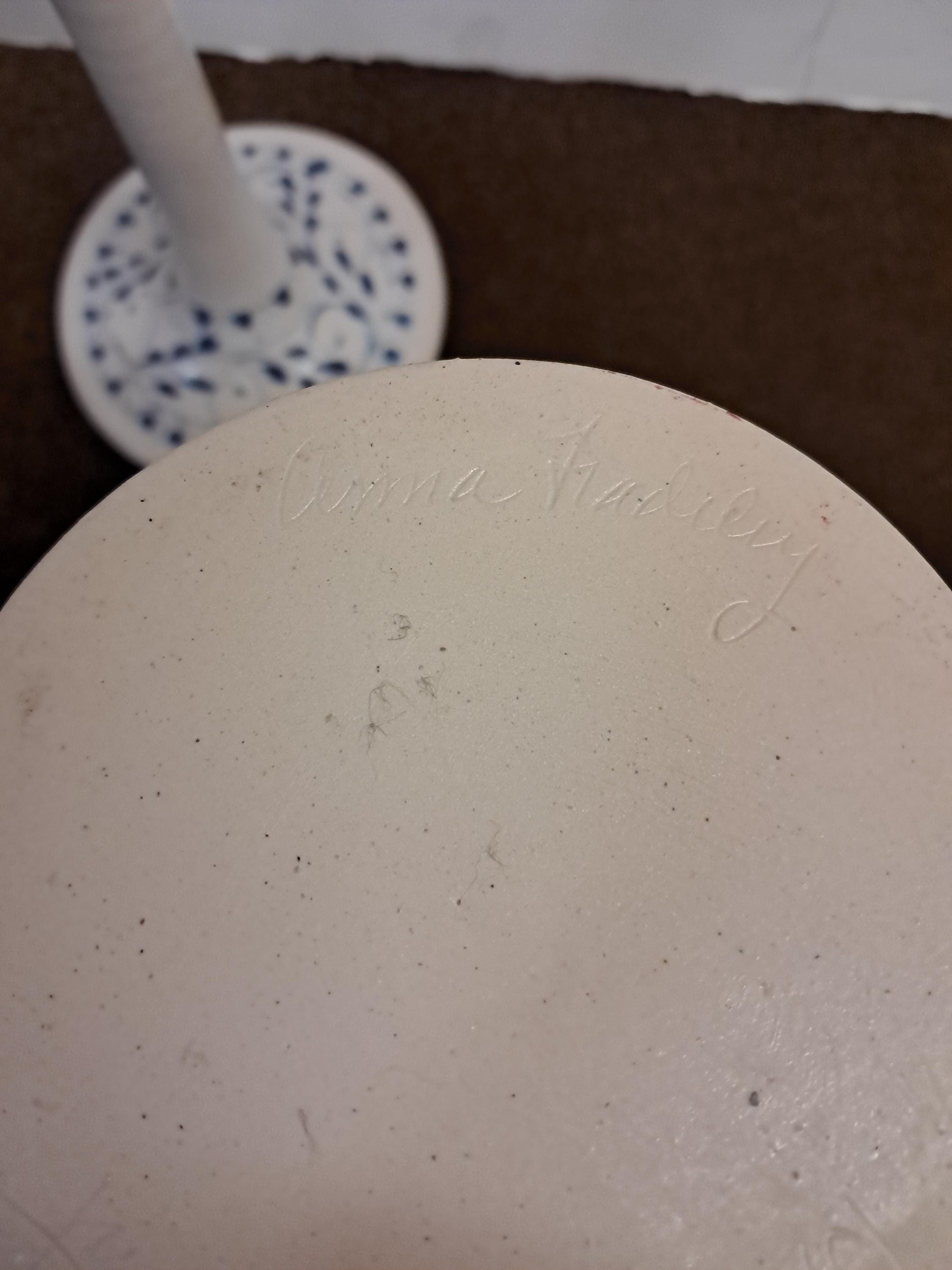 2~ANNA FADELEY Pottery Stoneware Candlestick Candle Holders Vermont Signed