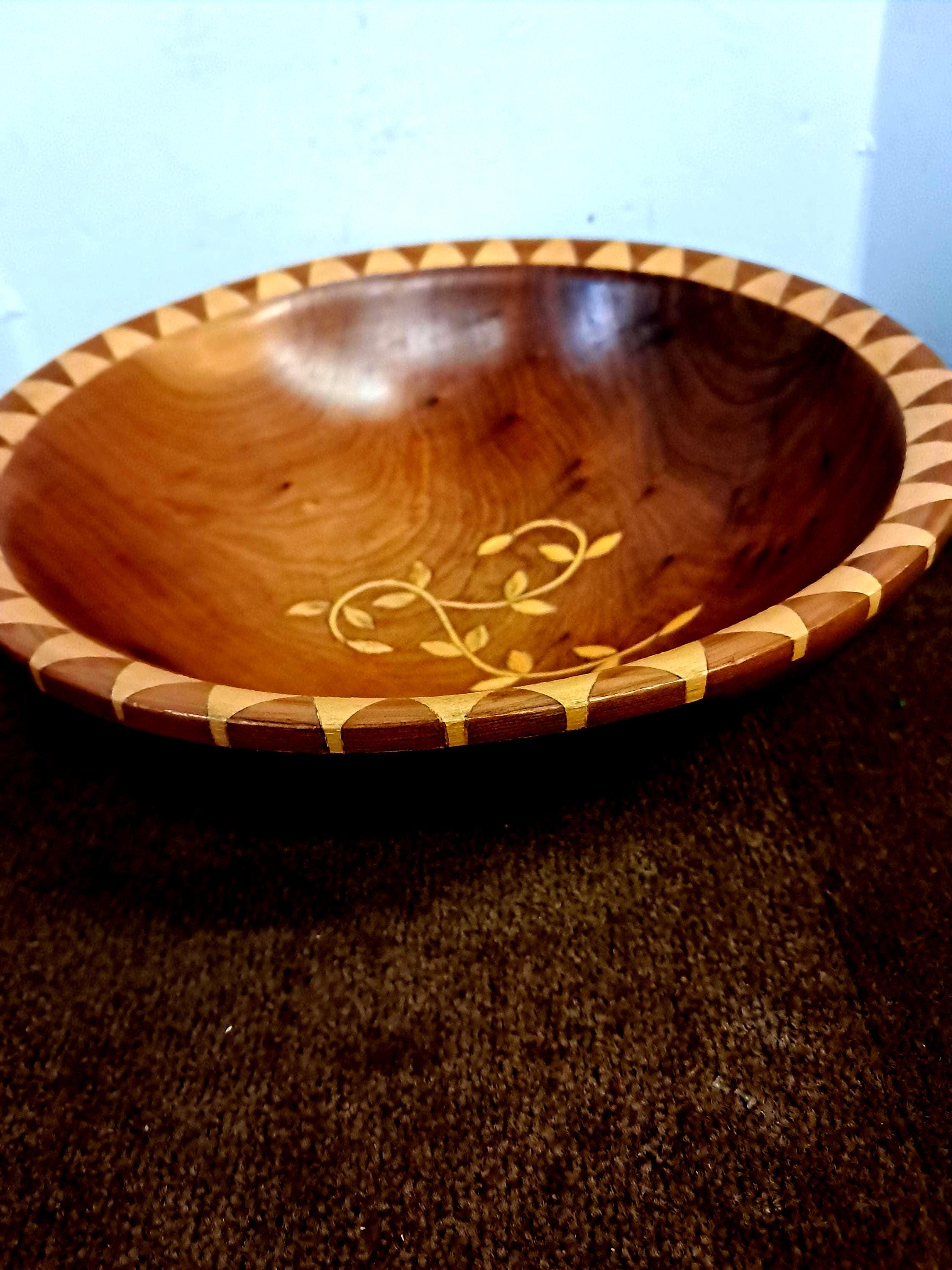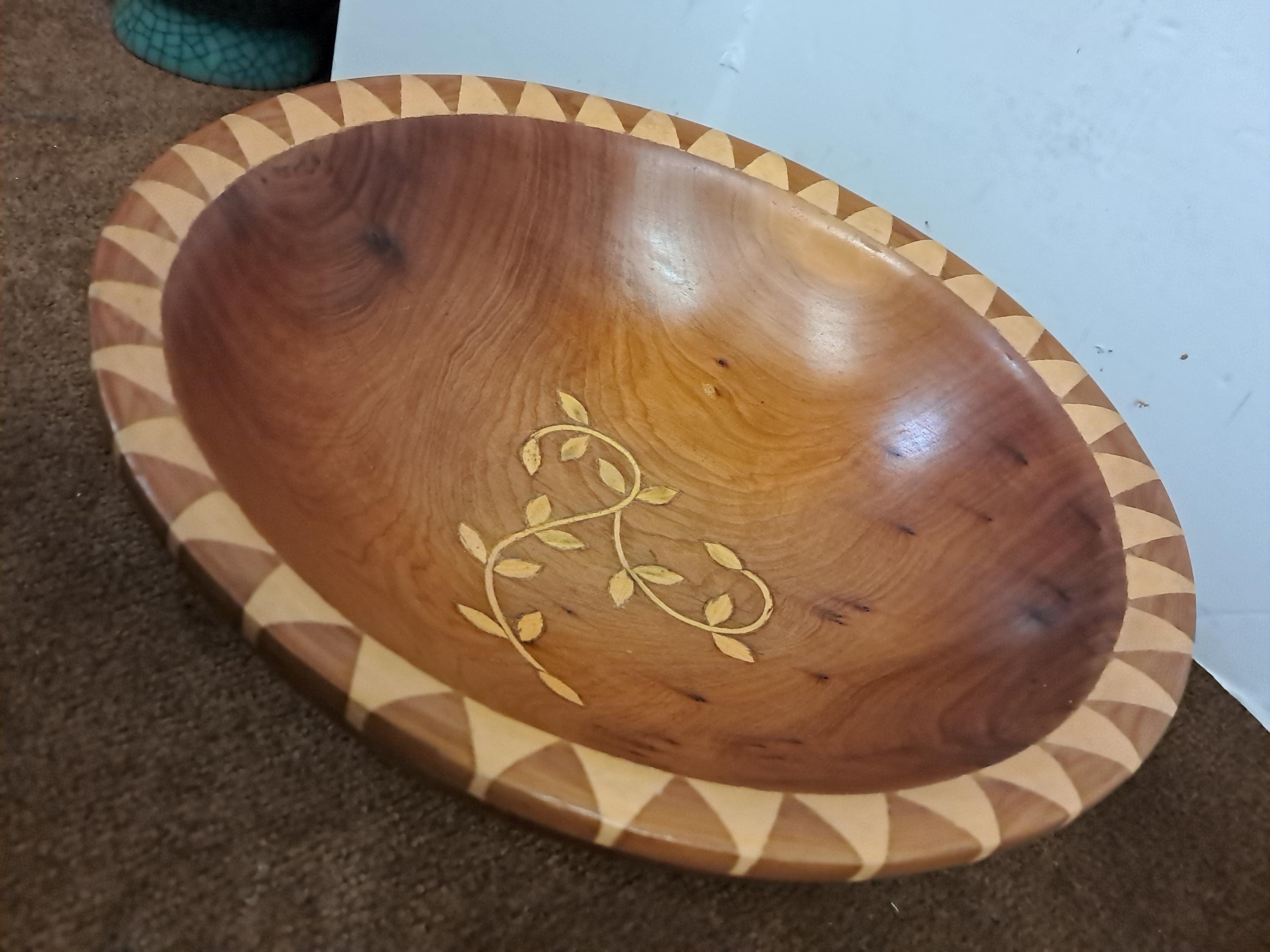 Vintage Marquetry Handcrafted oriental Fruit Basket In Thuja wood