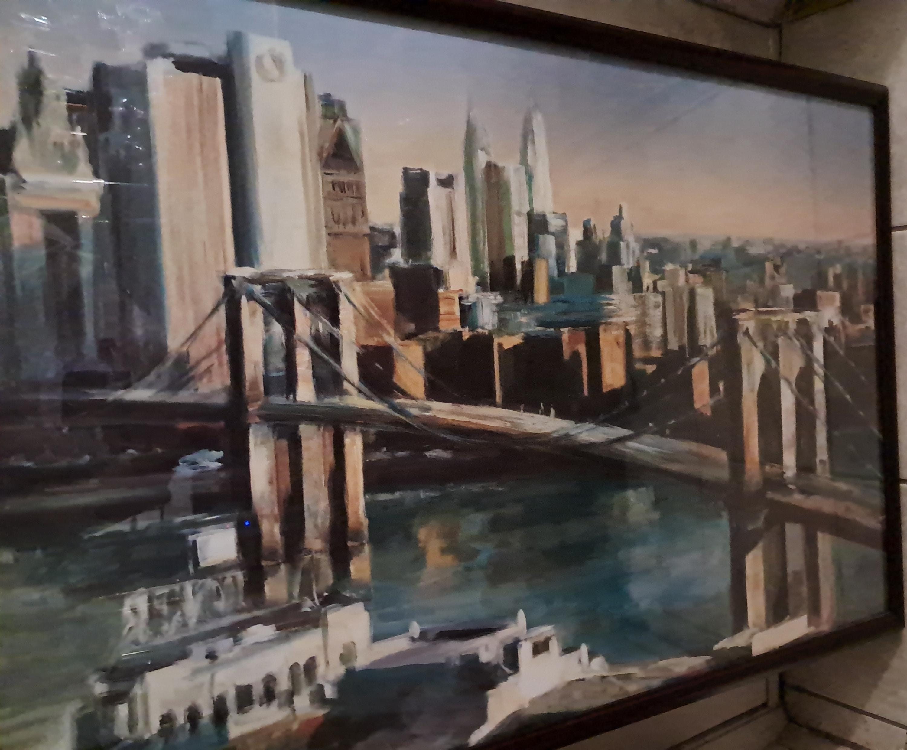 Marilyn Hageman's Reproduction Print of Brooklyn Bridge. Framed