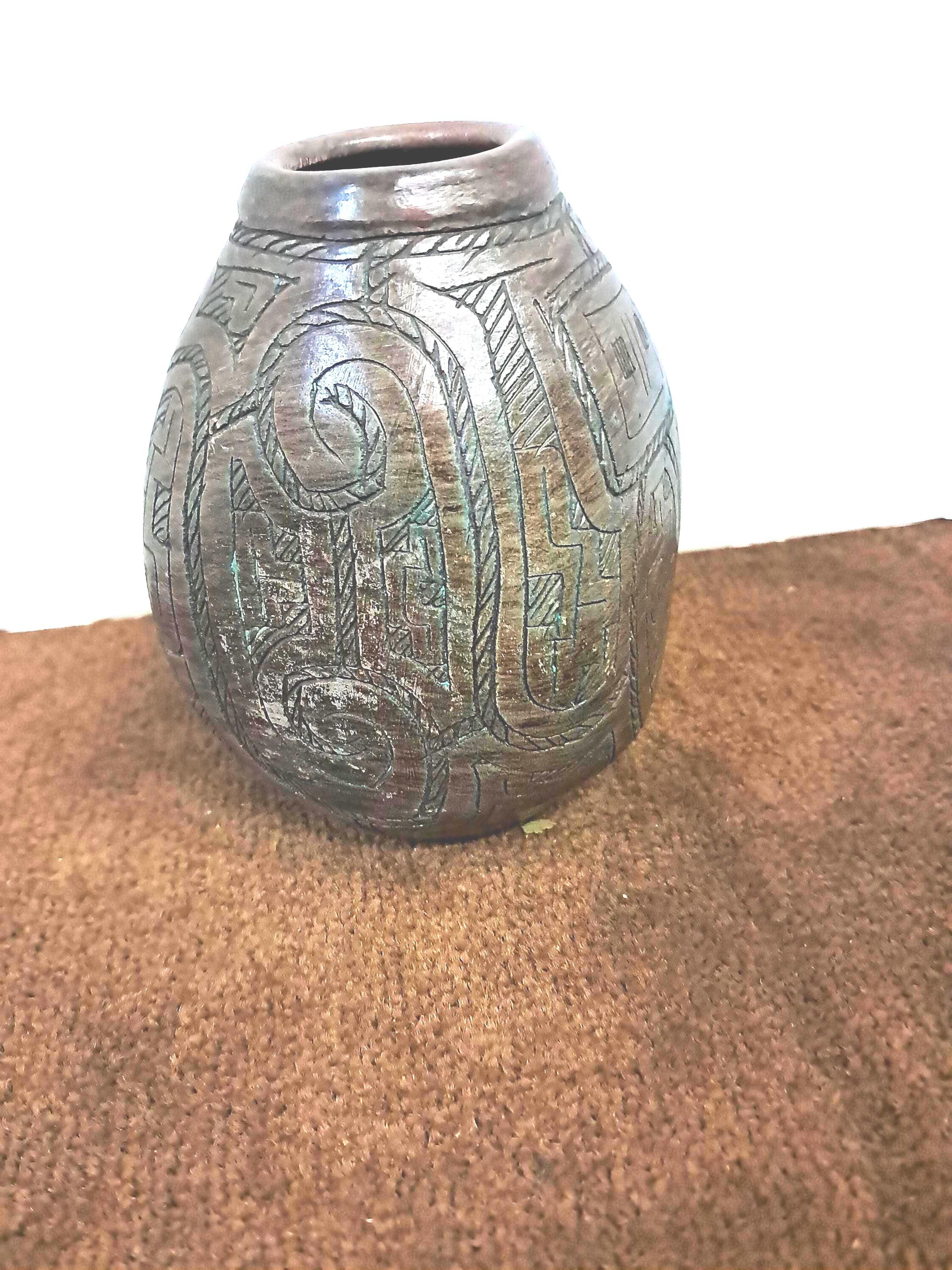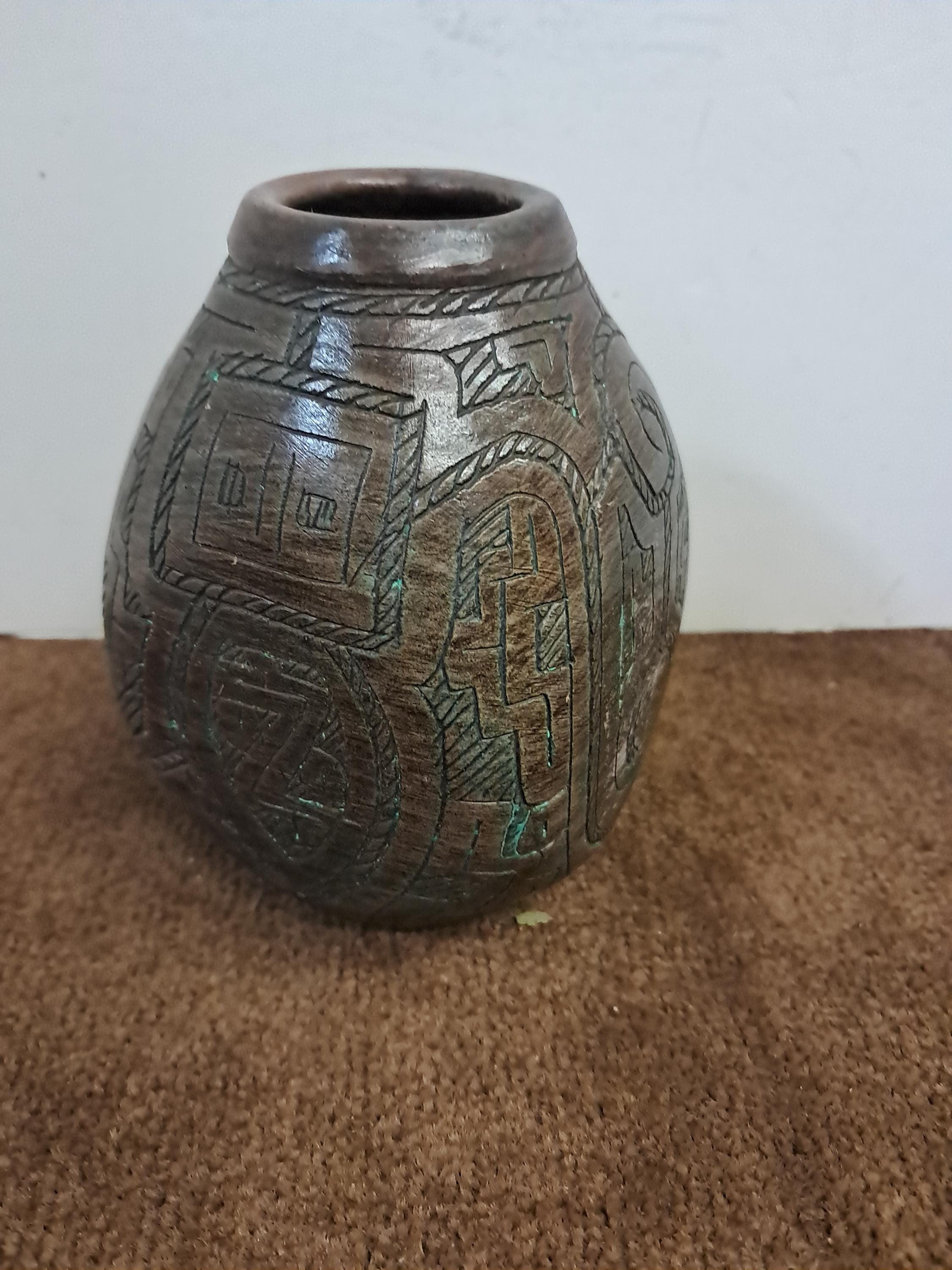 Marajoara Terracotta Handmade Aztec Vase 5" tall x 3.5" wide x 3.5" deepExcellent Vintage Condition