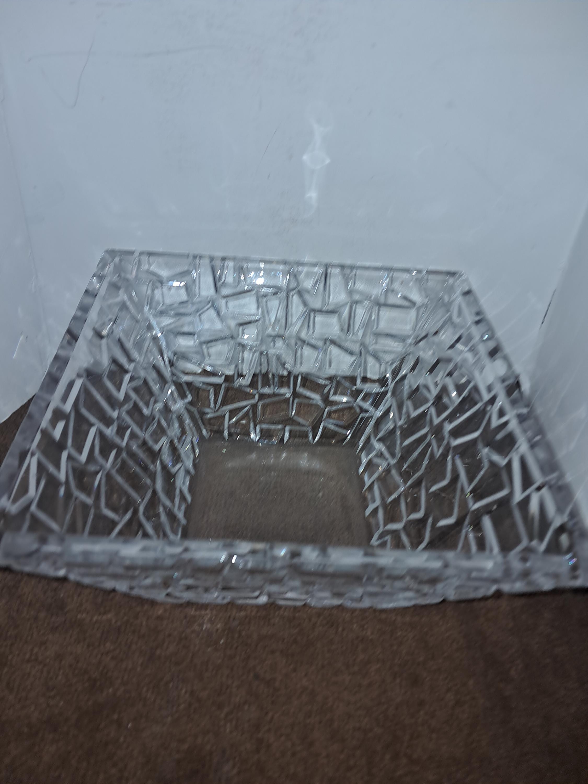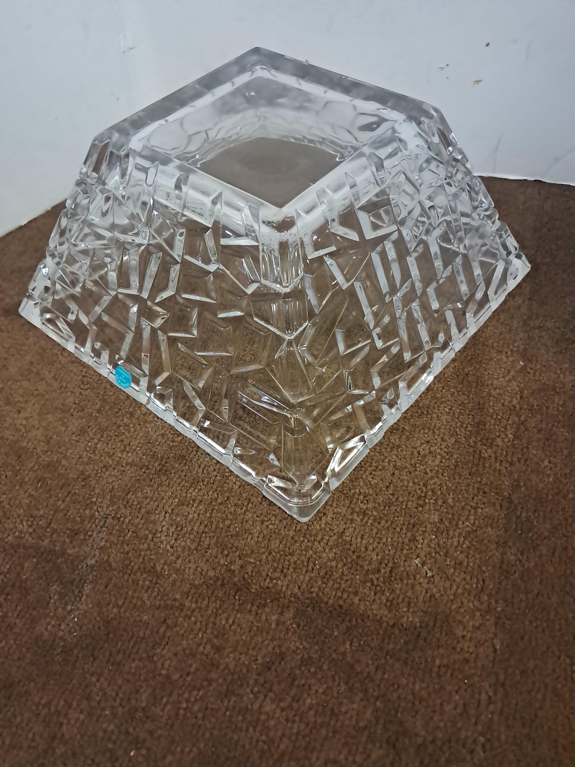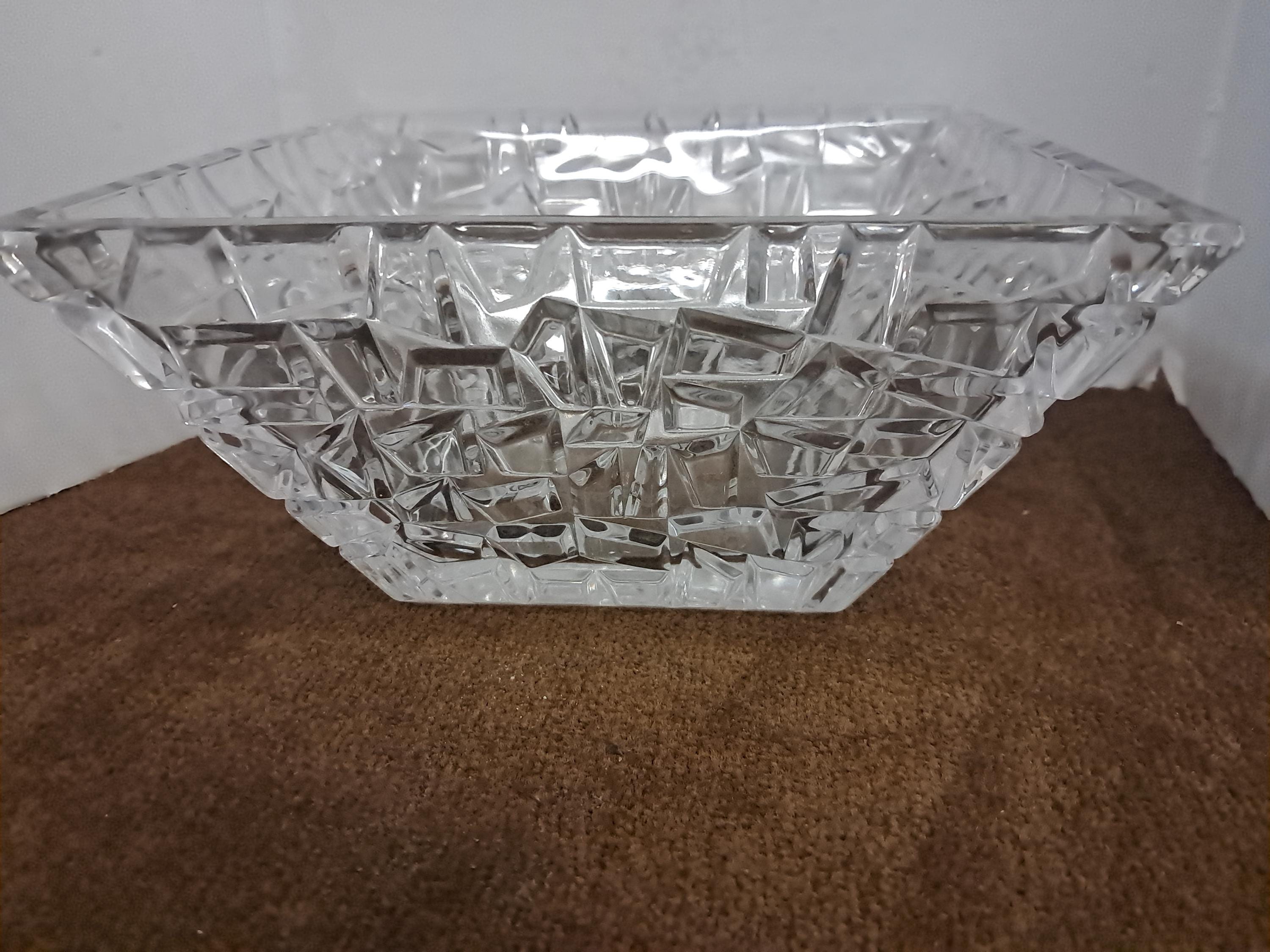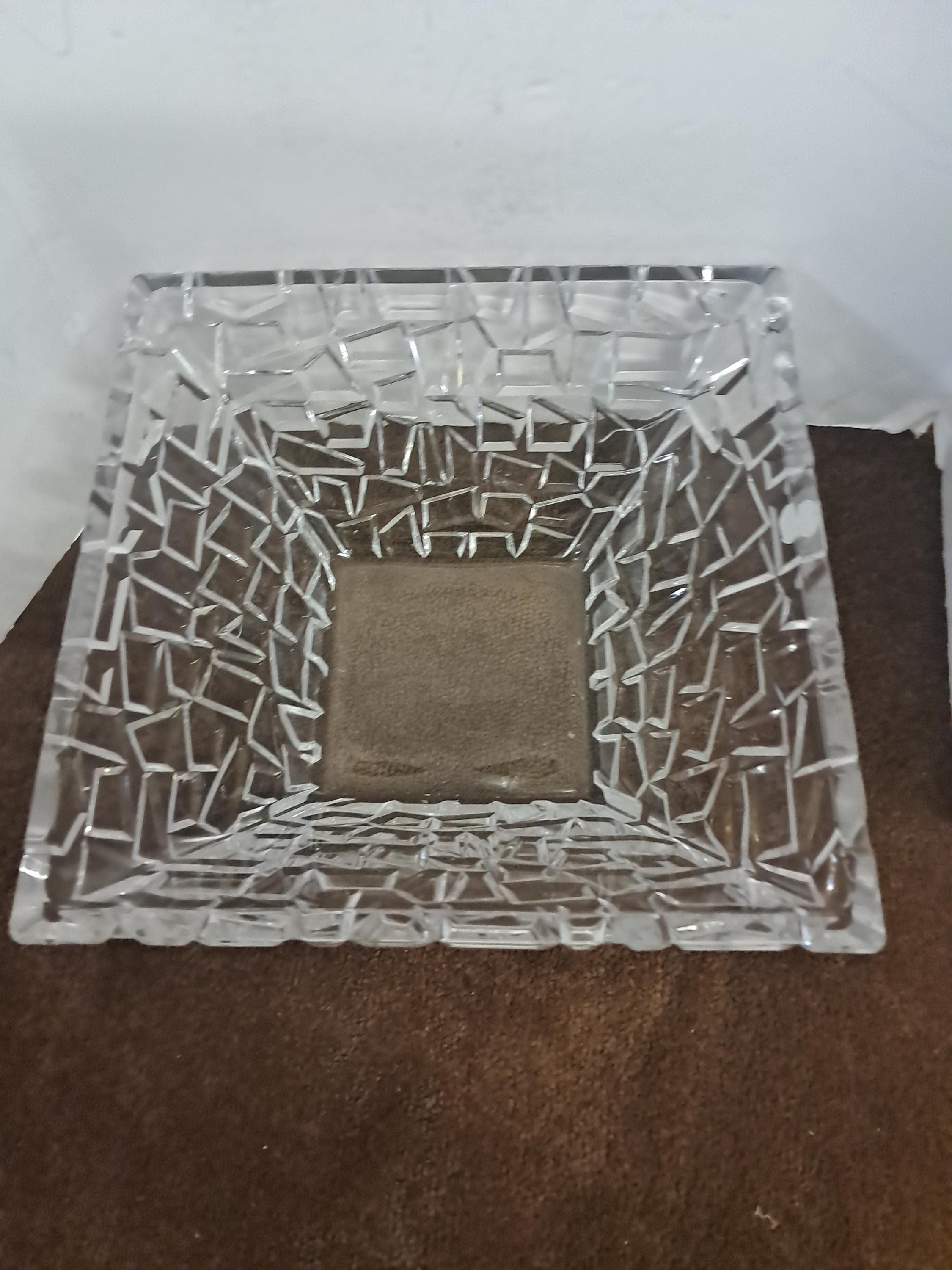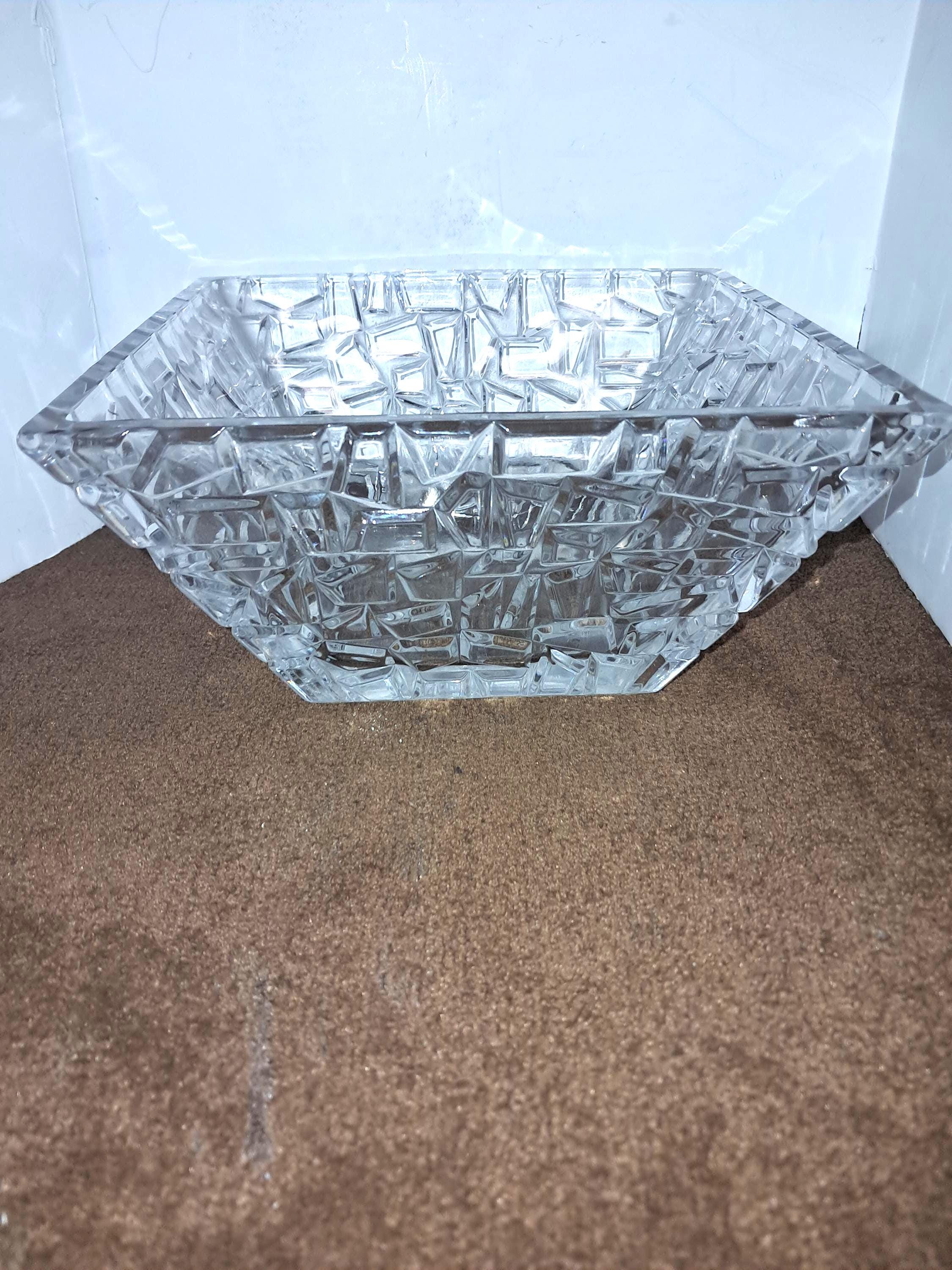 TIFFANY & CO SQUARE CRYSTAL BOWL SIERRA GEOMETRIC TEXTURED GERMANY 9X4.5”