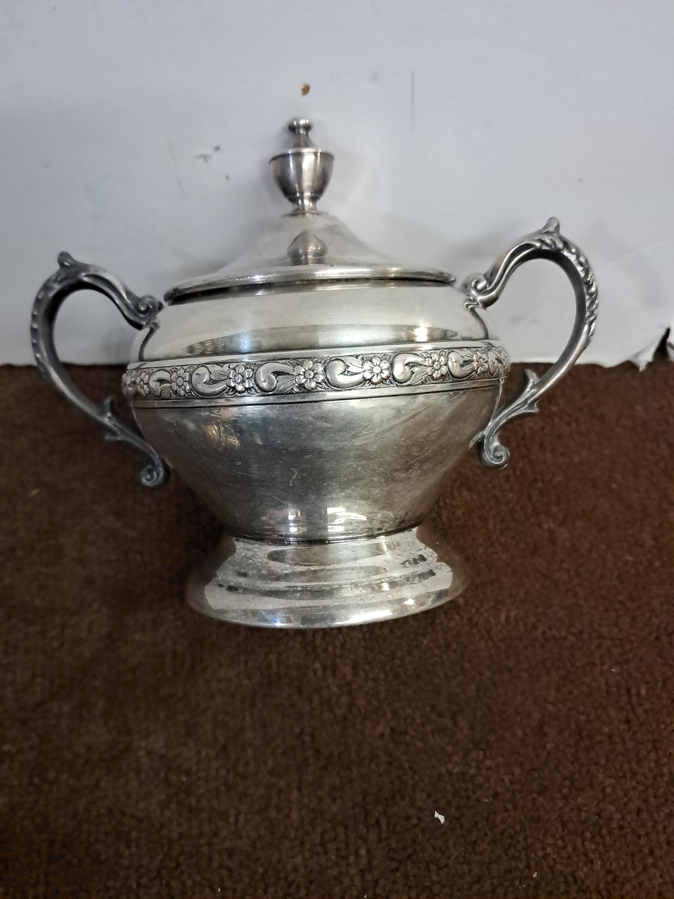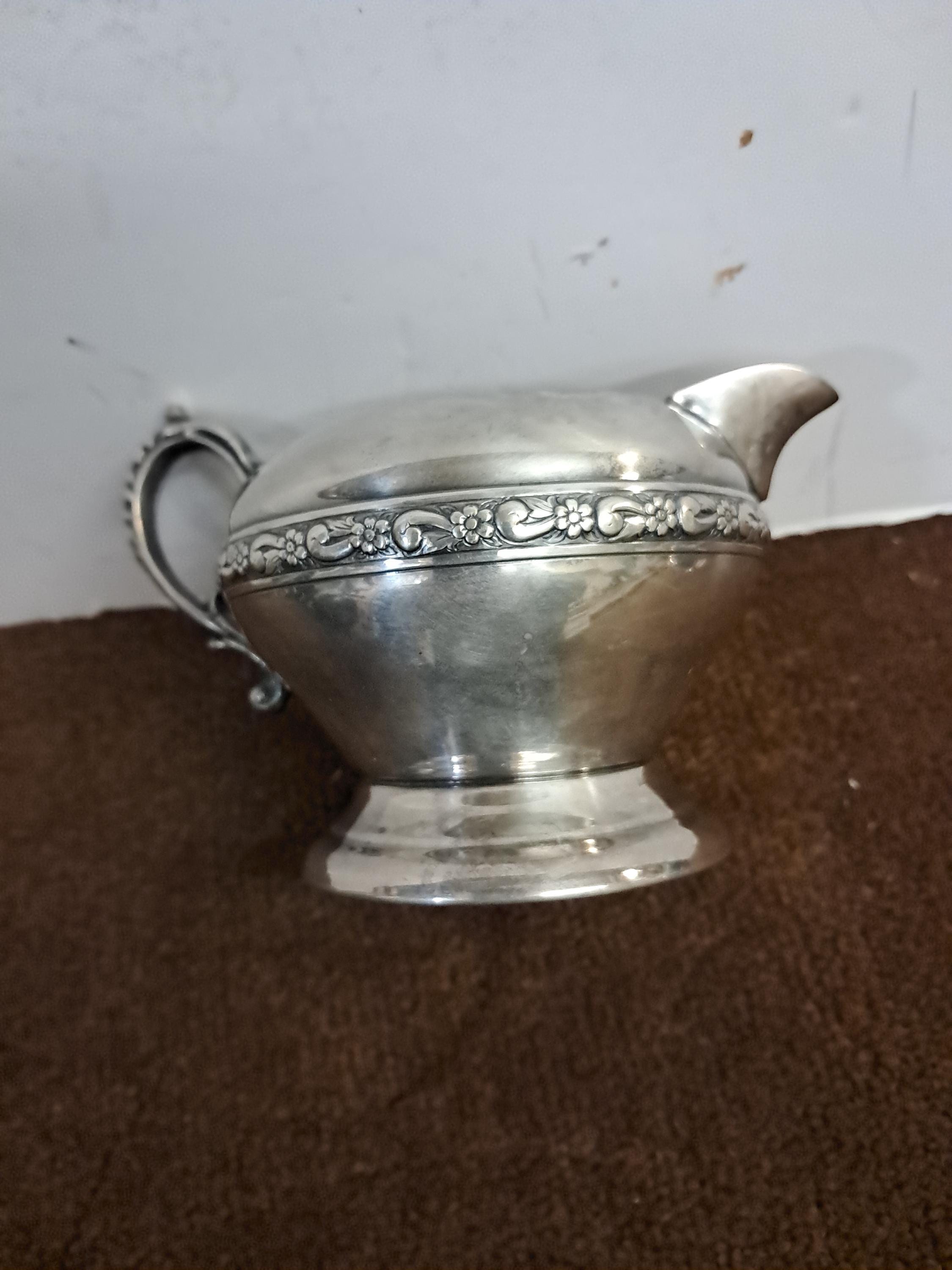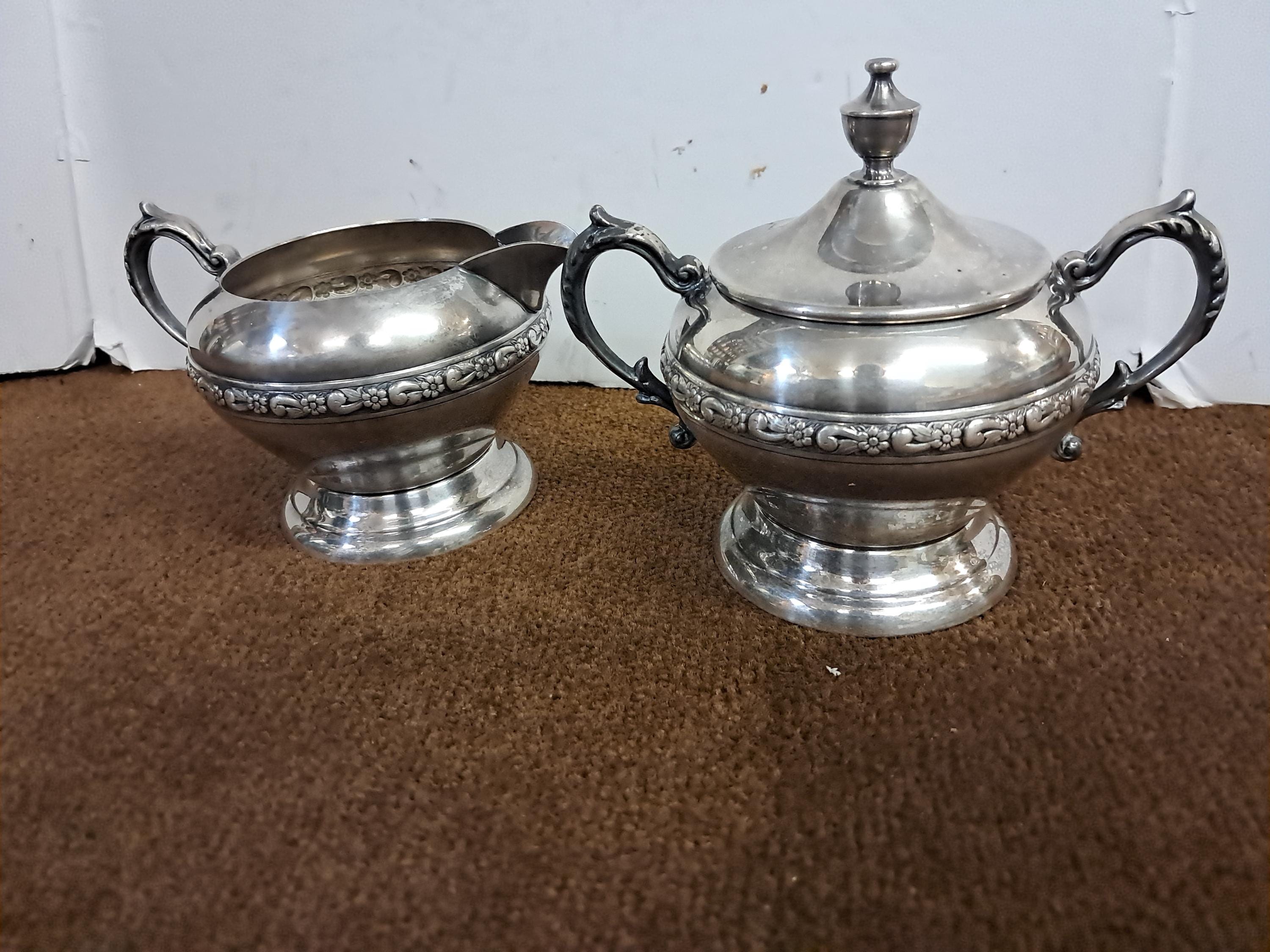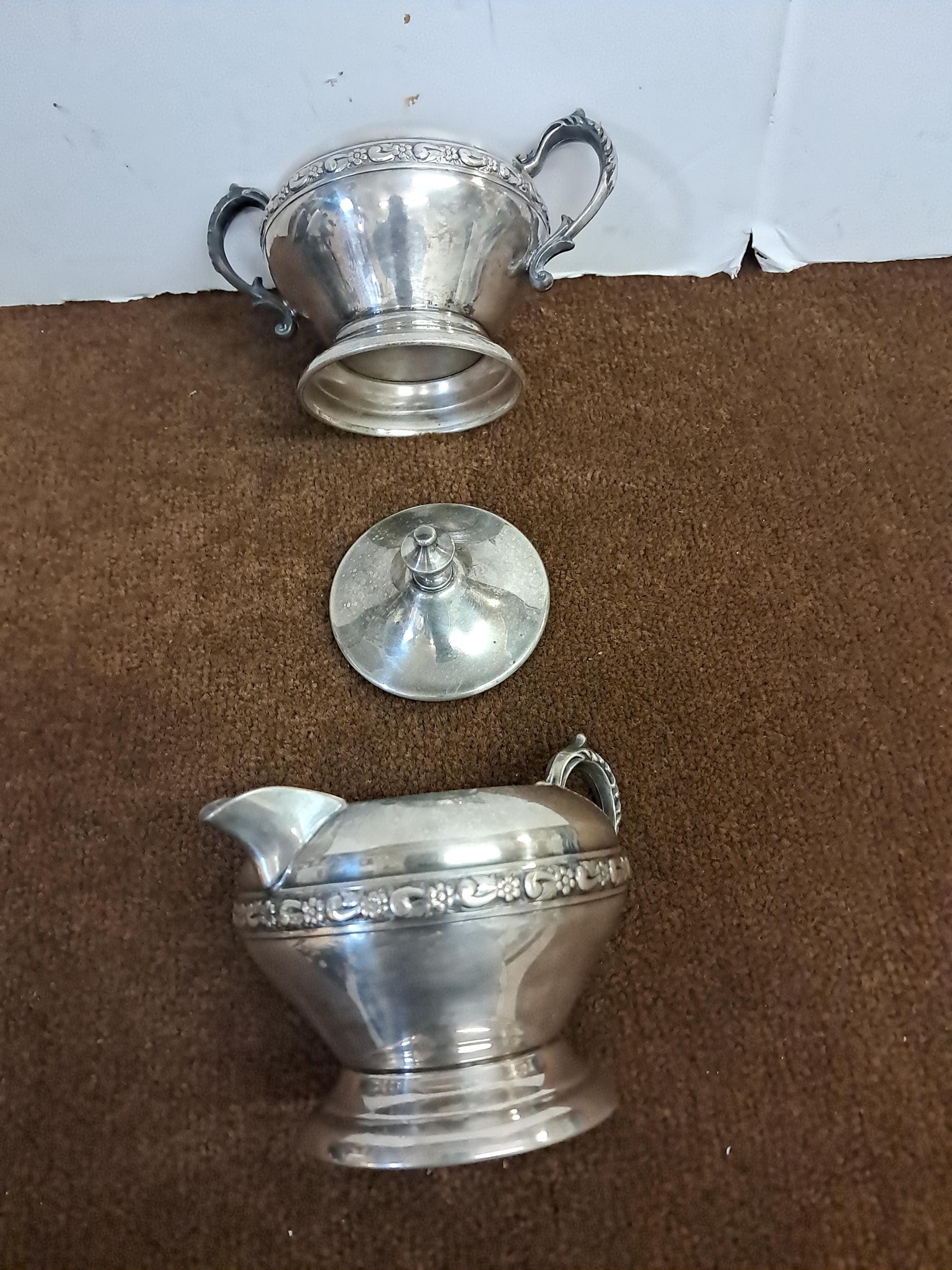 Silver on Copper Creamer and Sugar Bowl with lid