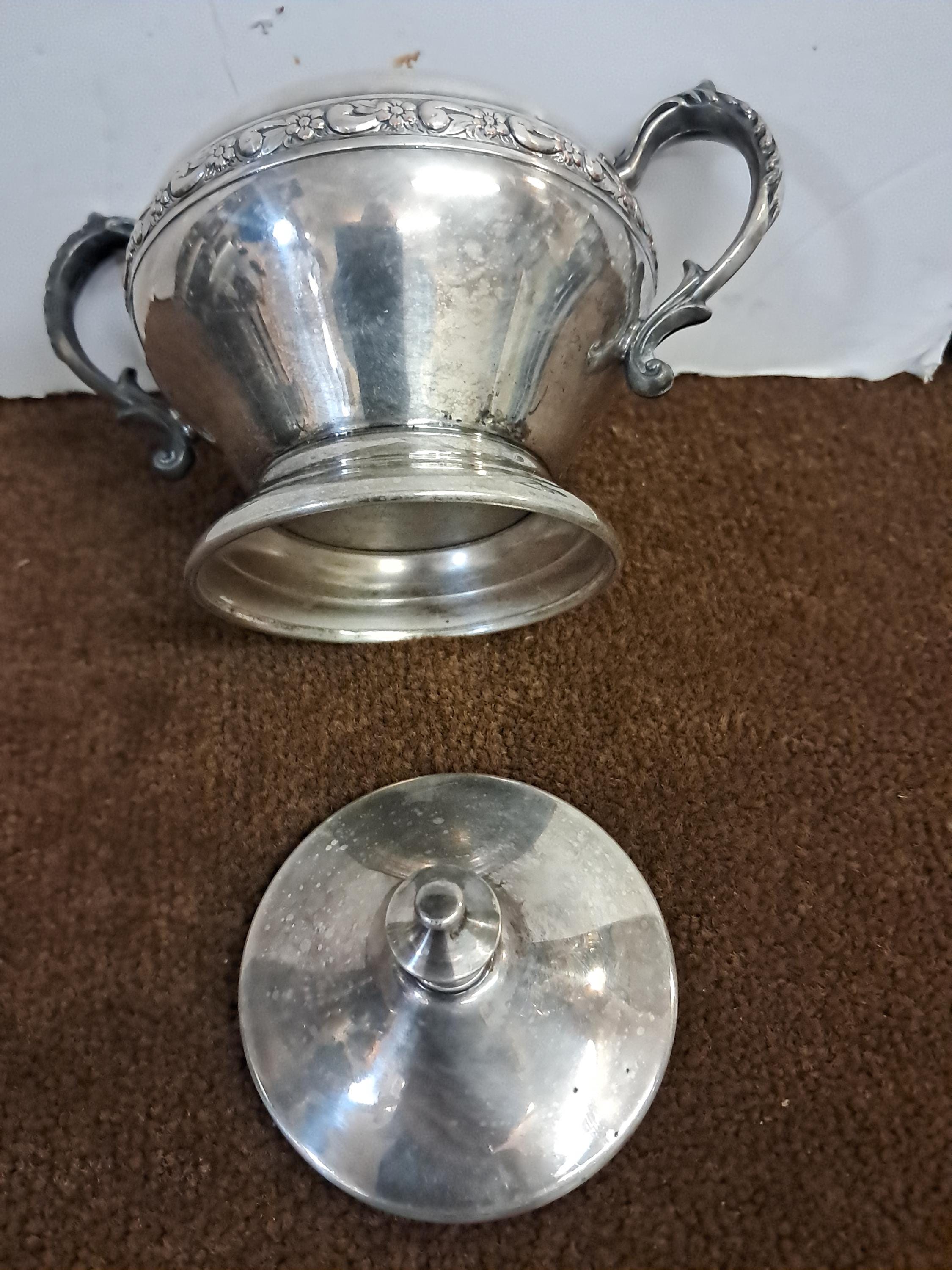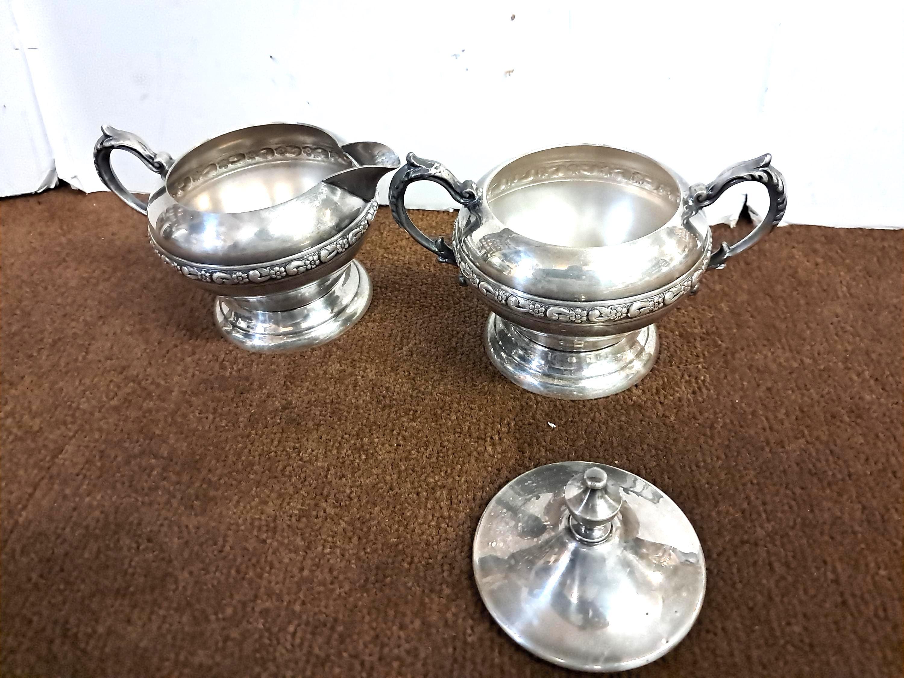Vintage Antique Sheridan Silver Company Silver on Copper Silverplate Creamer Milk Pitcher. Milk Creamer and Sugar Bowl. Pot Silver On Copper