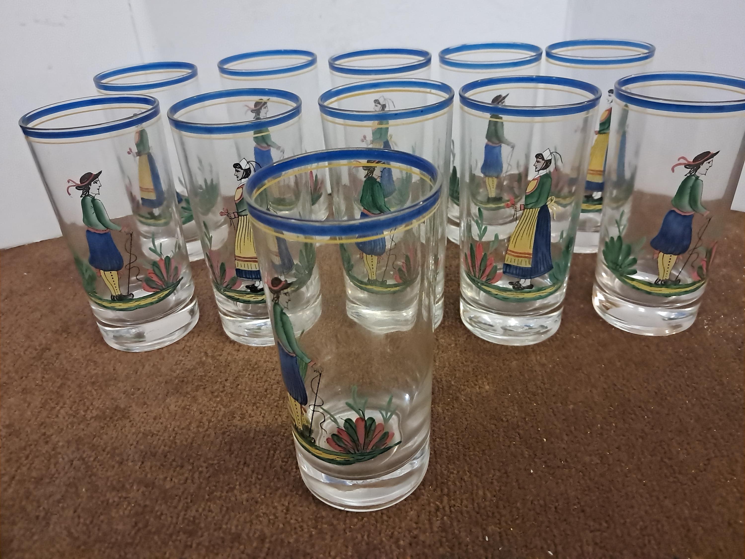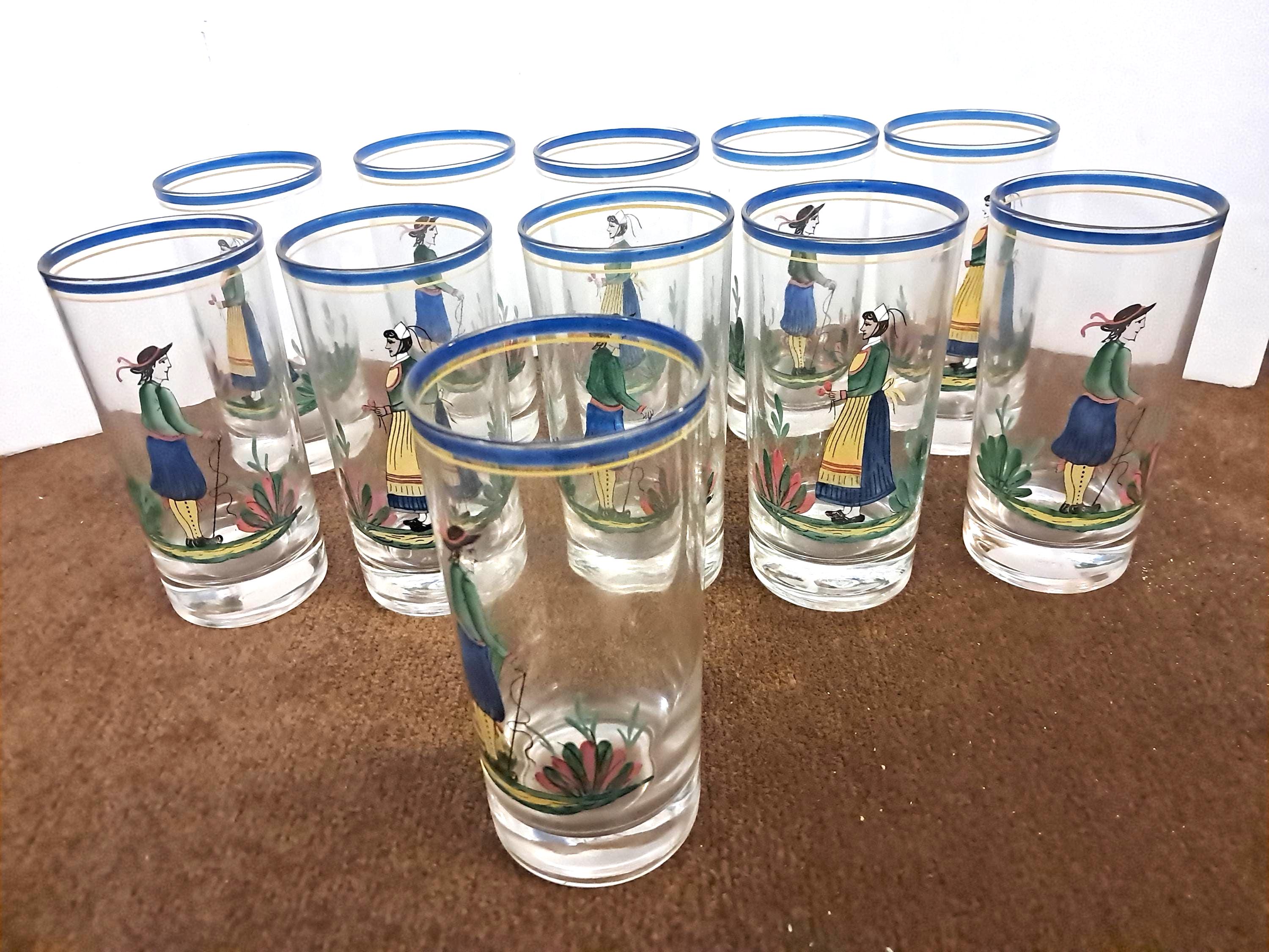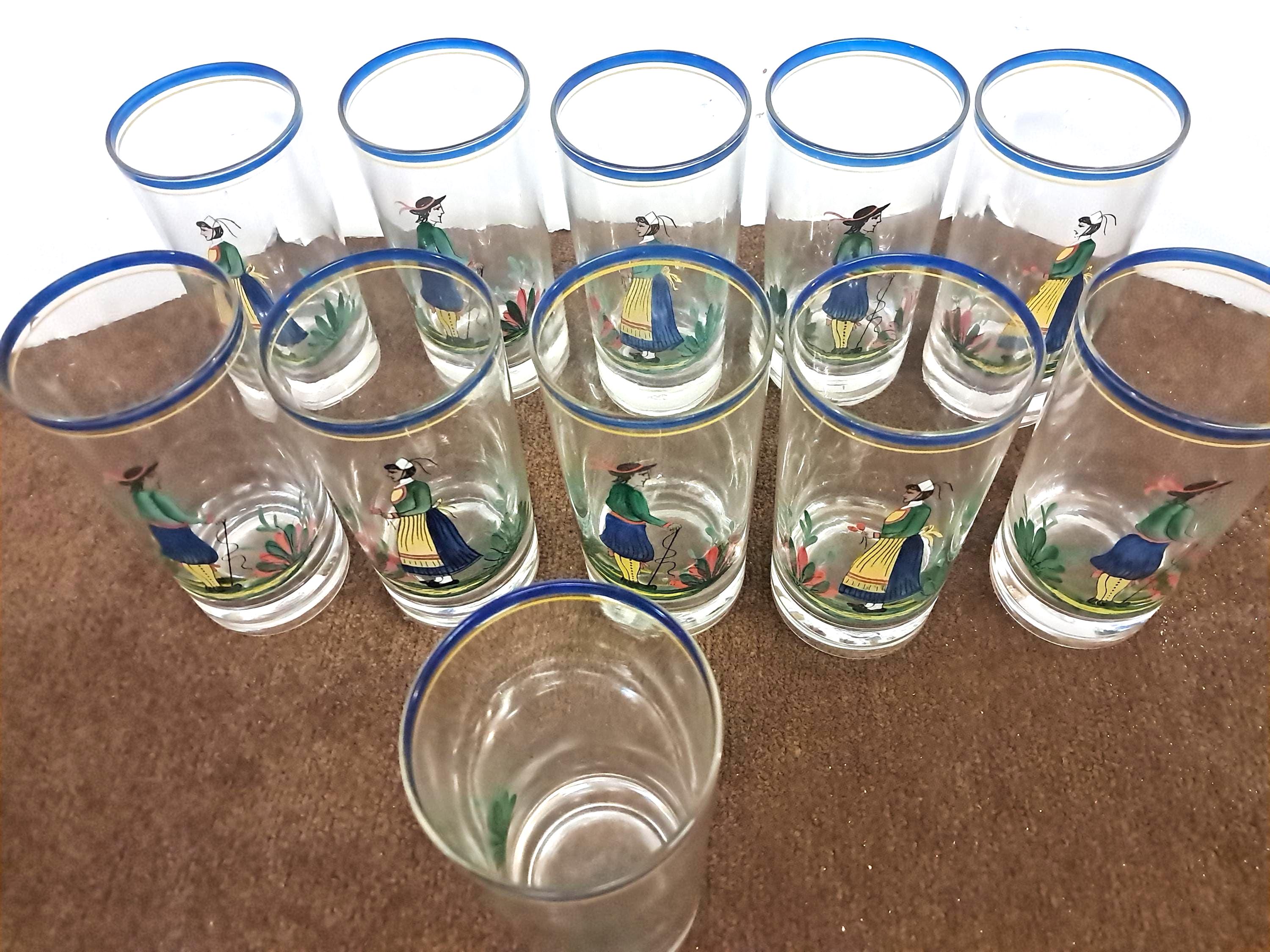 Eleven 8 oz Glassware tumbler from the Henriot ( Lady Or Man Center) Collection by Quimper