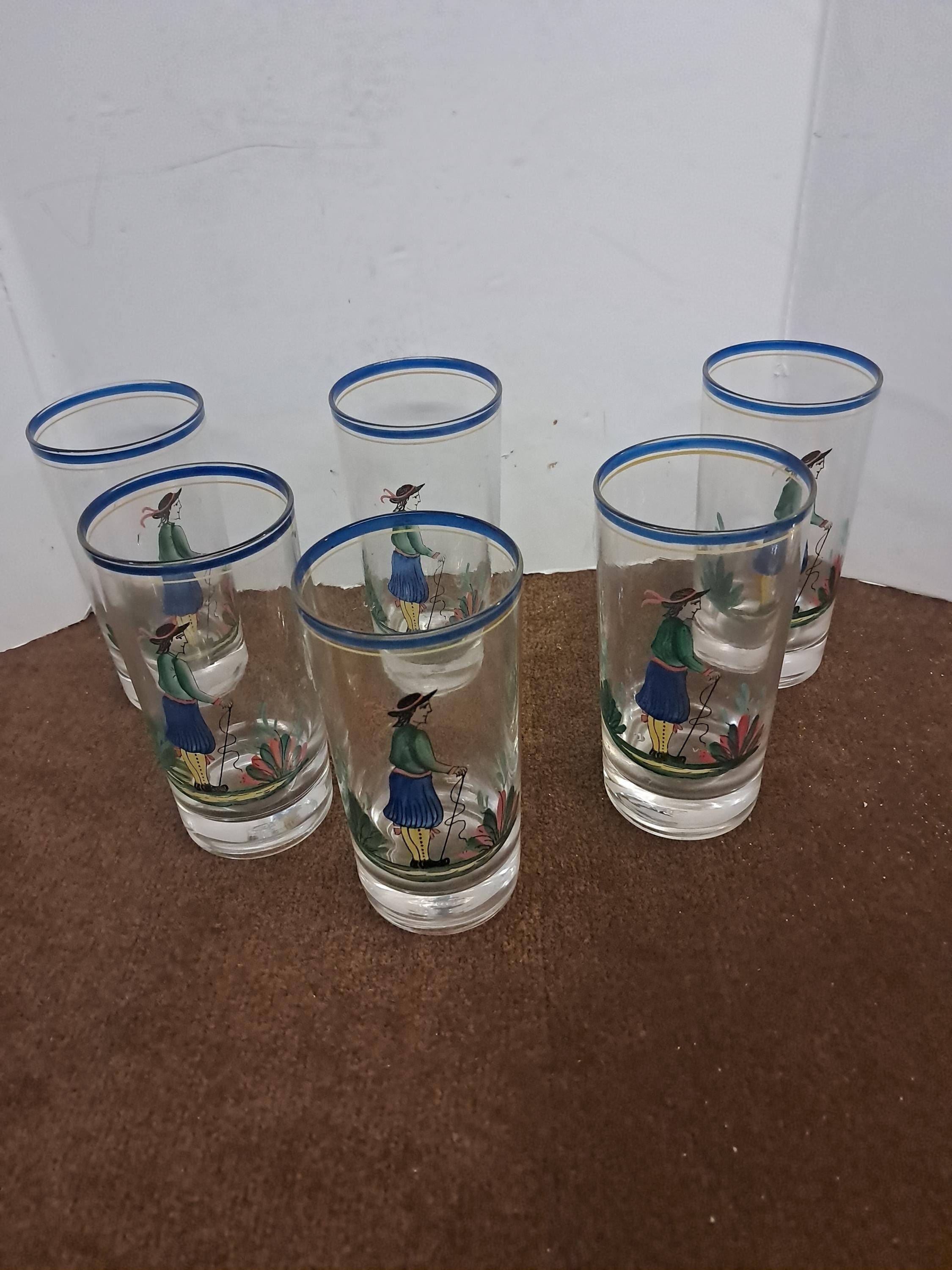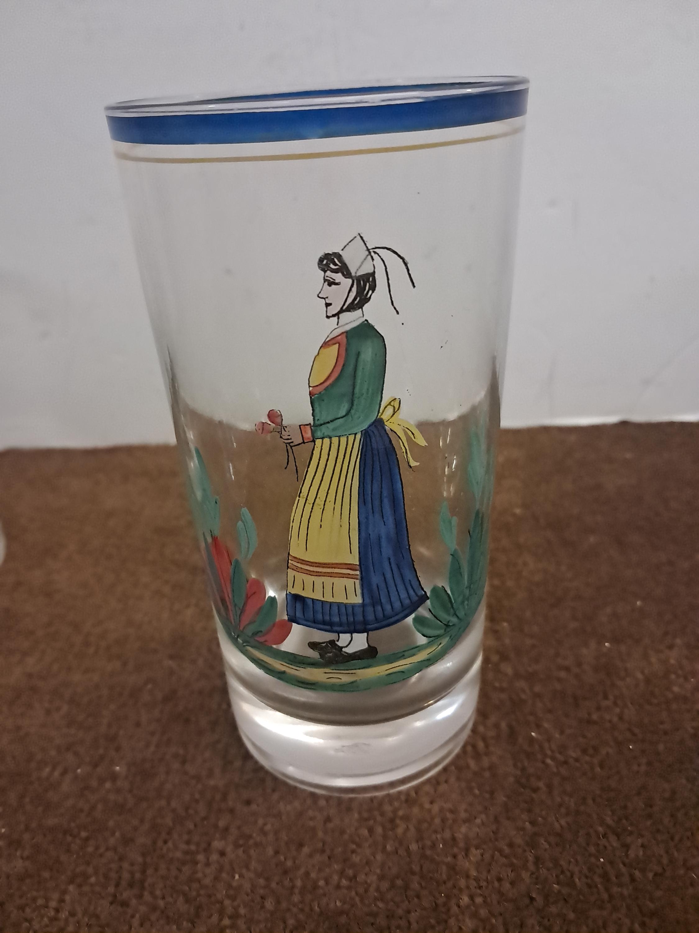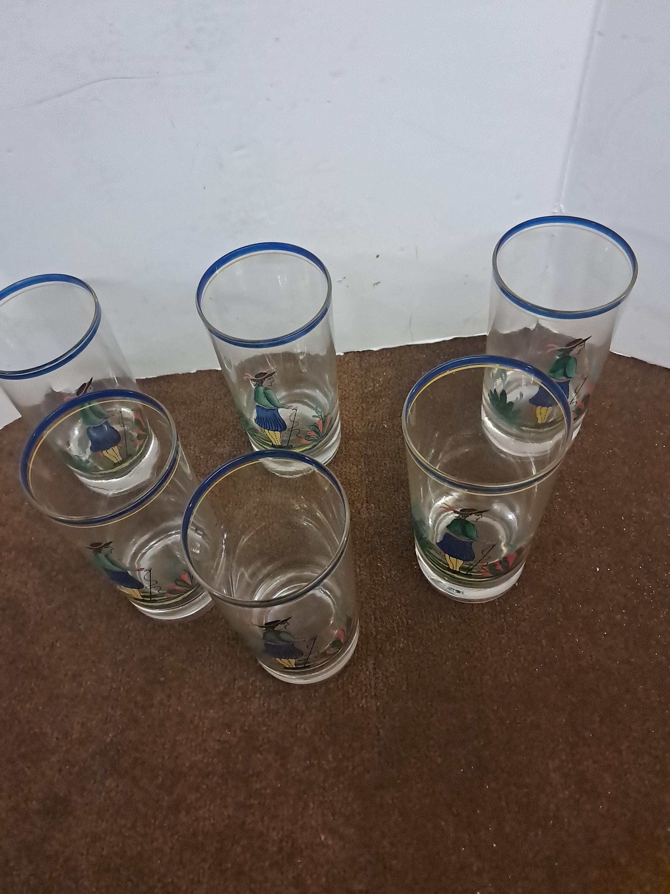 Eleven 8 oz Glassware tumbler from the Henriot ( Lady Or Man Center) Collection by Quimper