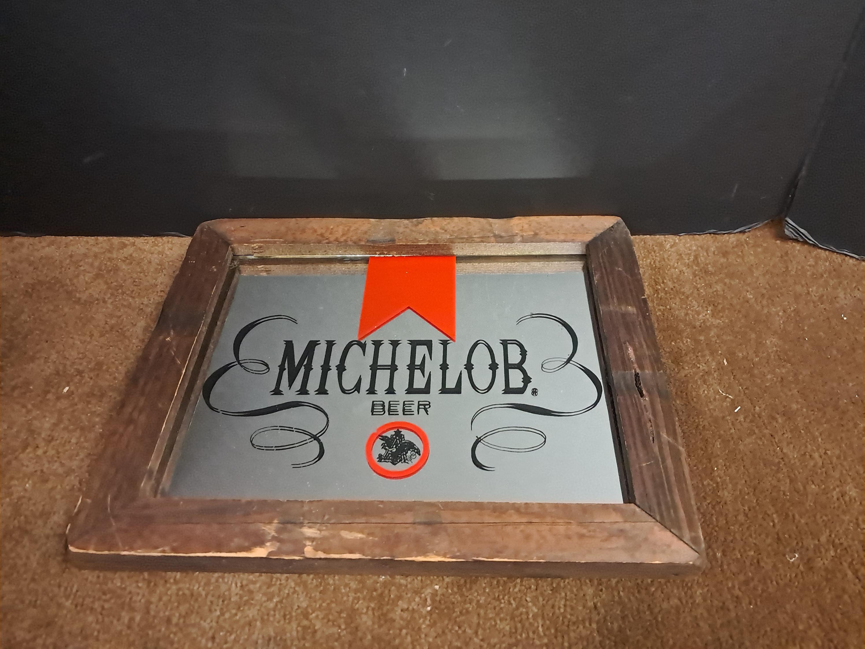Michelob Glass Bar SignBeer SignsVintage Michelob Beer Sign Bar Signs Anheuser-Busch Brewery MirrorFramed 11.75" wide x 9.75" tall x .75" deep Very Good Condition, No damages
