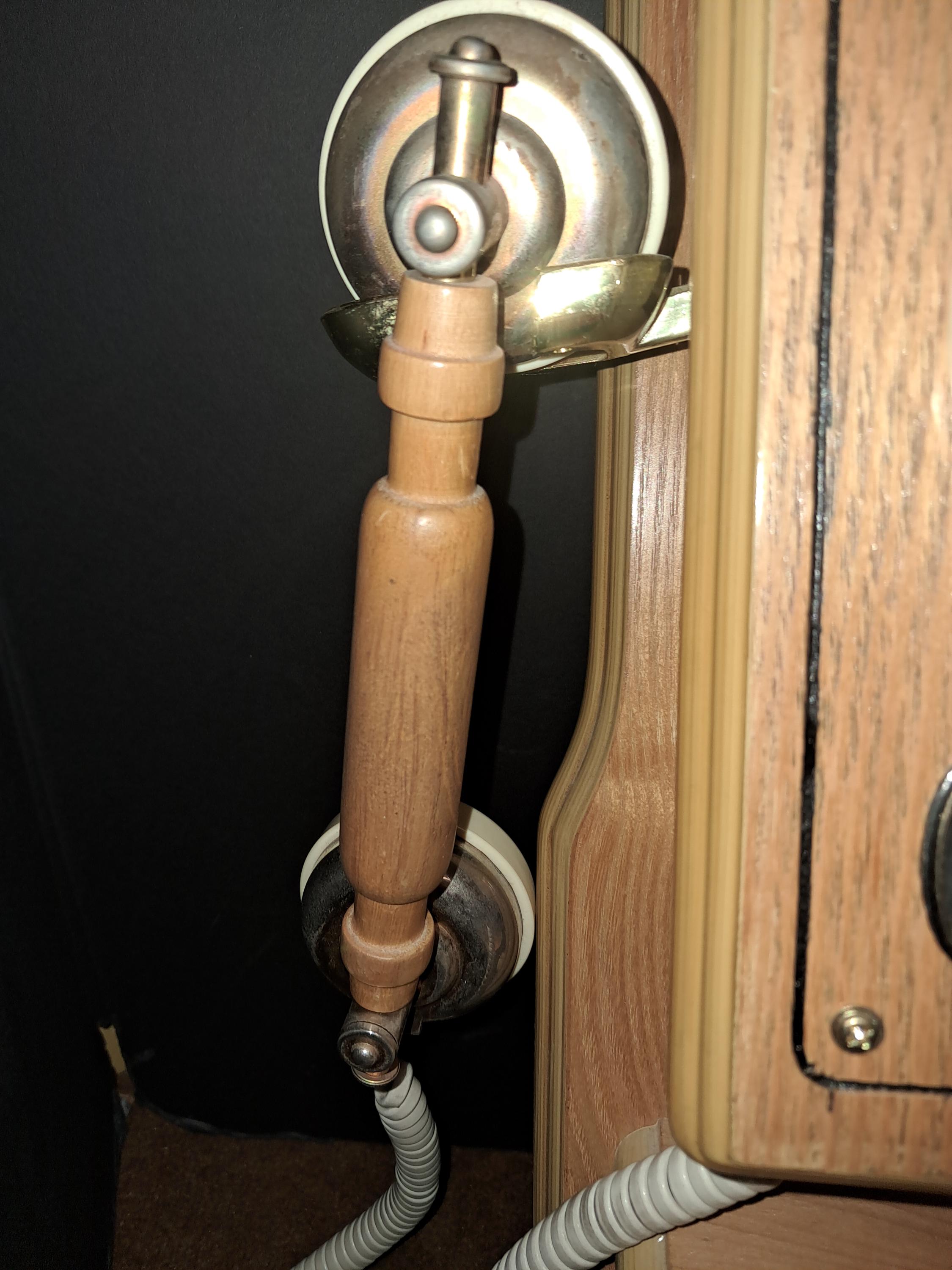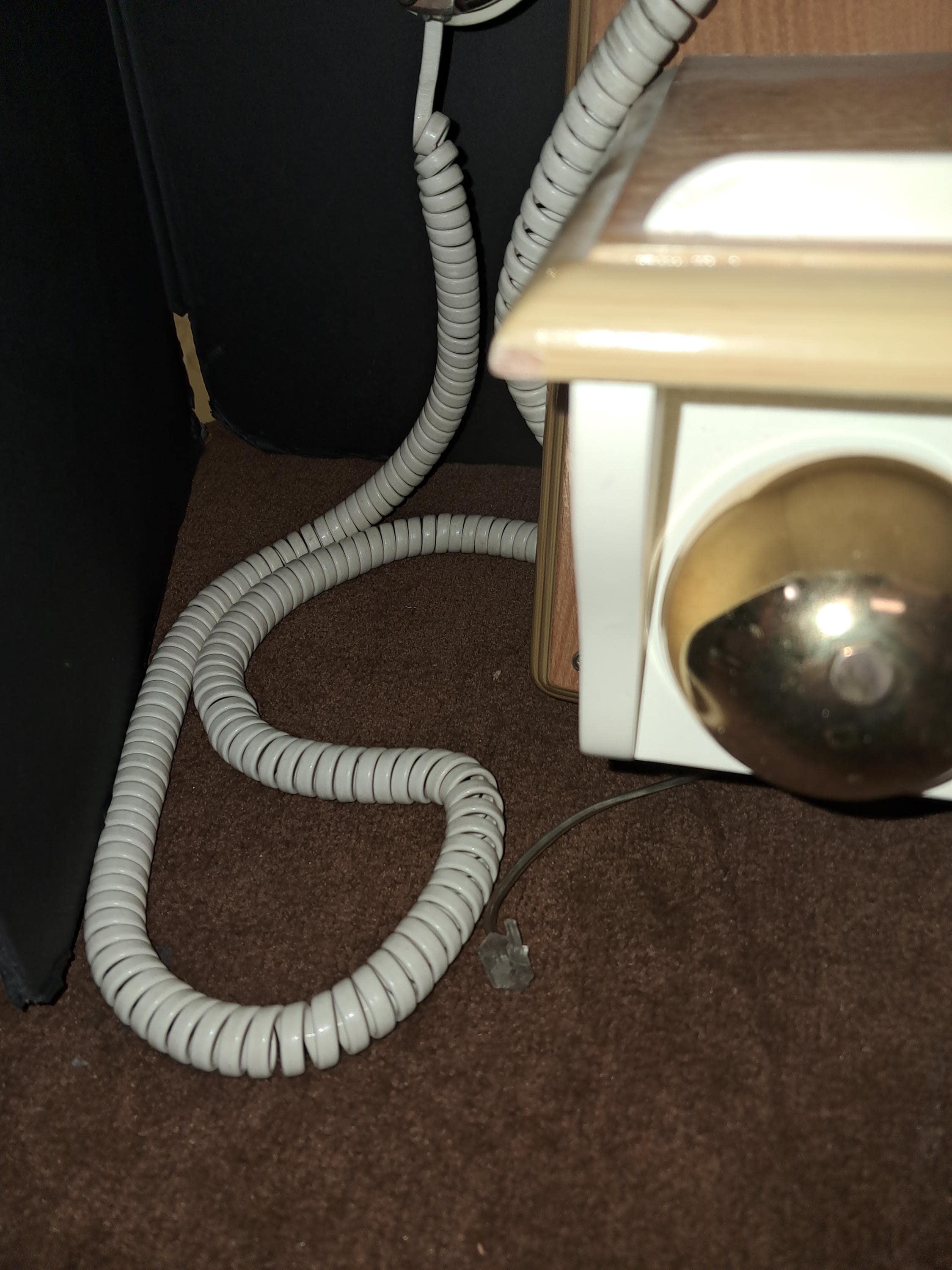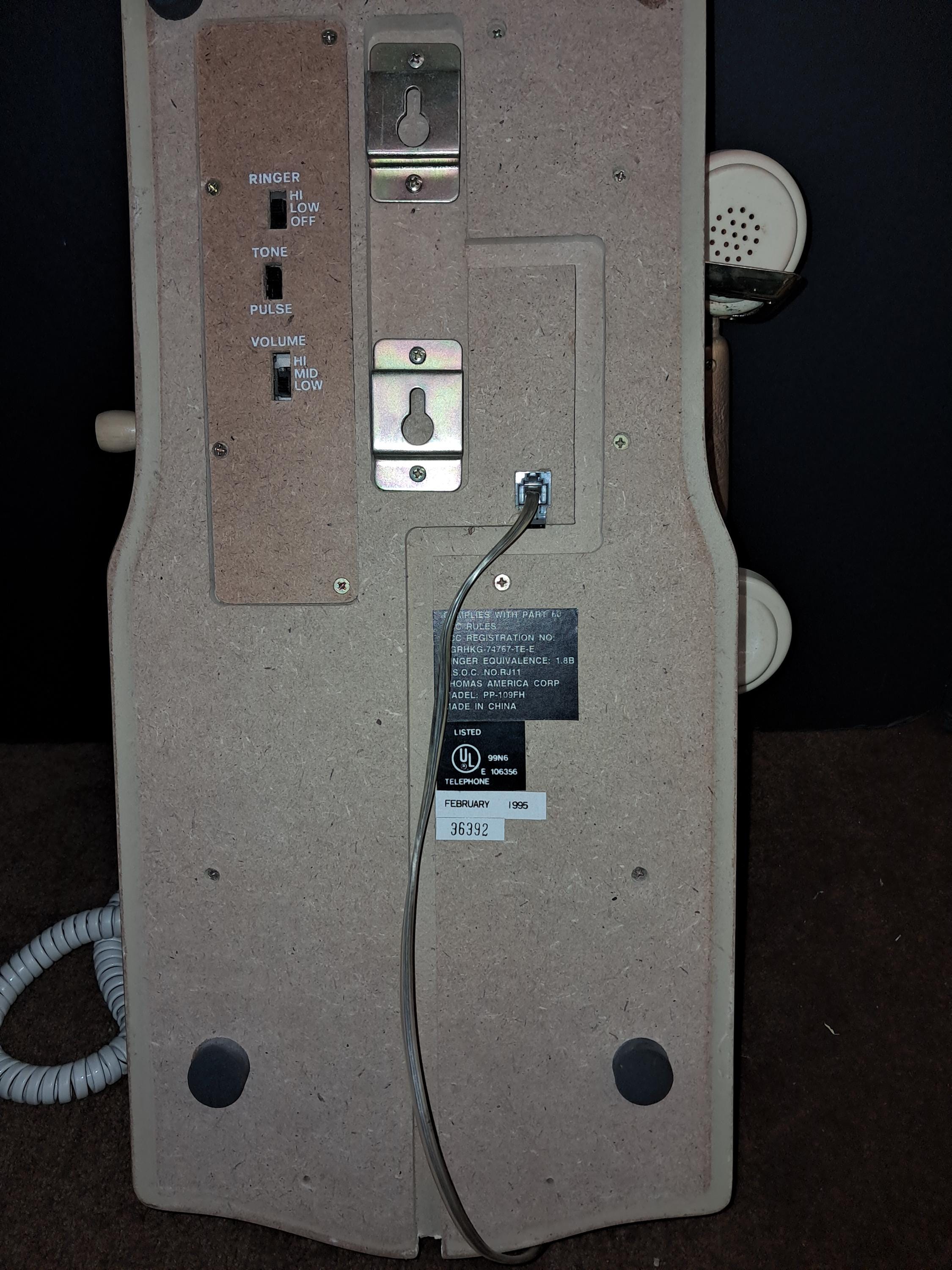 Super Cool Wooden Wall Telephone by Thomas. It is the 1927 Country Store Collector's Edition, push button dialing, and redial. Light oak wood. Tone, Sound or Pulse and volume controls on rear, with minor wear appropriate to age. ( Was told it works at Estate Sale ) Has the curly cord that runs between the handset. In Excellent Condition