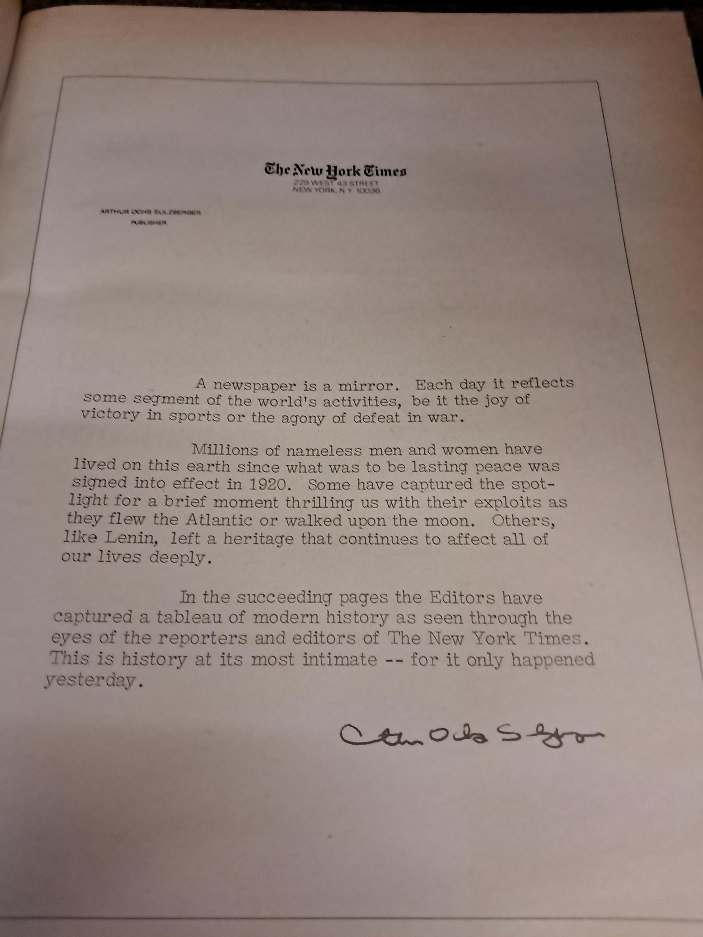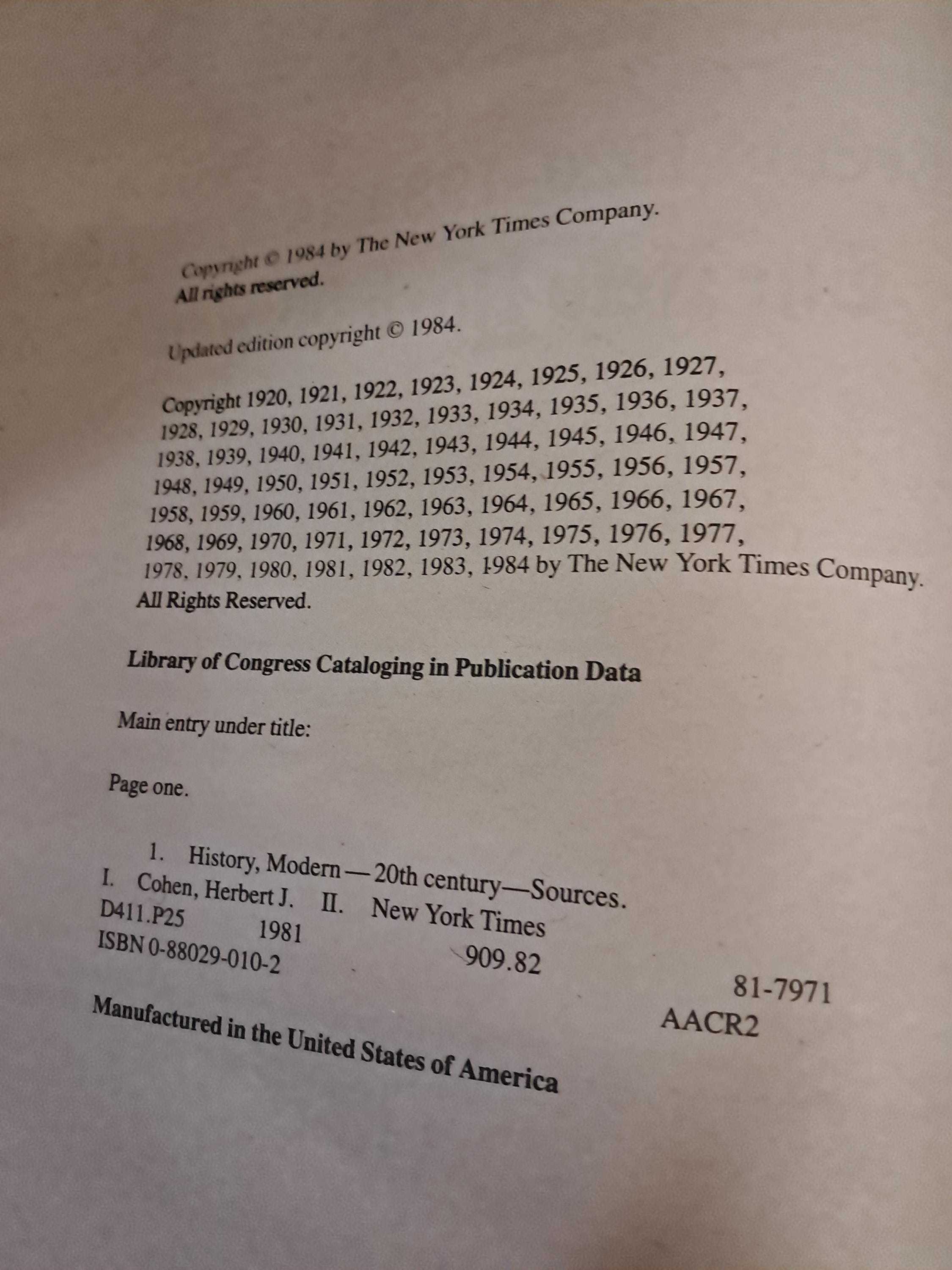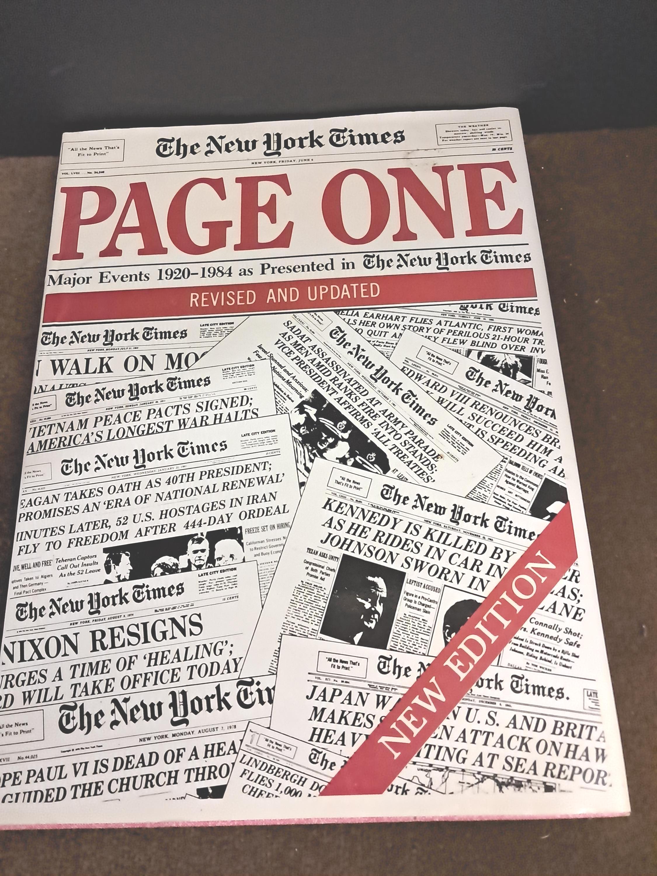 Page One: Major Events, 1920 1984, As Presented In The New York TimesSigned Copy/ Please see the photo.Copyright: 1984