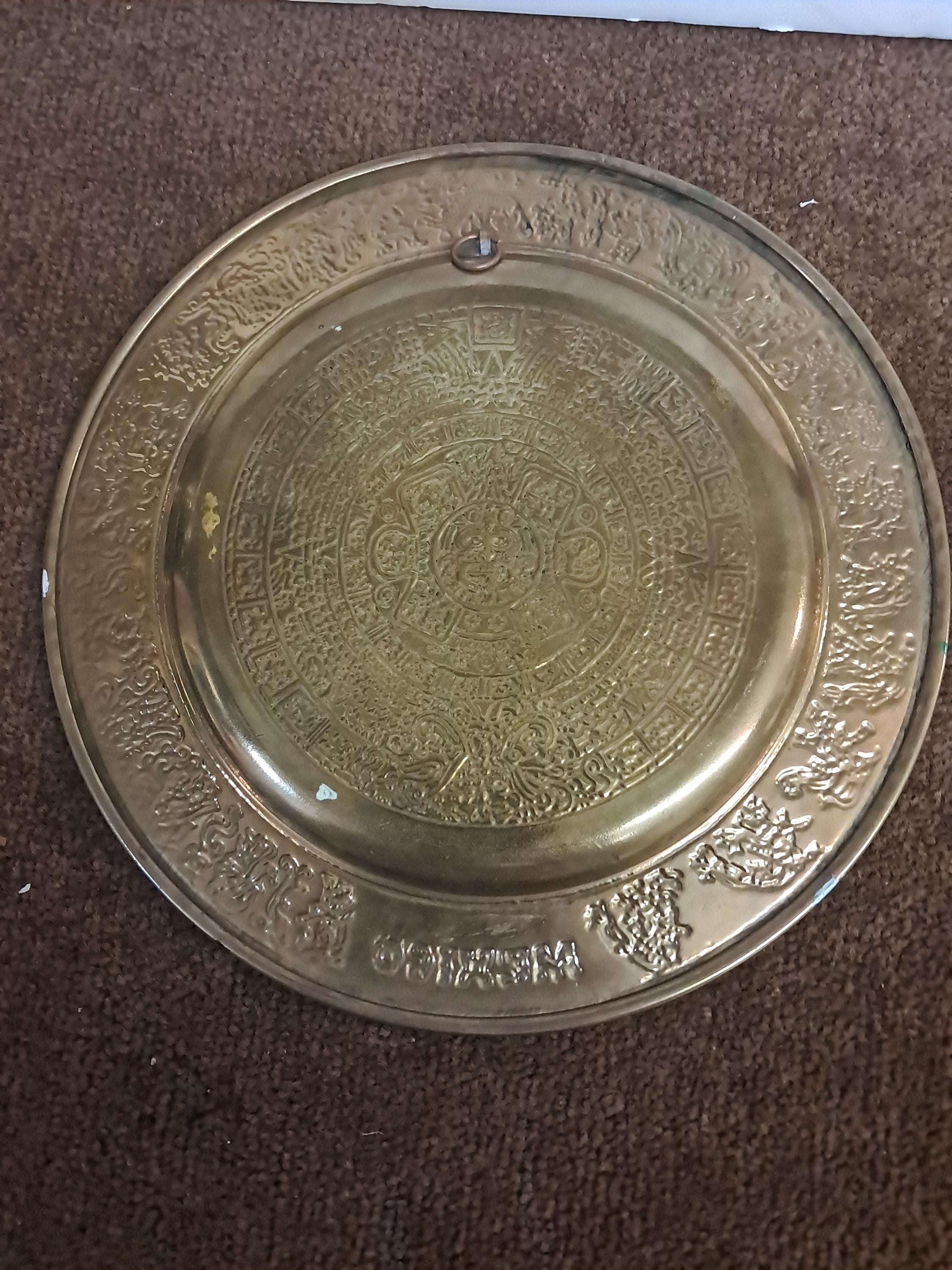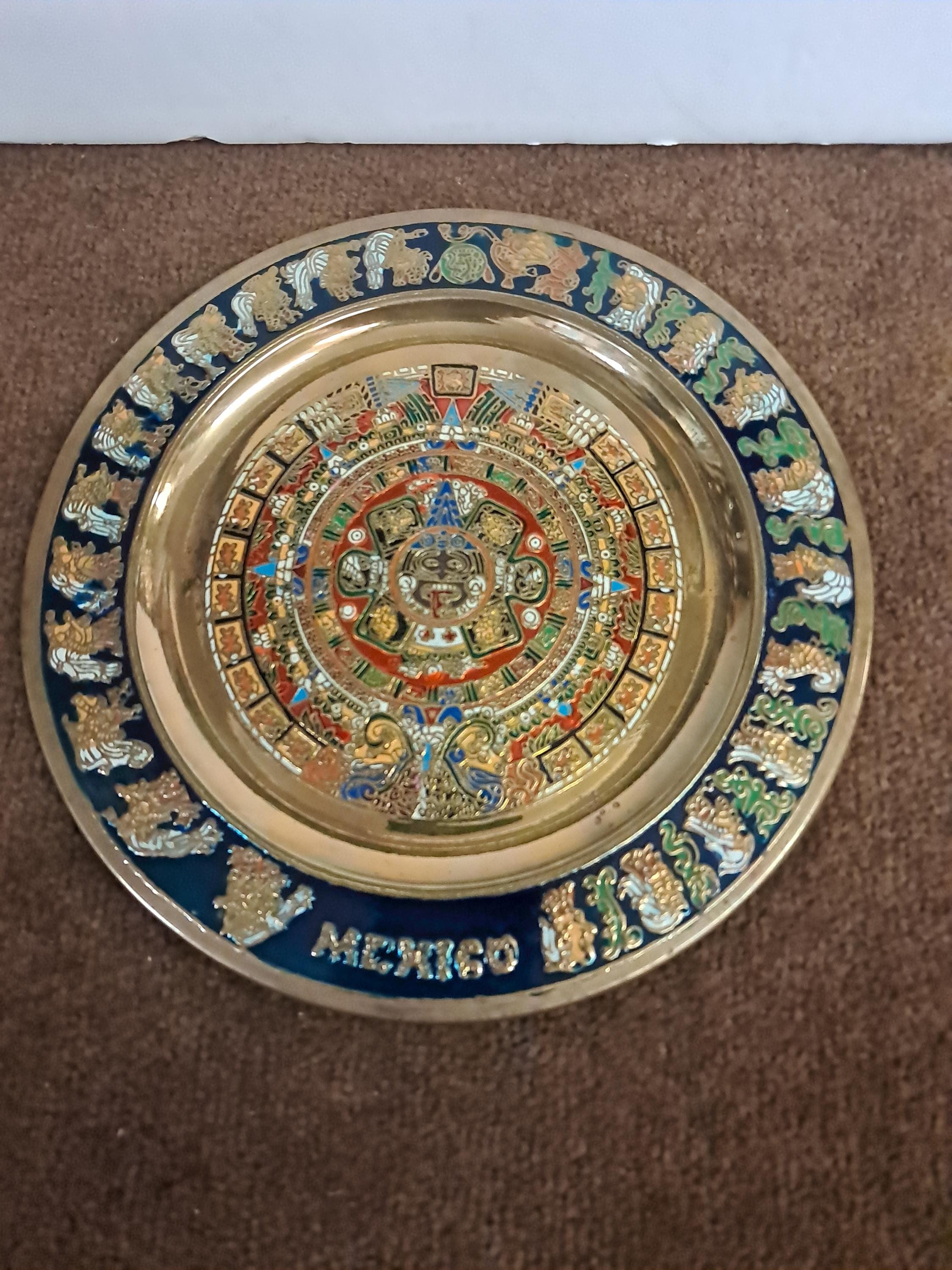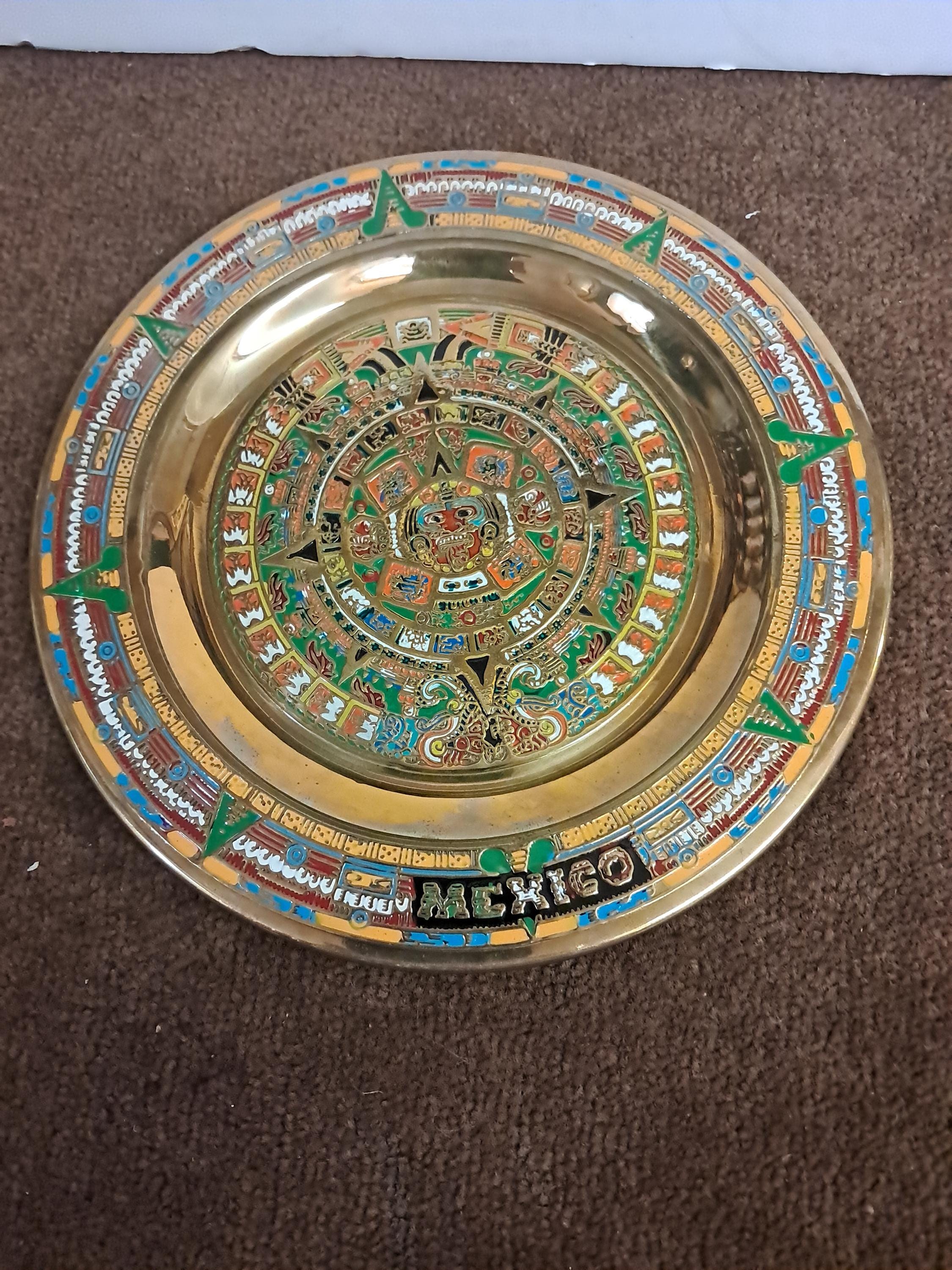 Two Aztec Sun Aztec Calendar , Piedra Del Sol 8" in diameter x 5" deep Excellent condition Made In MexicoMaterial : Brass Wall Plates