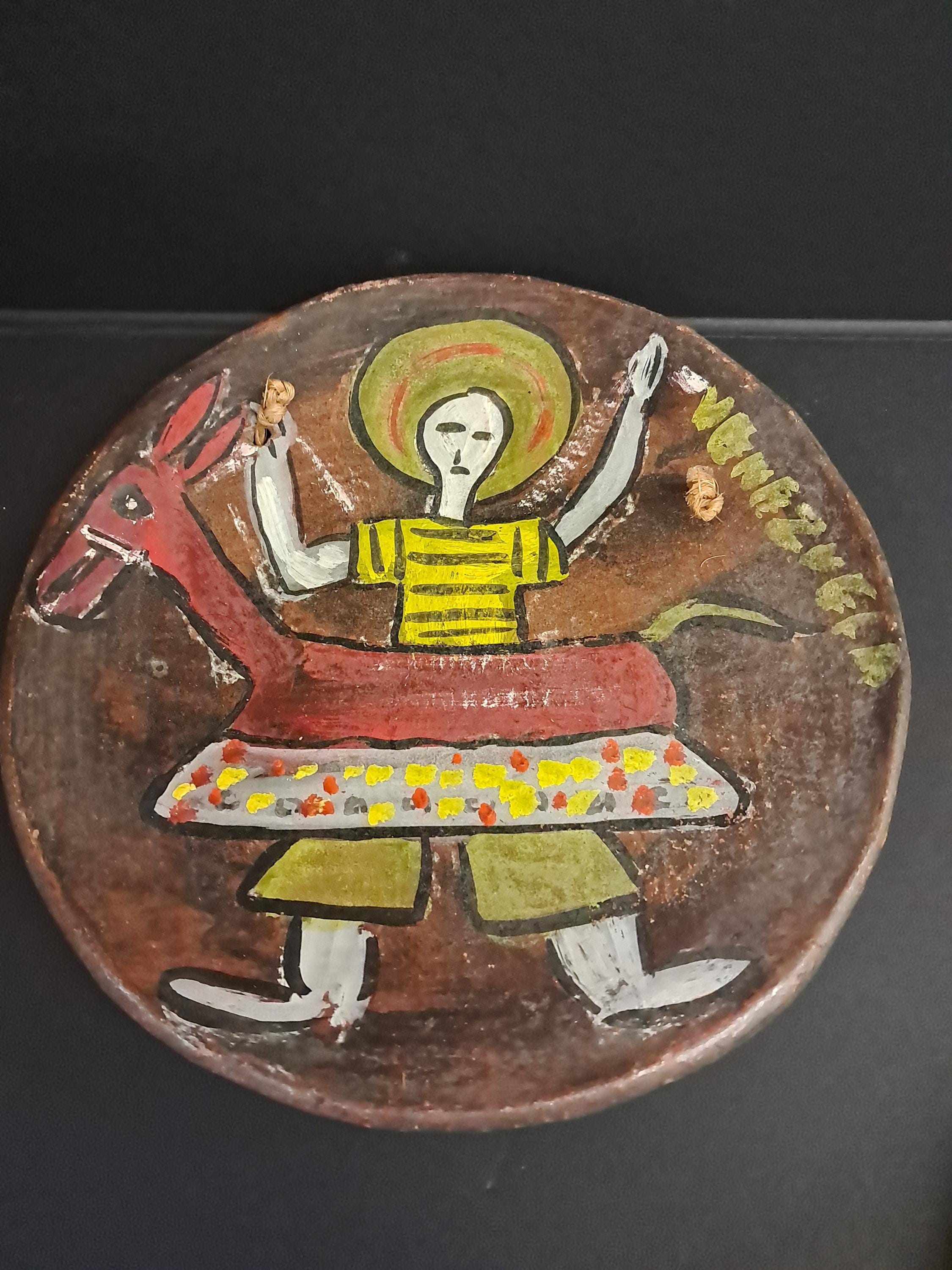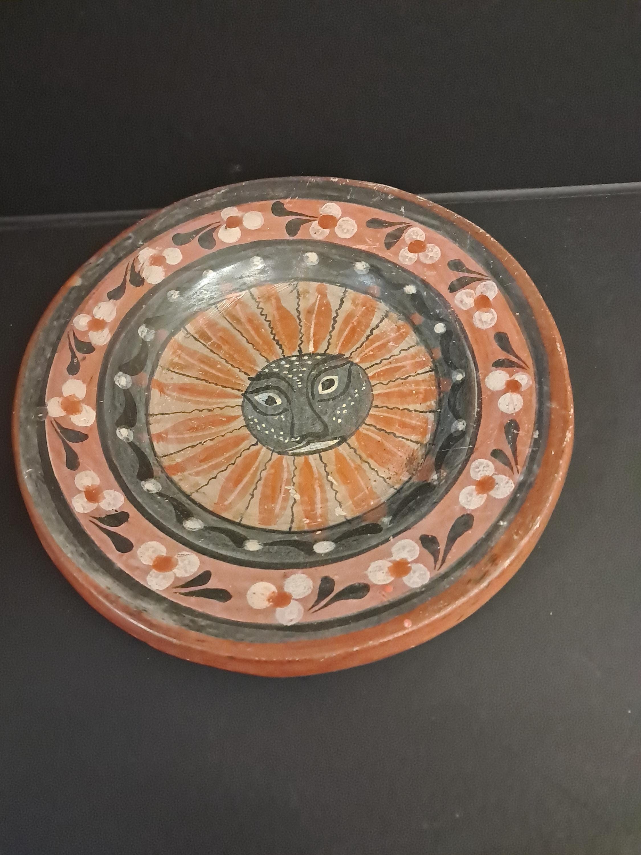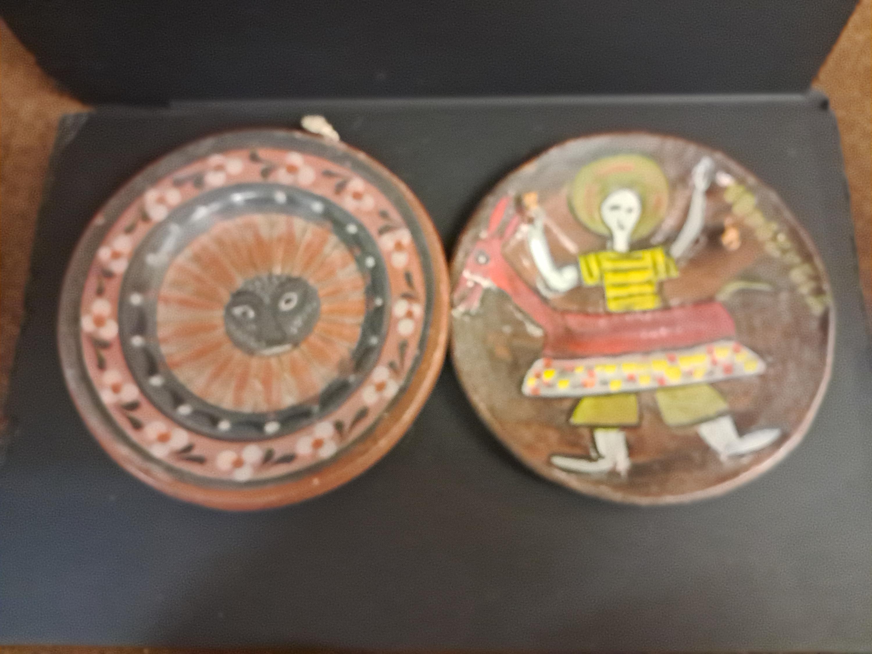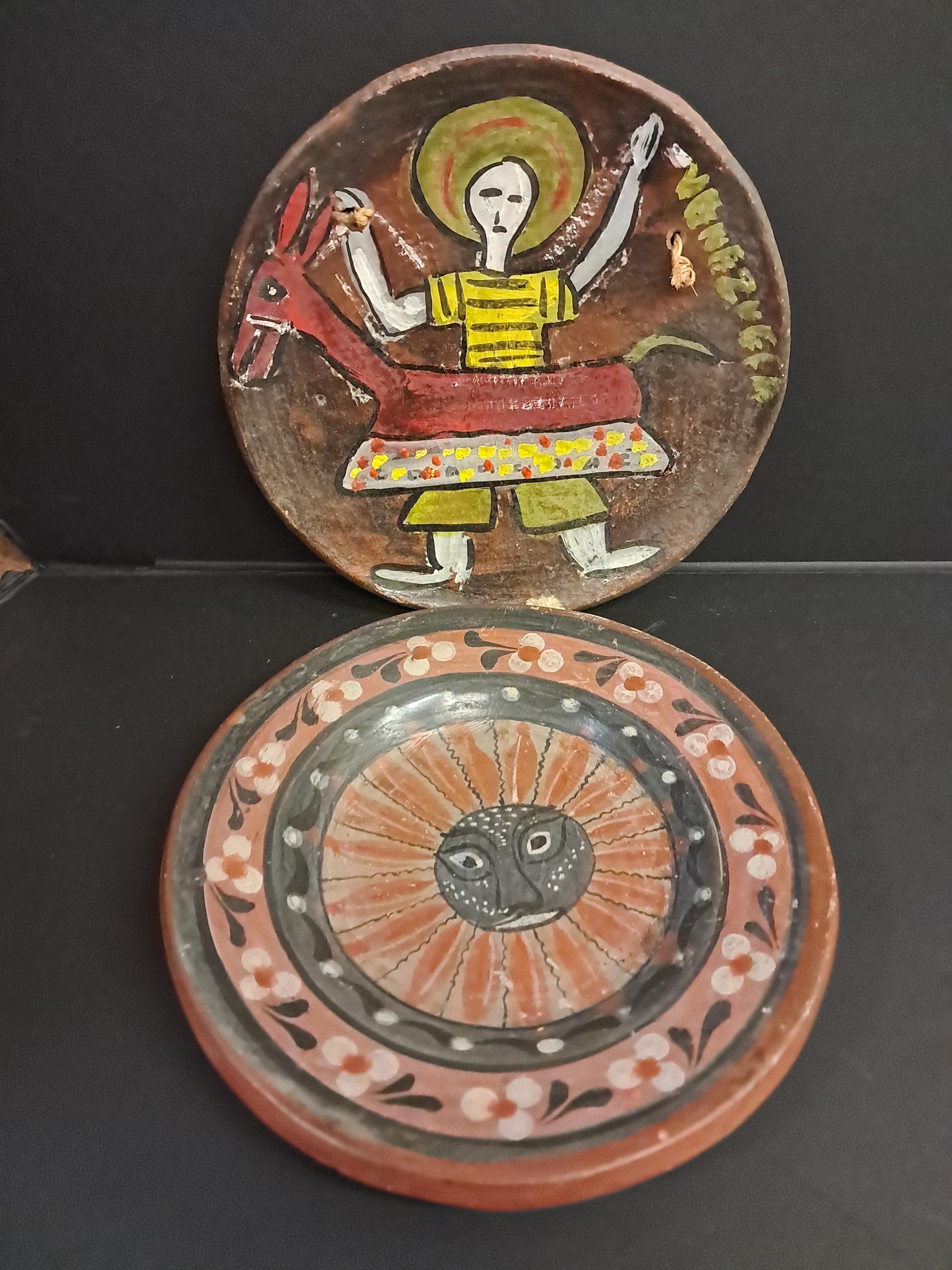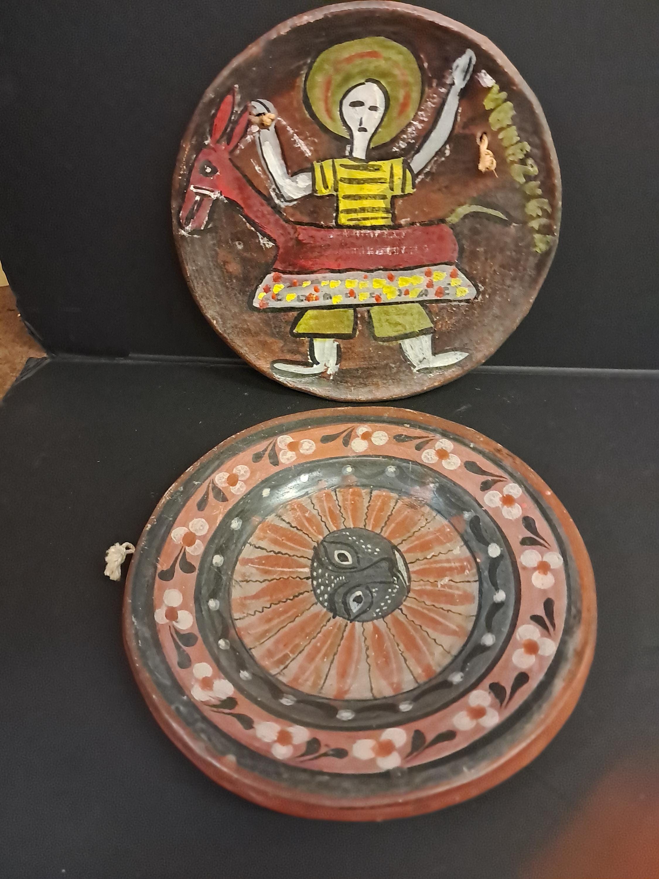 Two Handmade , ,Hand Painted Art Plate from VenezuelaMade of ClayMade In Venezuela 8" in diameter x 1 " deep No Damages