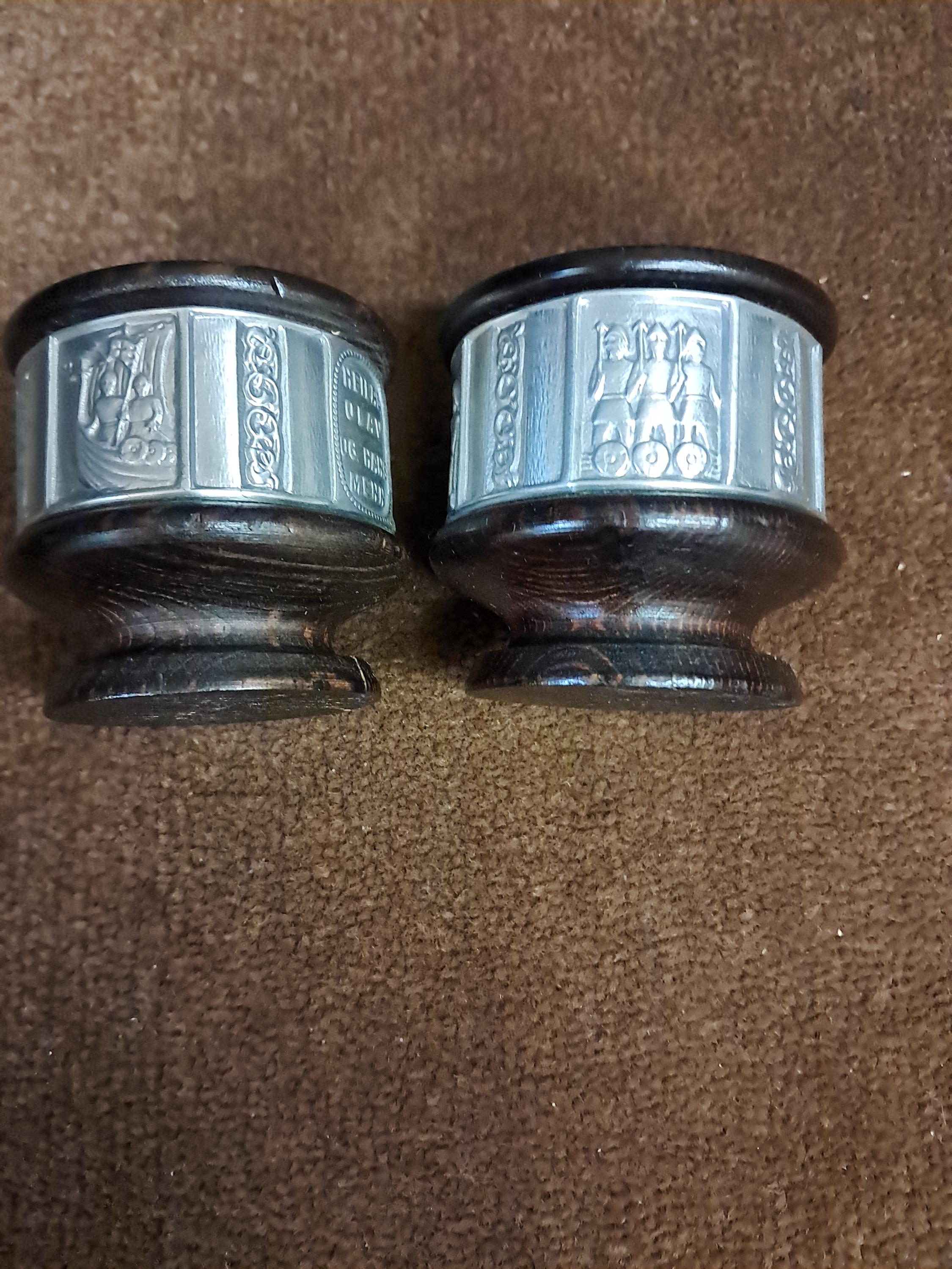 VintageMaterials: Pewter, WoodViking Heilag Olav Decorative Candle Holders in good vintage condition.Each Measures approximately 2.25" tall x 2.25" in diameterExcellent conditionNo damages