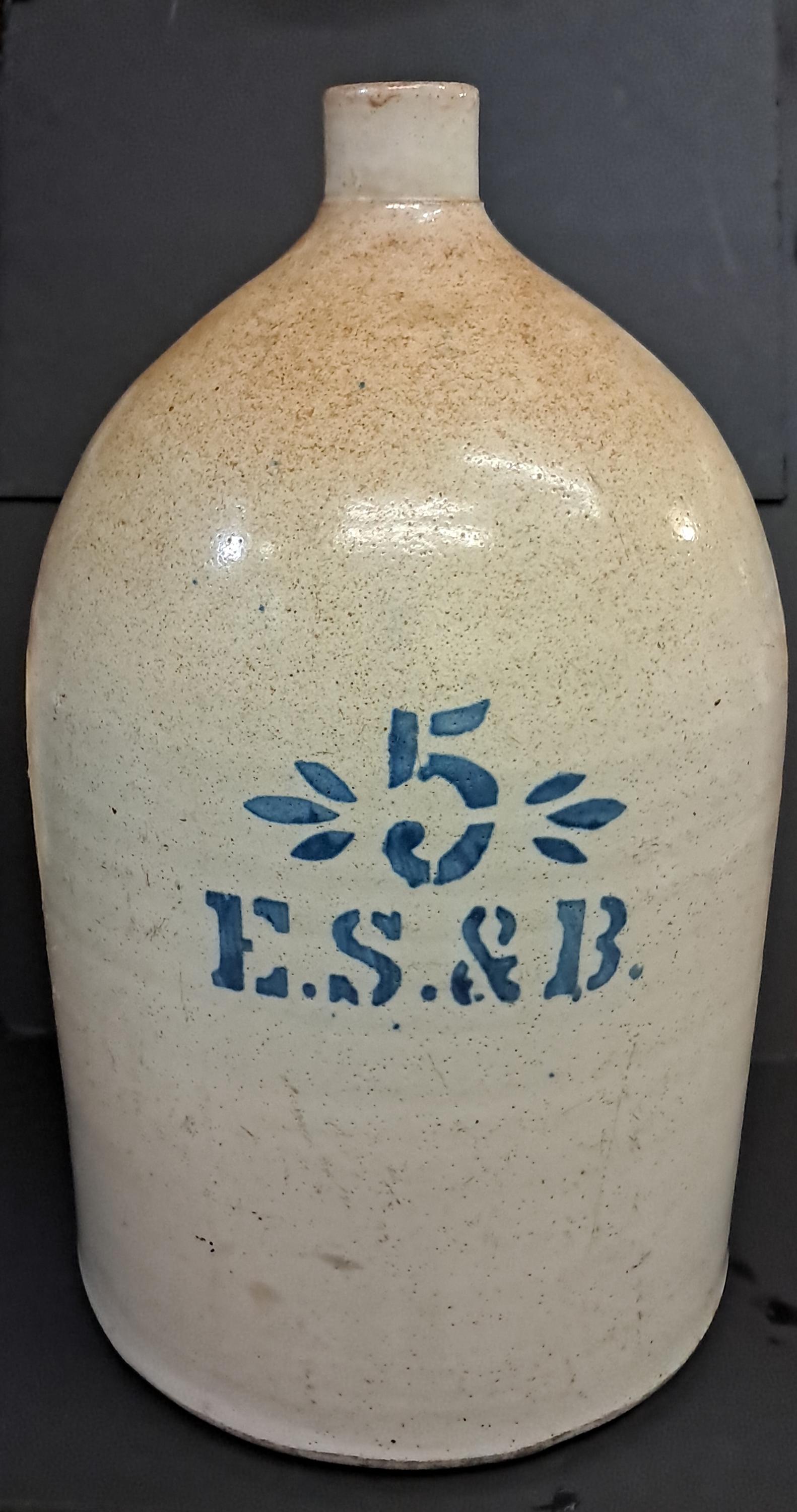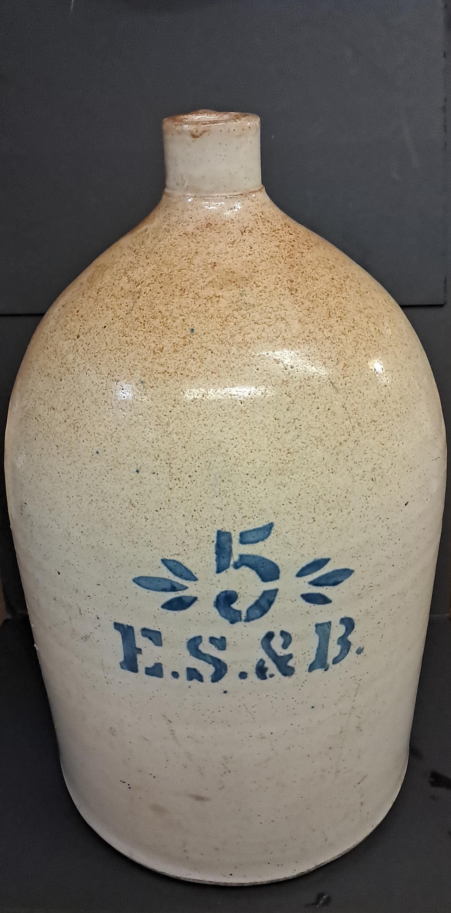 Antique E.S. & B. stoneware salt glazed cobalt pottery jug