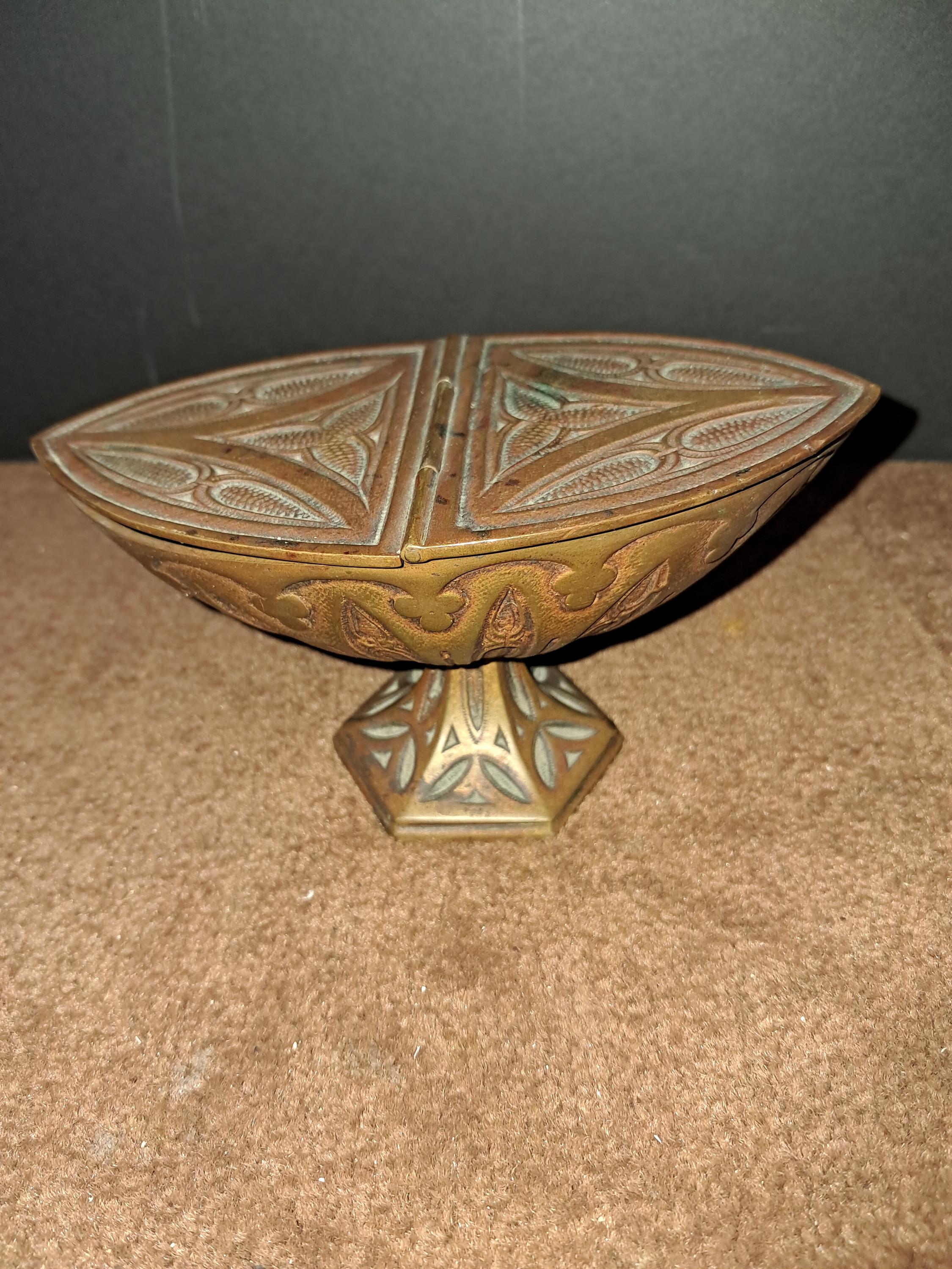 Traditional Ornate Gothic Incense Boat No SpoonThe cover lifts all the way open for easy use. Nice traditional design. It measures 5.25" wide x 3" tall x 2.75" deep
